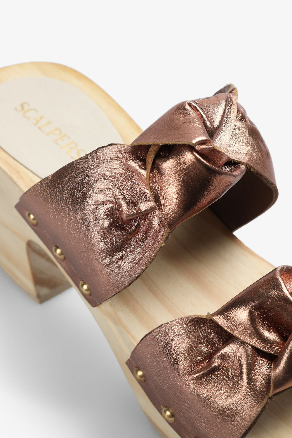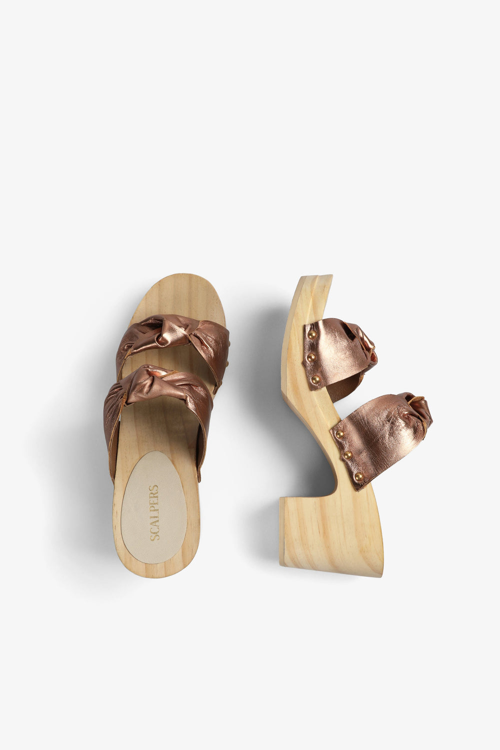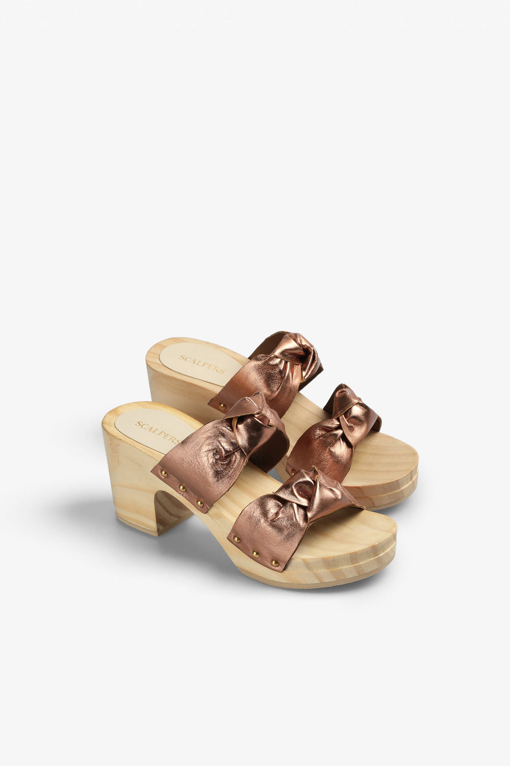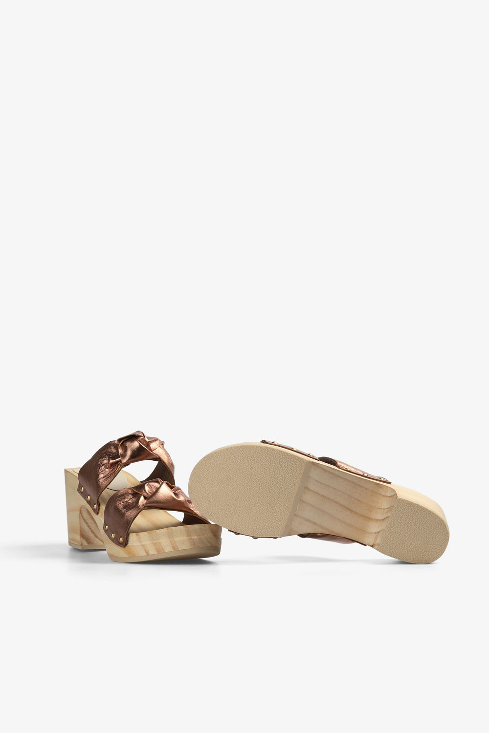 High-heel clog-style sandal.