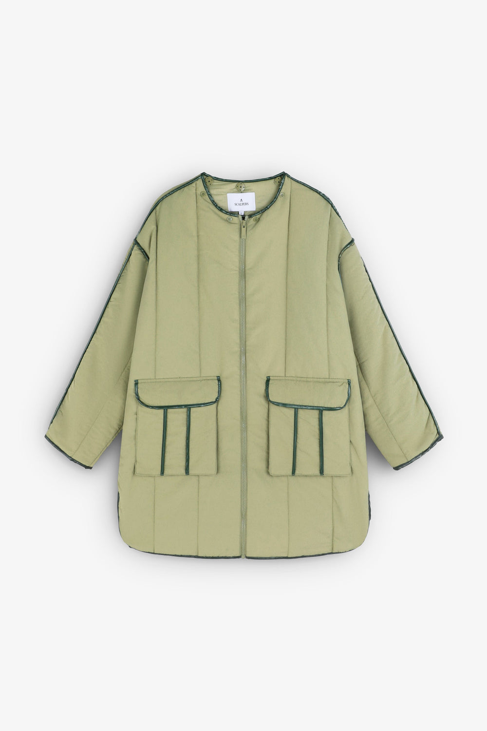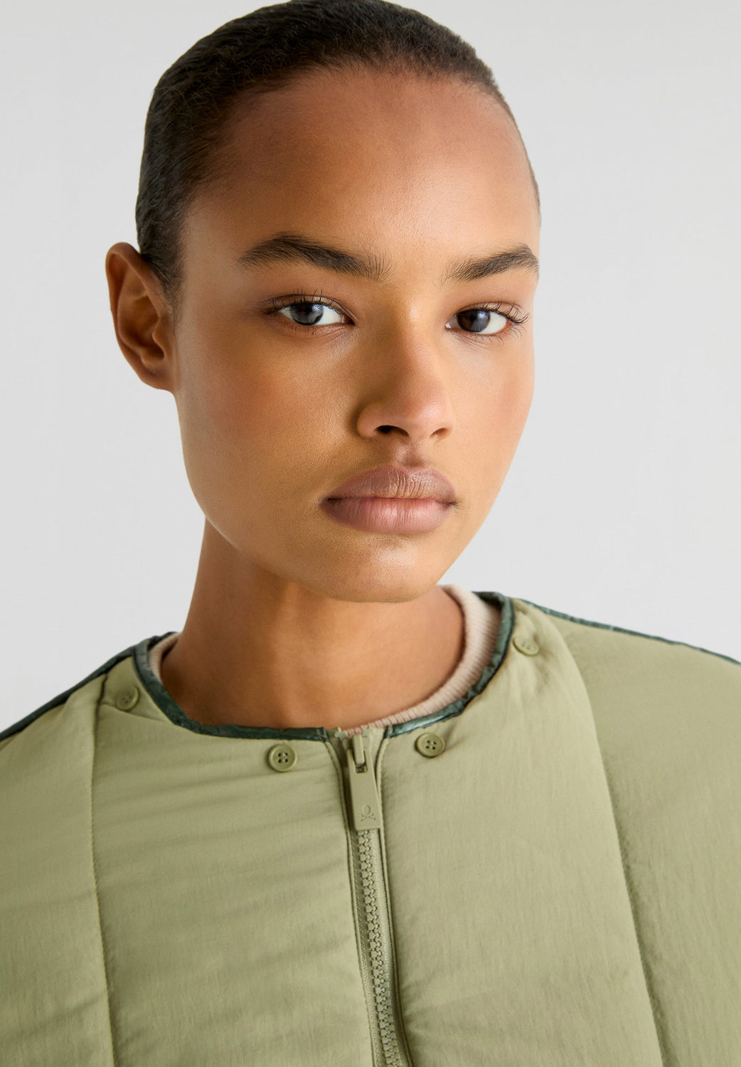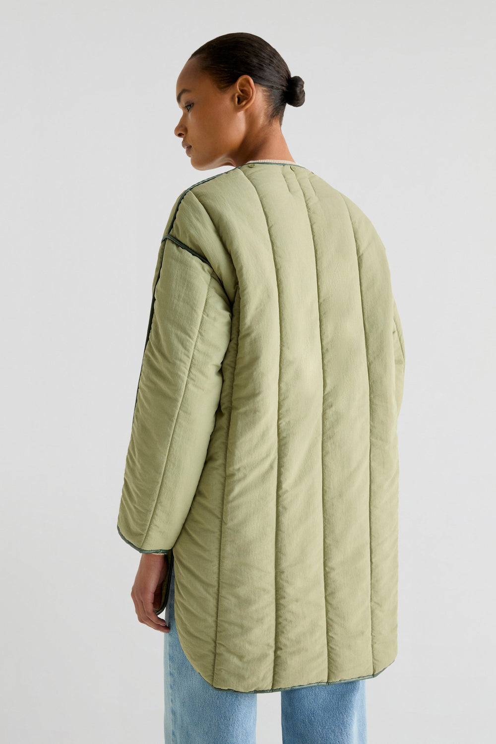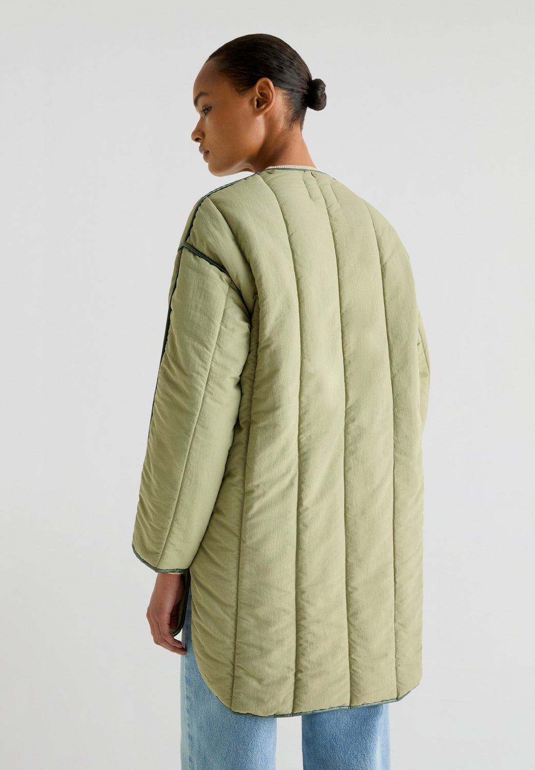 Puffer coat made of technical fabric. Regular fit, collar with detachable hood and with detachable fur and zip fastening. Long sleeves and shearling interior. Rounded hem and side vents, and piping detail at the seams.
