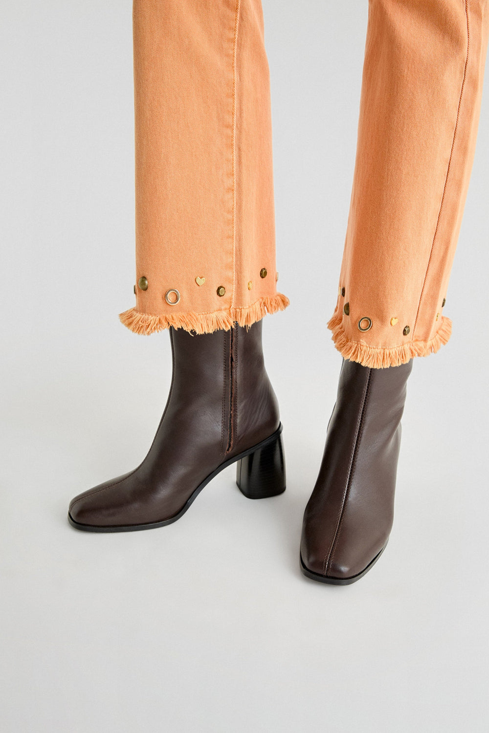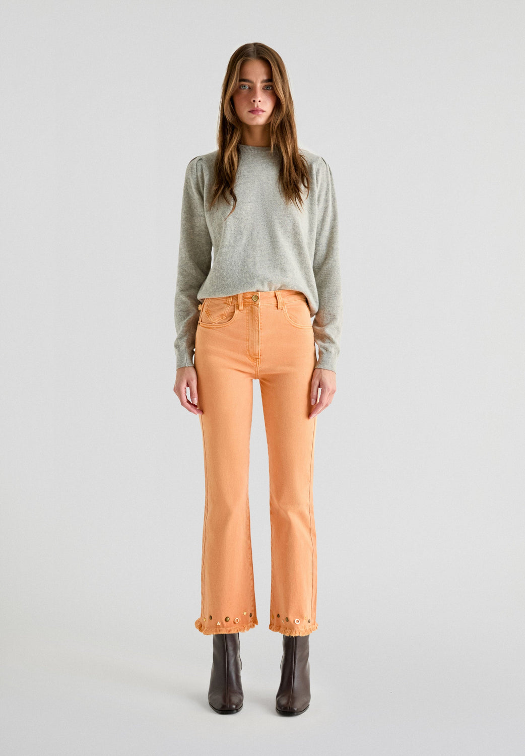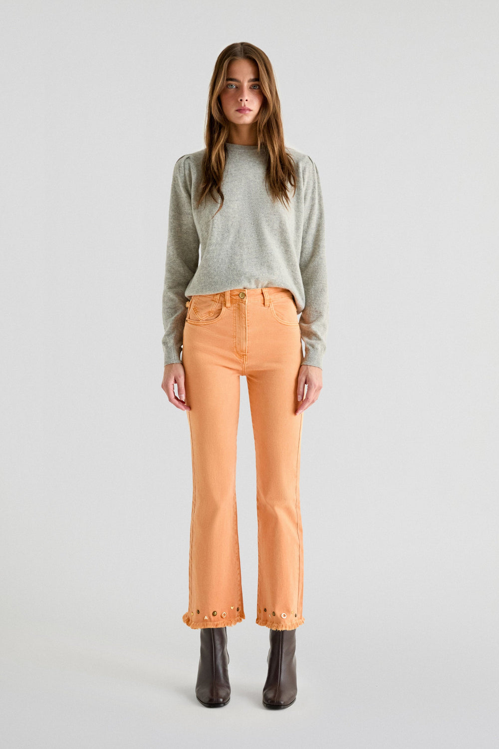 FLARED JEANS WITH STUDS ON THE HEMS