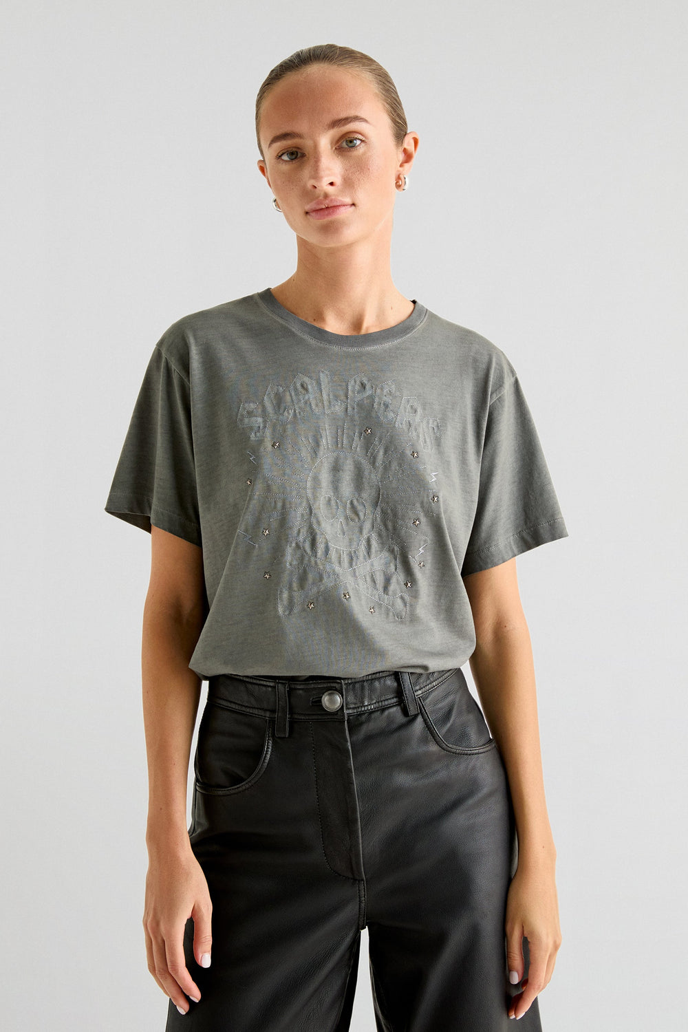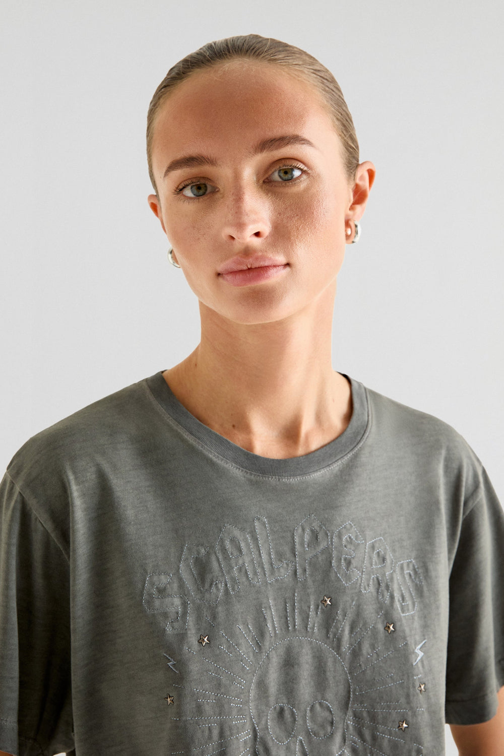 T-shirt made of 100% cotton. Regular fit, round neck and short sleeves. Print at the front with studded stars.