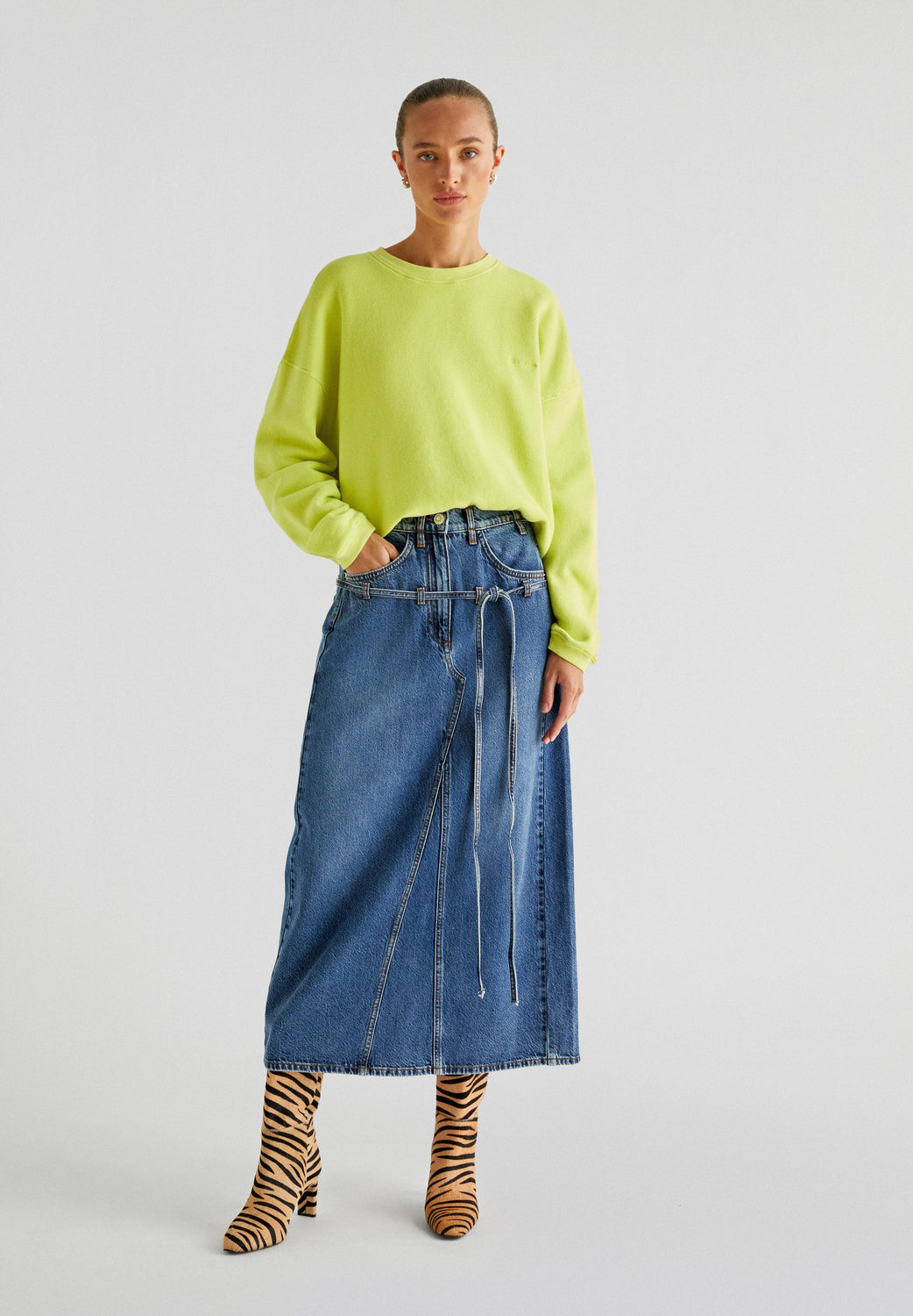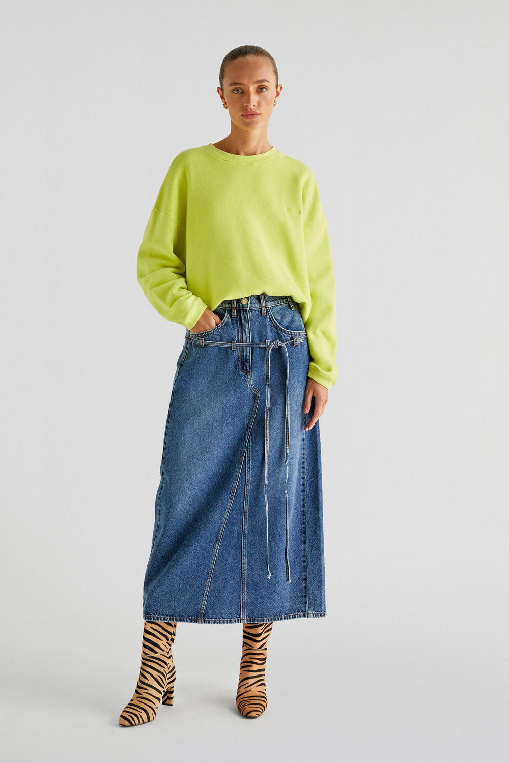 DENIM MIDI SKIRT WITH BOWS
