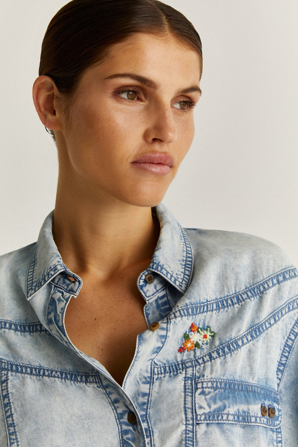DENIM SHIRT WITH EMBROIDERED DETAILS