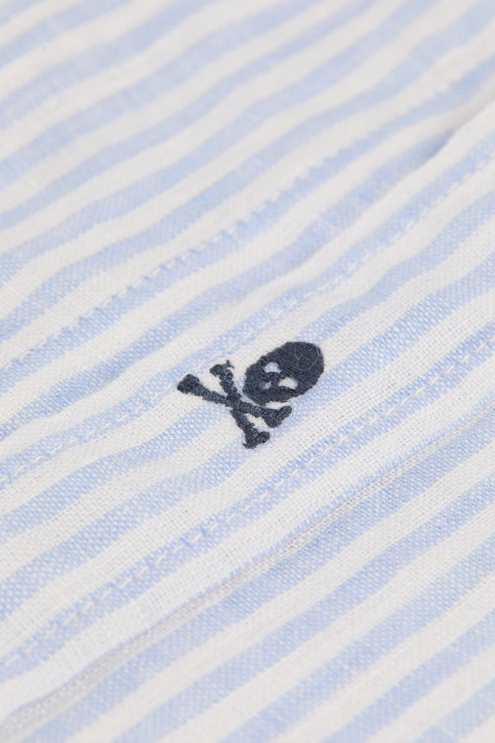 • Contrast embroidered skull detail on the placket
