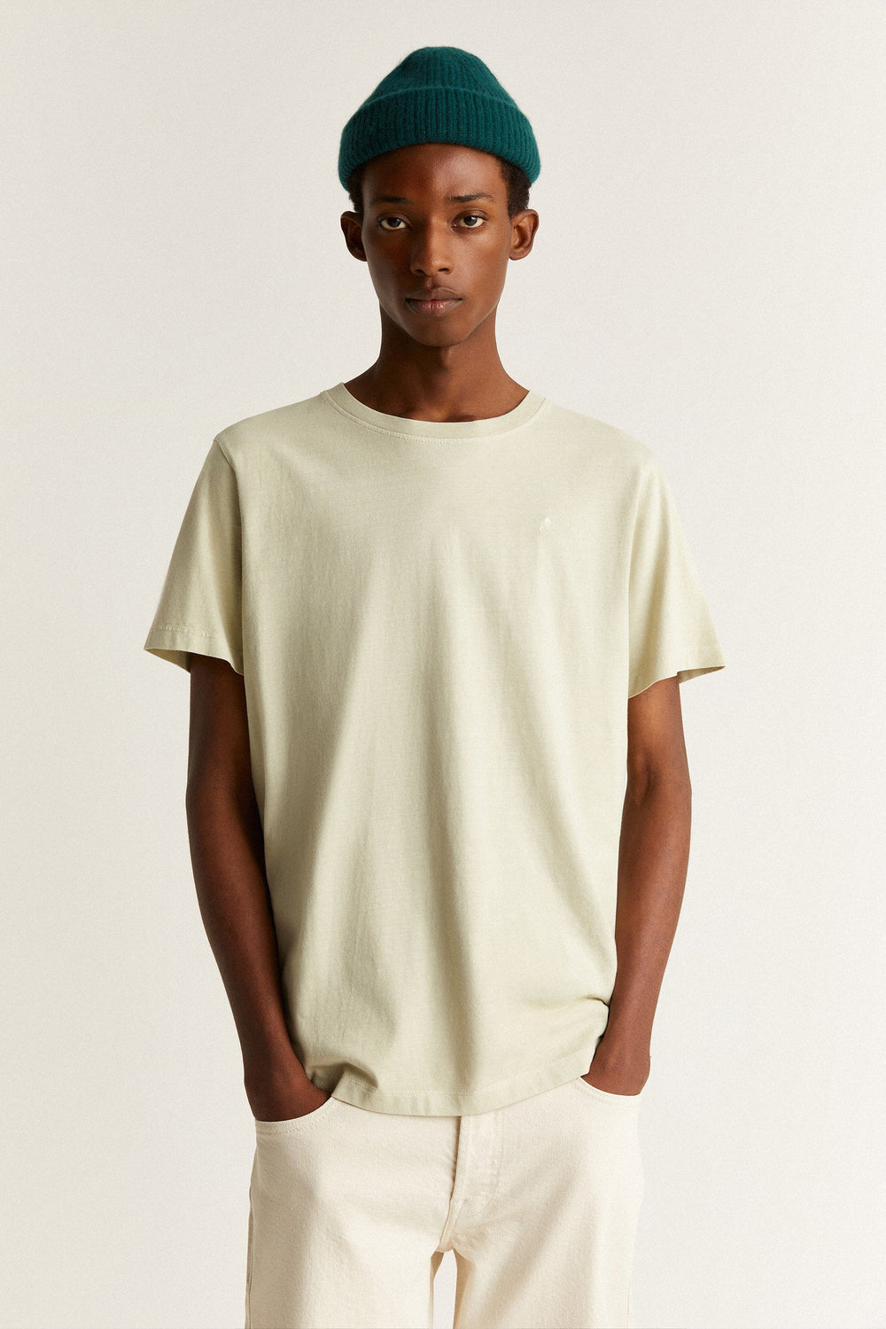 Washed effect T-shirt with matching embroidered skull on chest