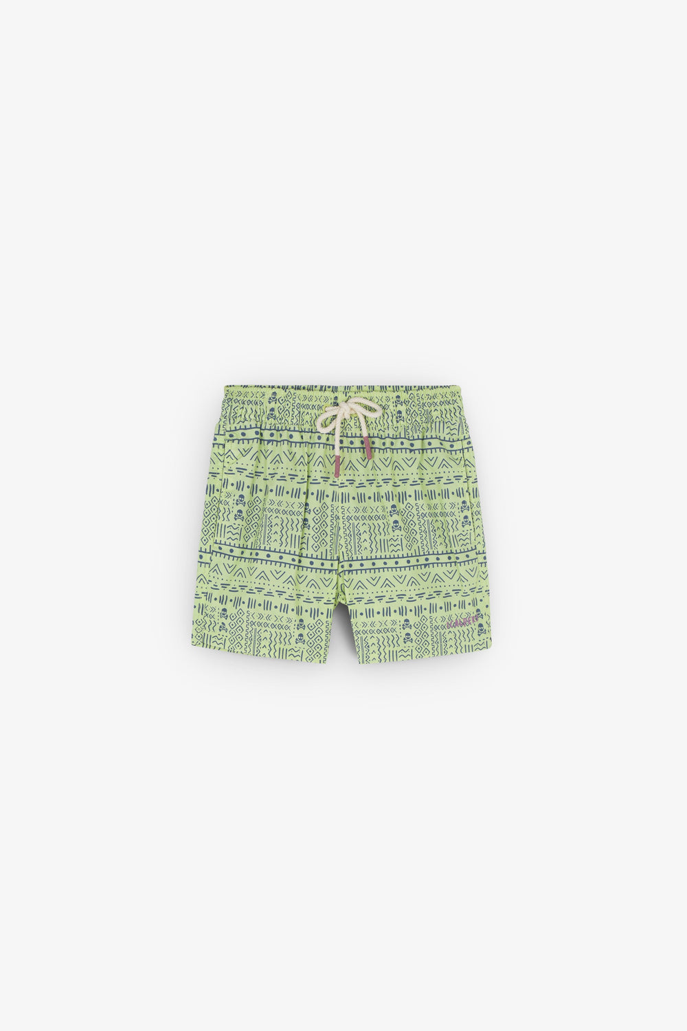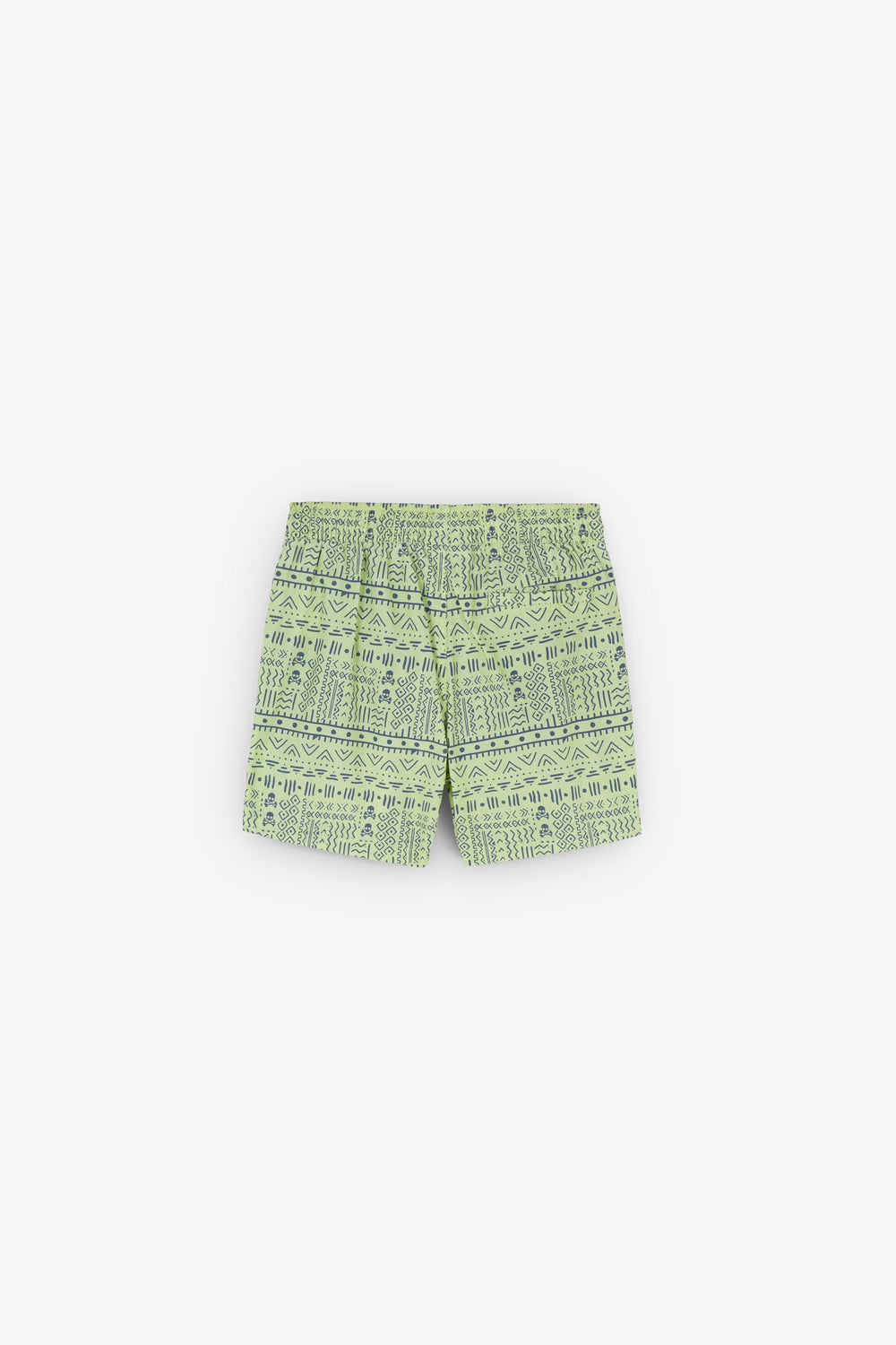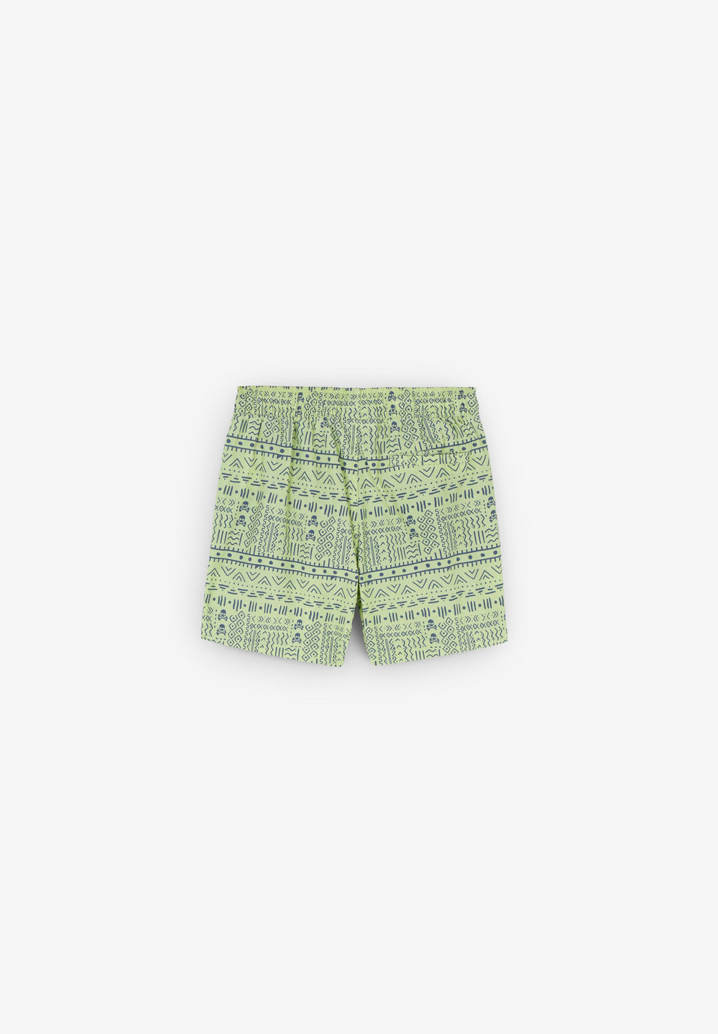 Swimming trunks with an ethnic print and all over skulls detail.