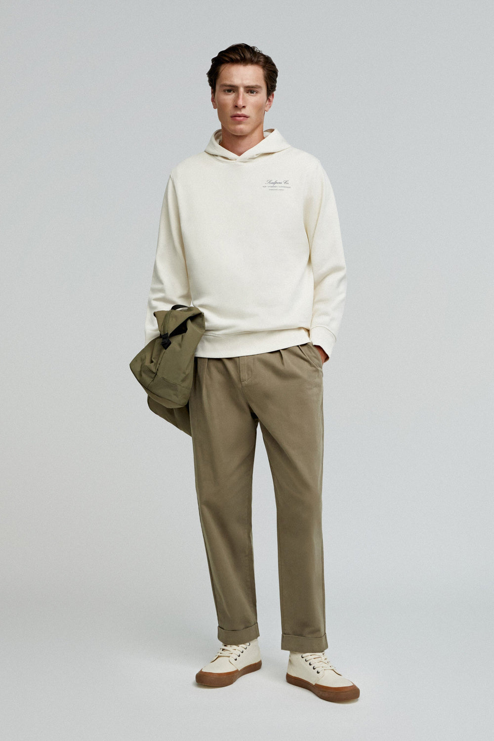 Sweatshirt made of 100% BCI cotton. Regular fit, collar with hood and long sleeves. Front logo and back slogan.