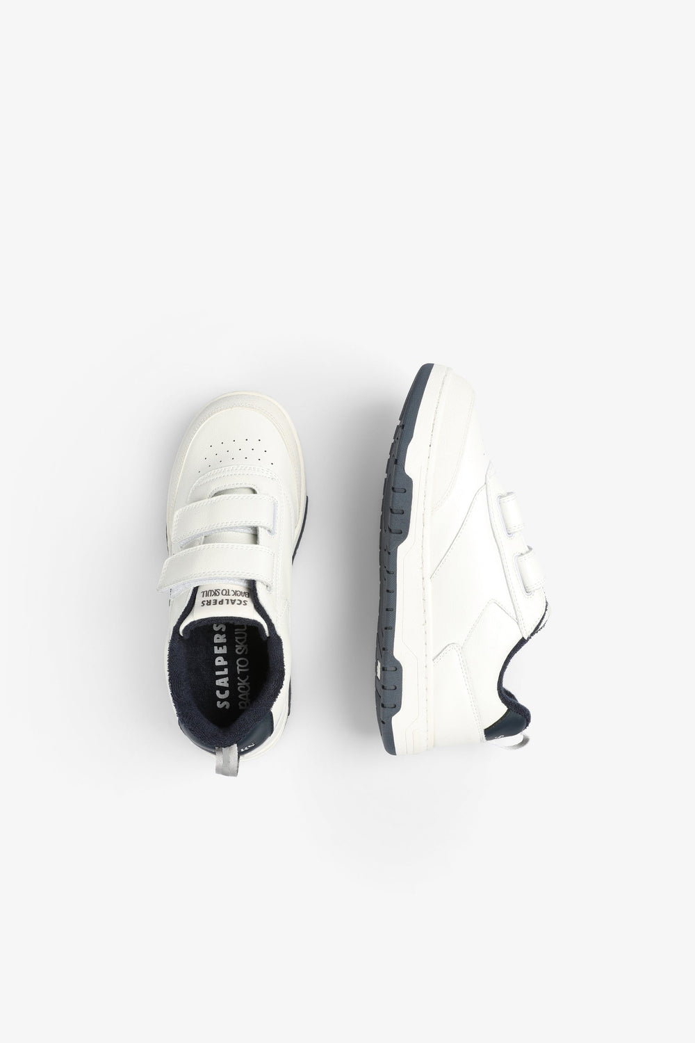 Sneakers confeccionadas en piel. Cierre con velcros, suela de goma y calavera lateral.