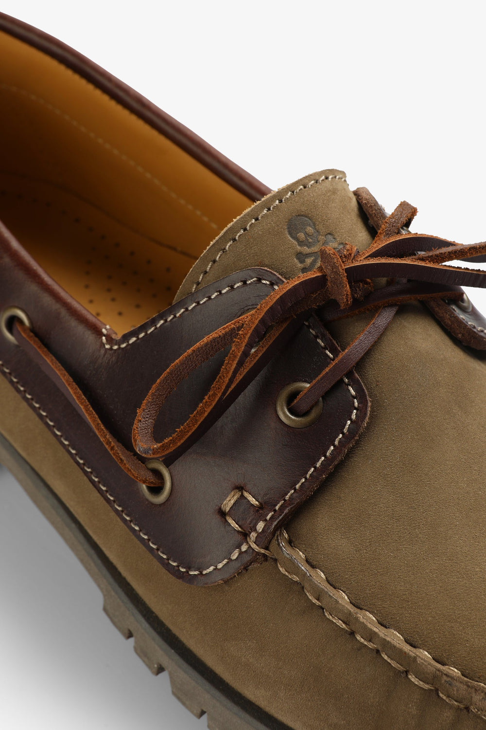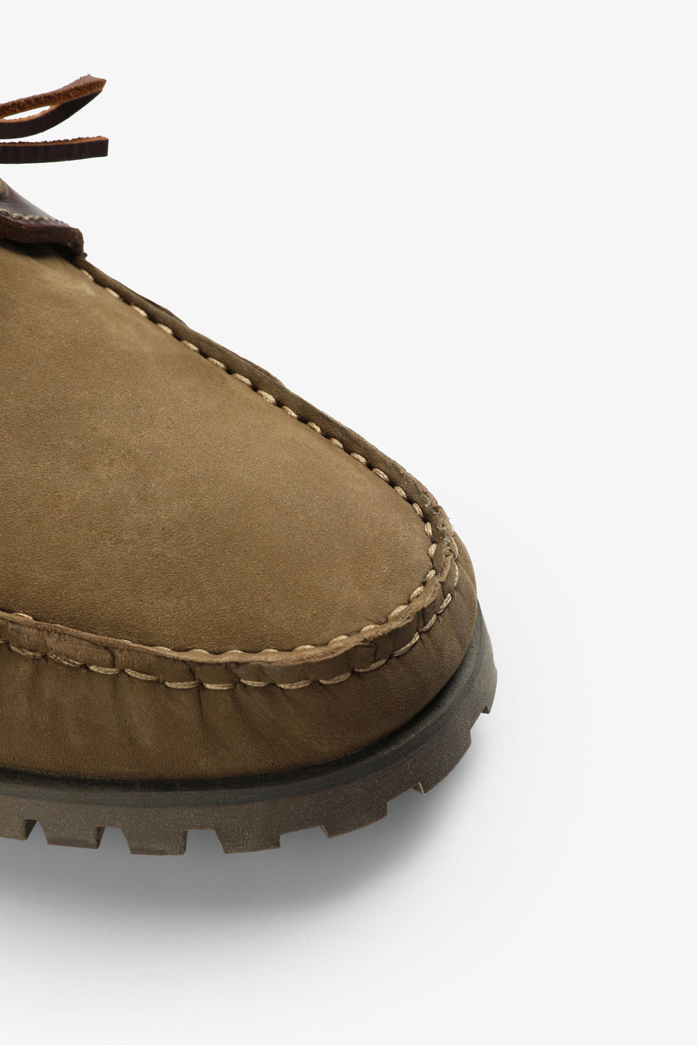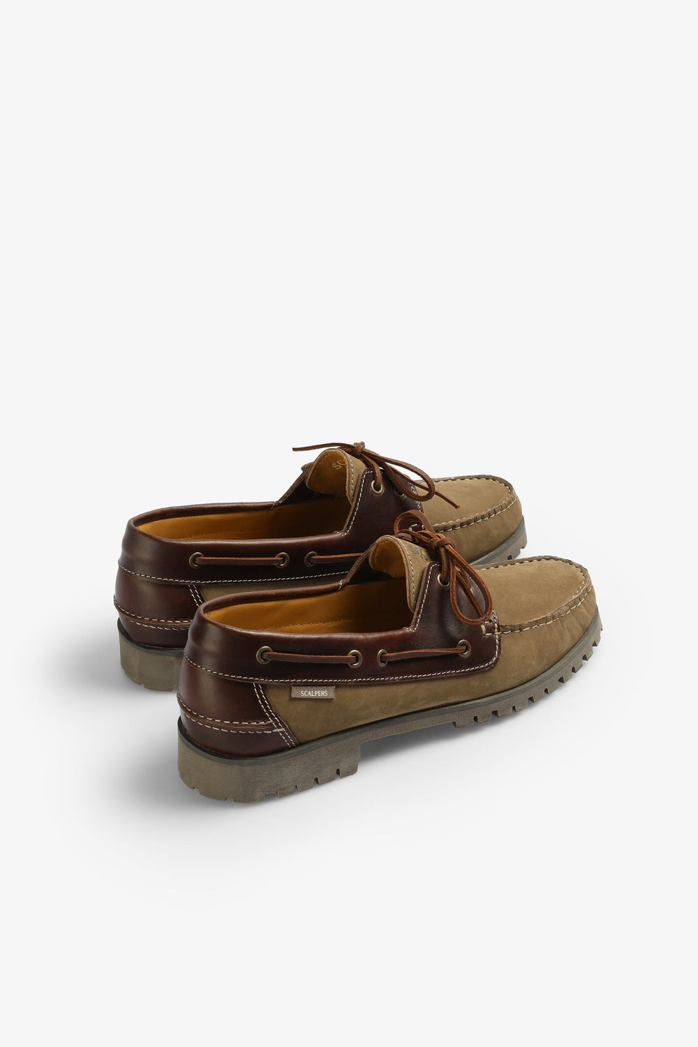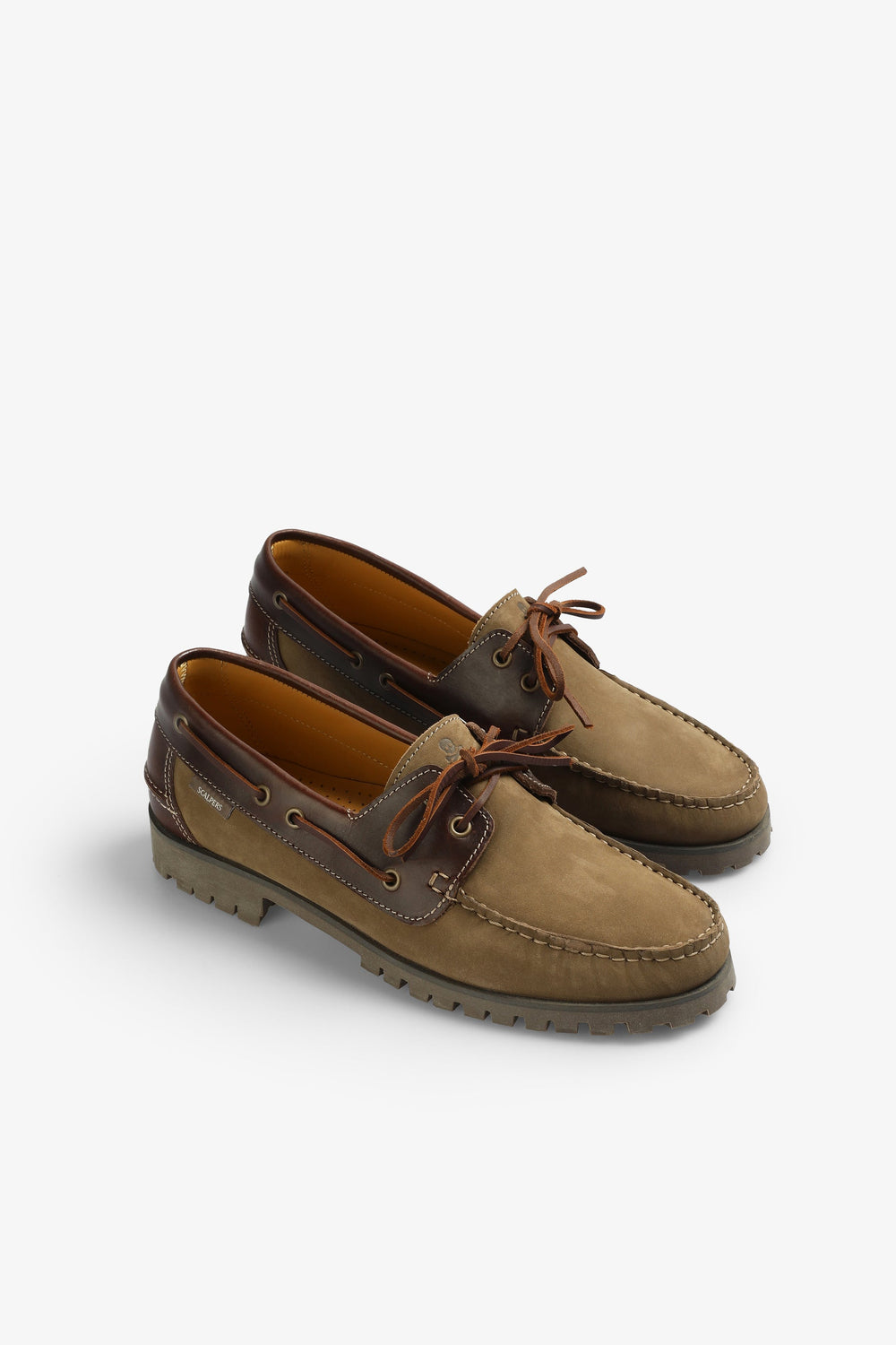 Deck shoes in a leather blend. Lace-up fastening and chunky track sole. Side label