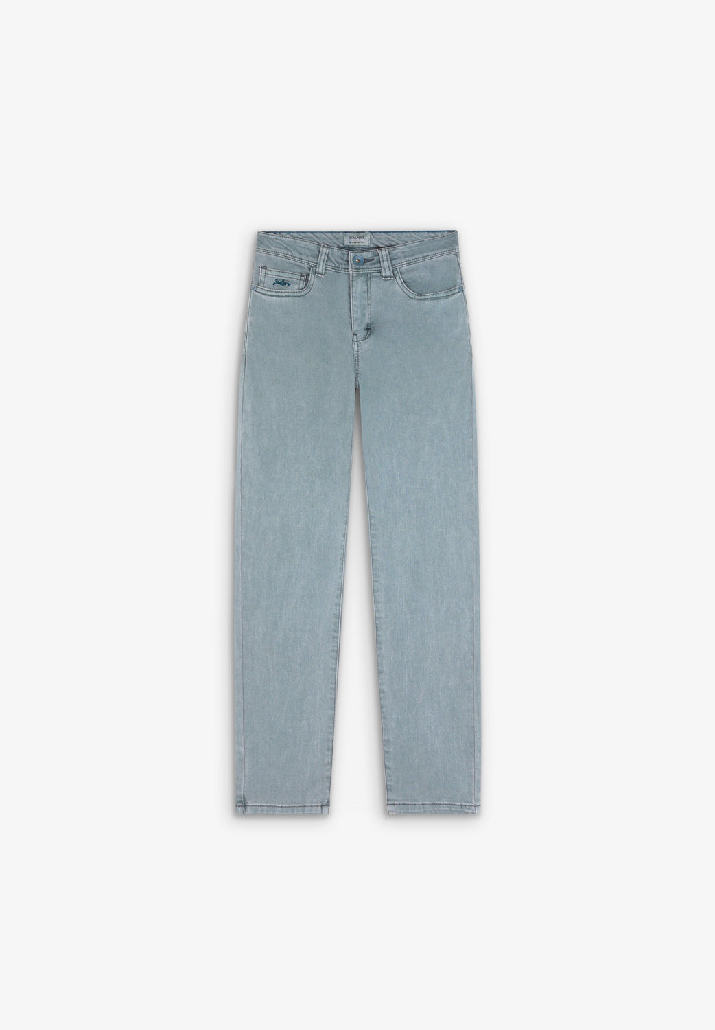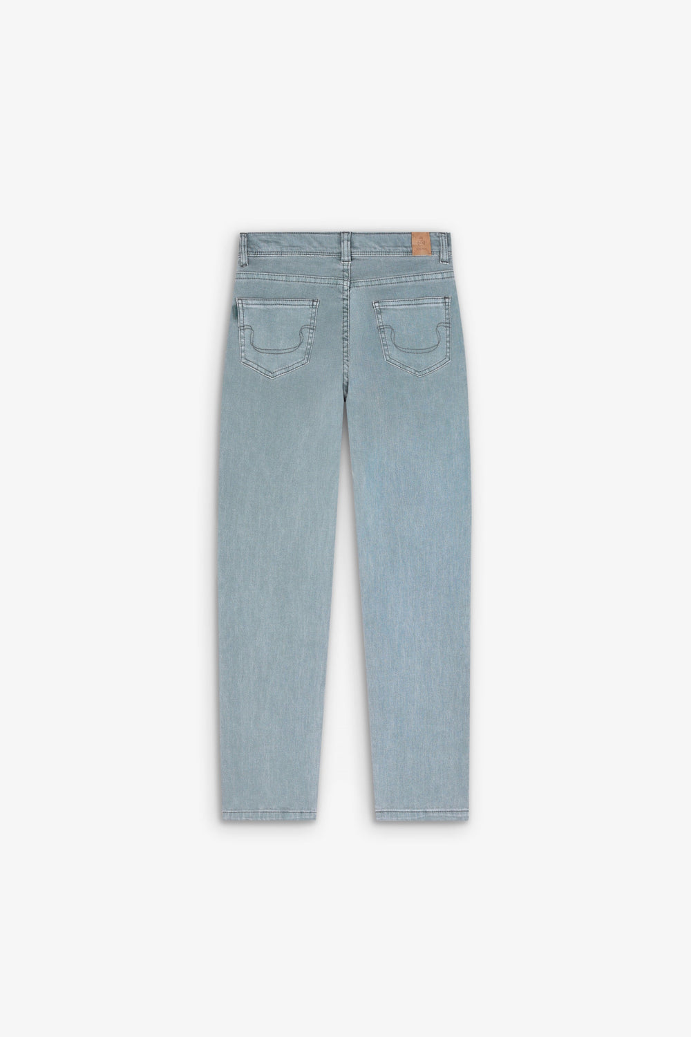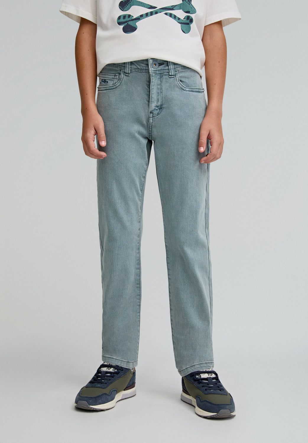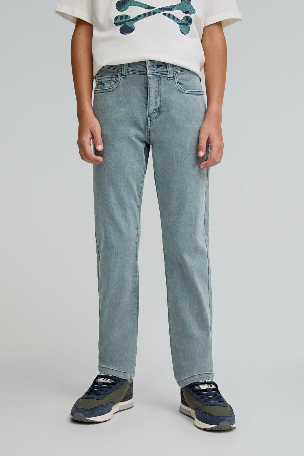 Five-pocket trousers made of slightly stretchy fabric. Button and zip fastening. Regular fit.