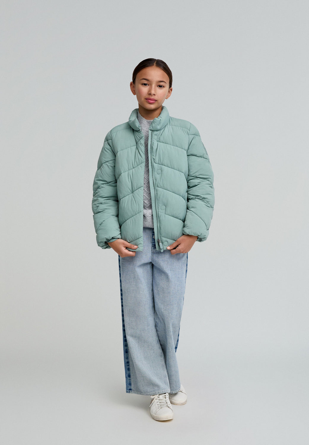 Quilted jacket made of recycled fabrics. Regular fit, slightly high collar and zip and magnet fastening. Long sleeves and side pockets.