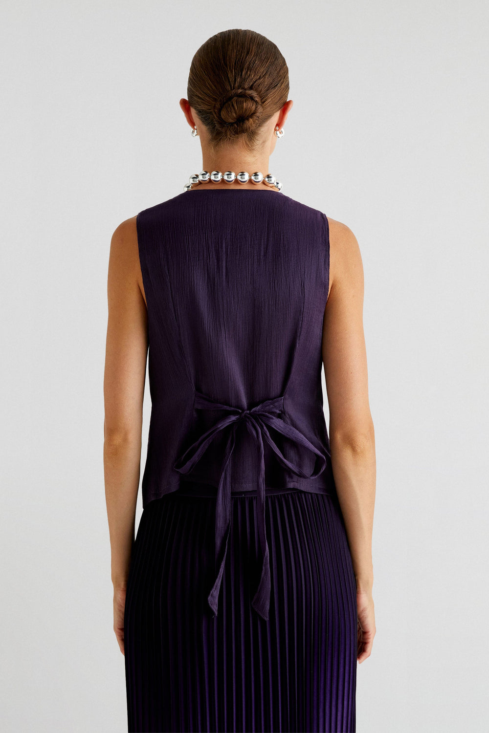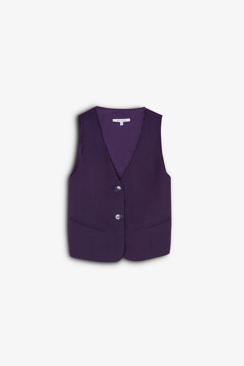 Waistcoat with organza at the back. Slim fit, V-neck and button fastening. Sleeveless with jetted pockets. Back bow.