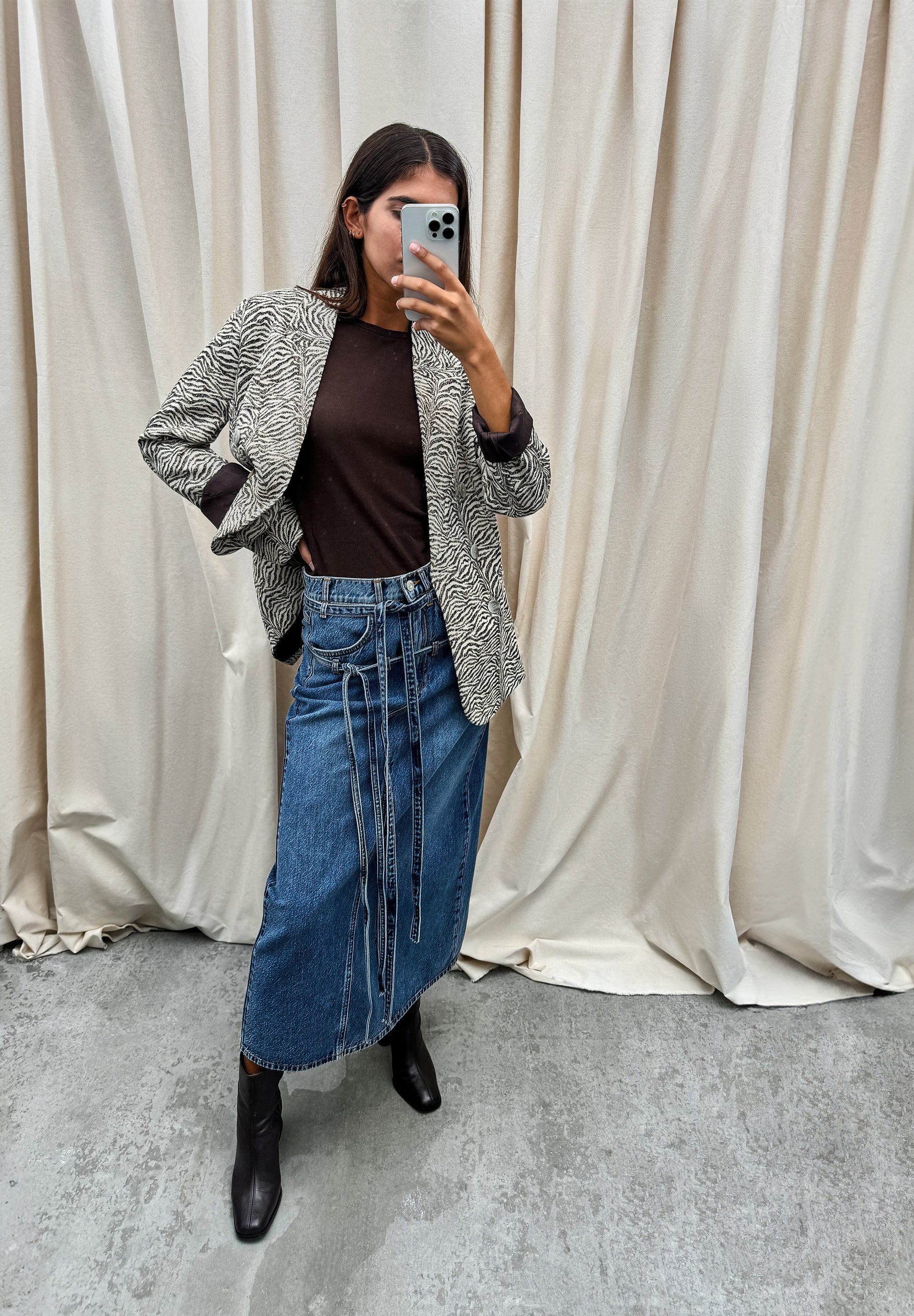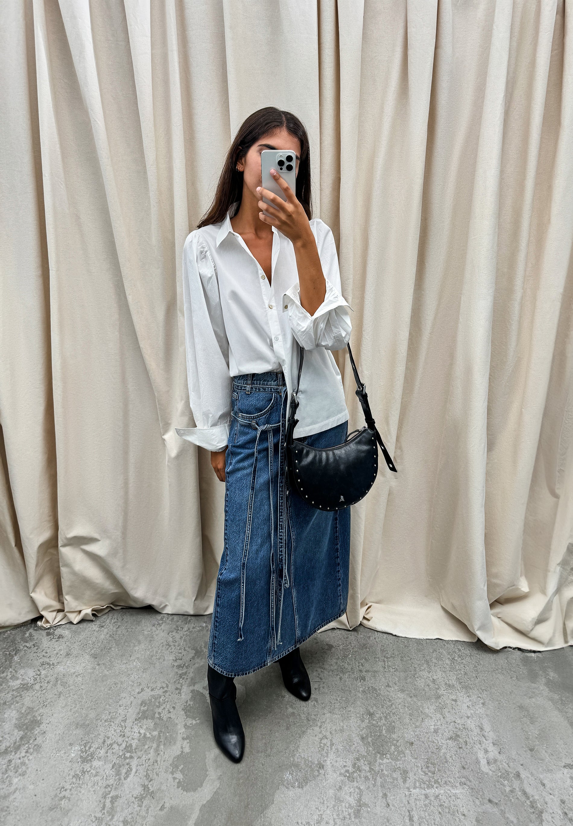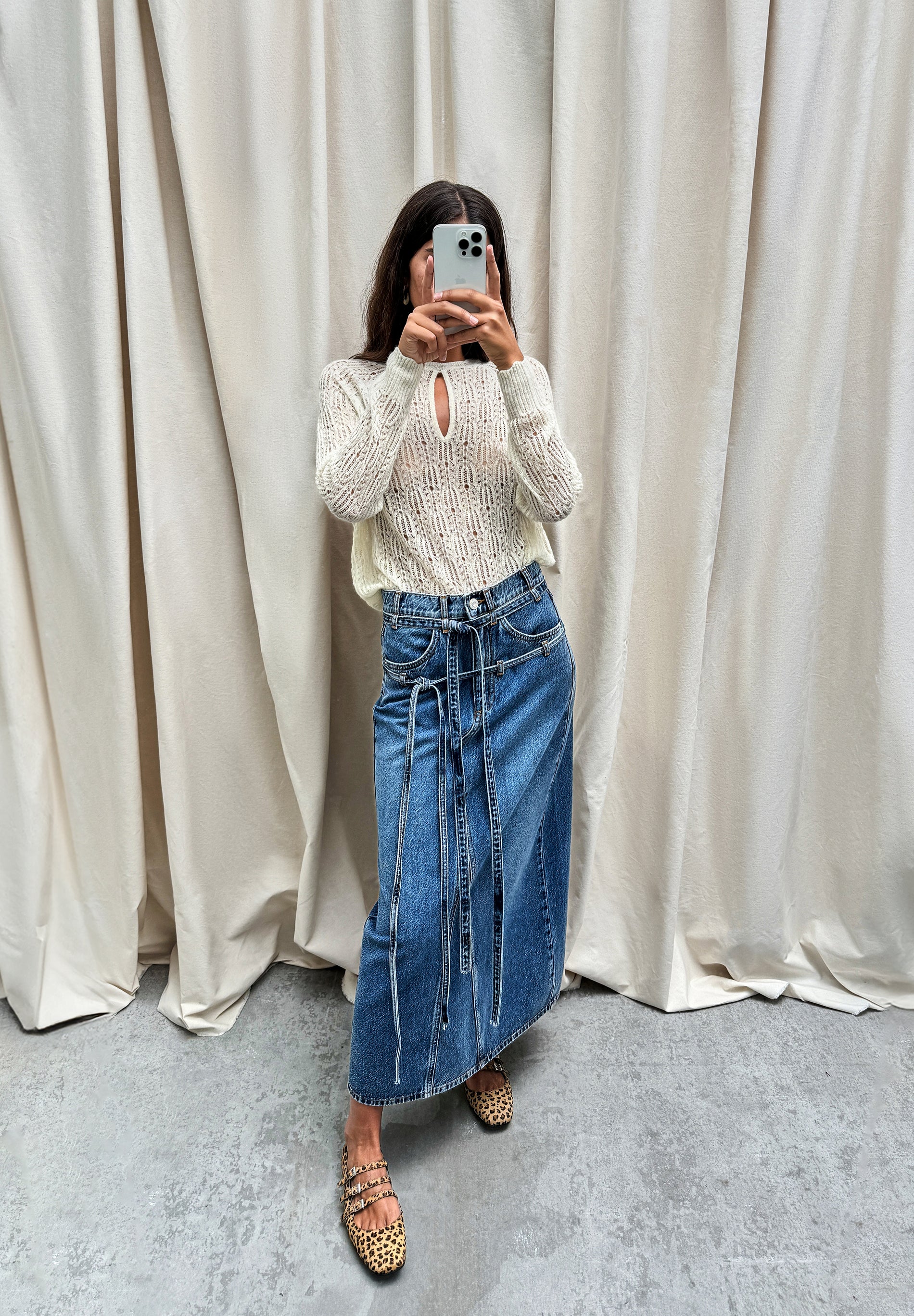 DENIM MIDI SKIRT WITH BOWS