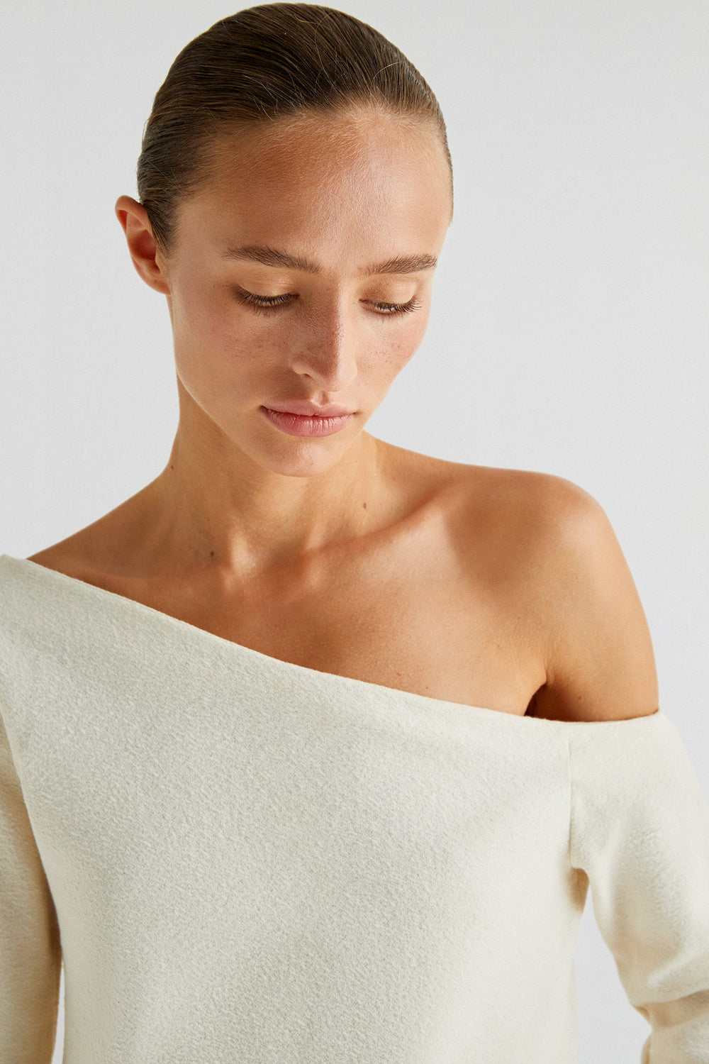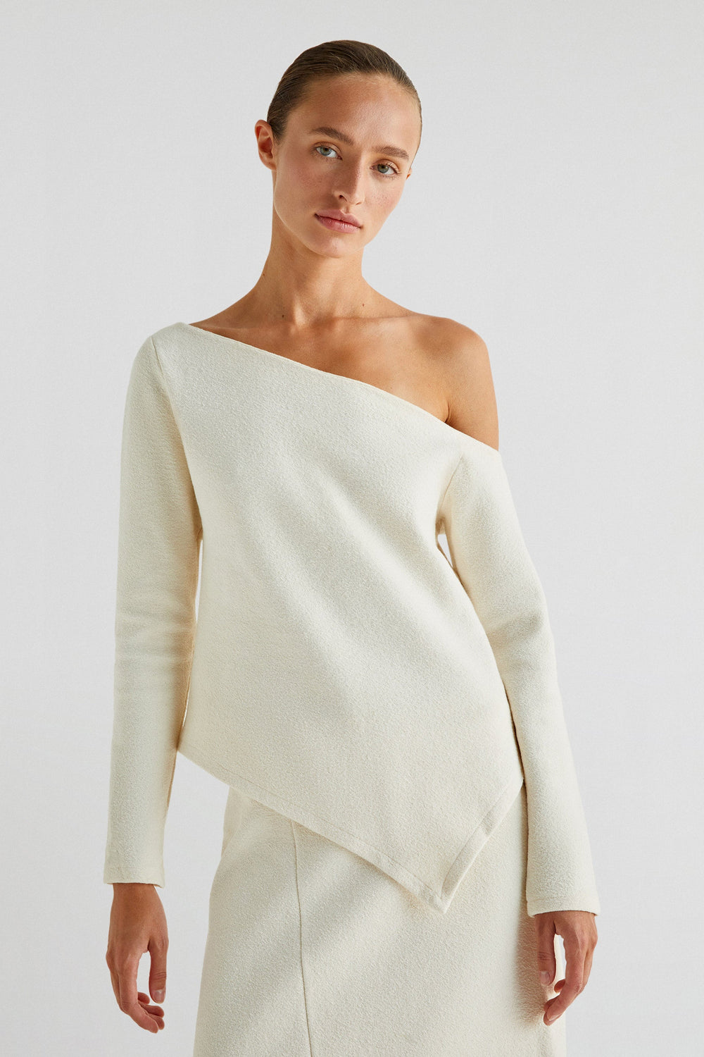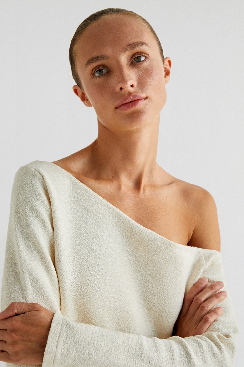 Crop top made of chunky knit 100% cotton. Slim fit, drawstring halter neck and back strap fastening.