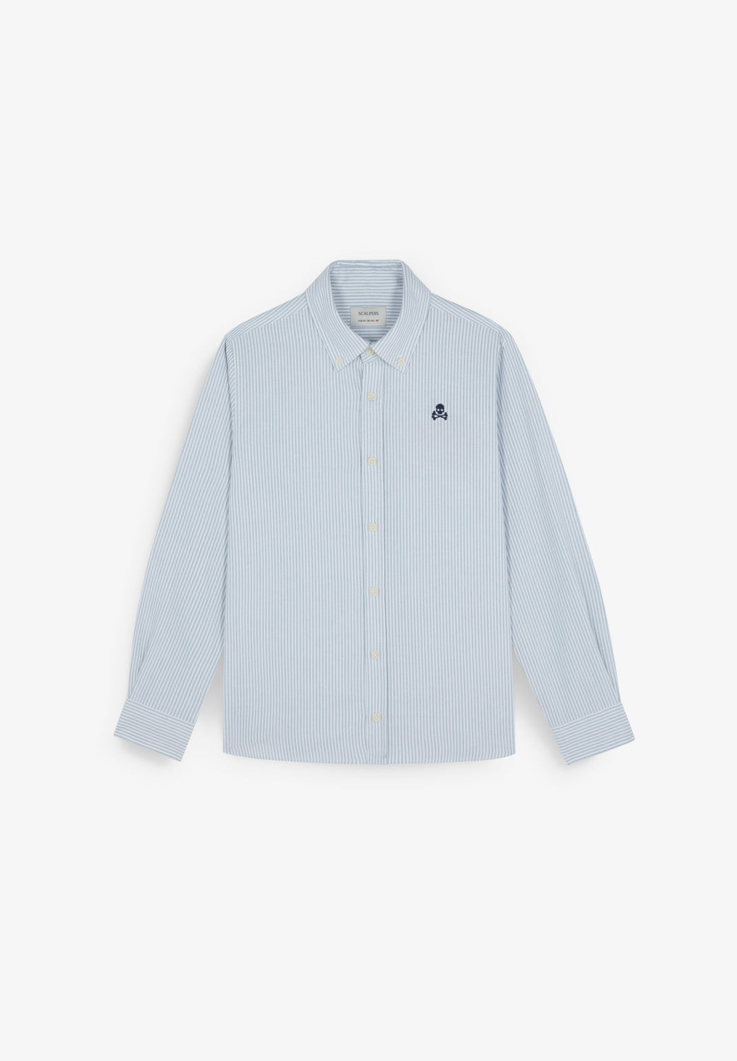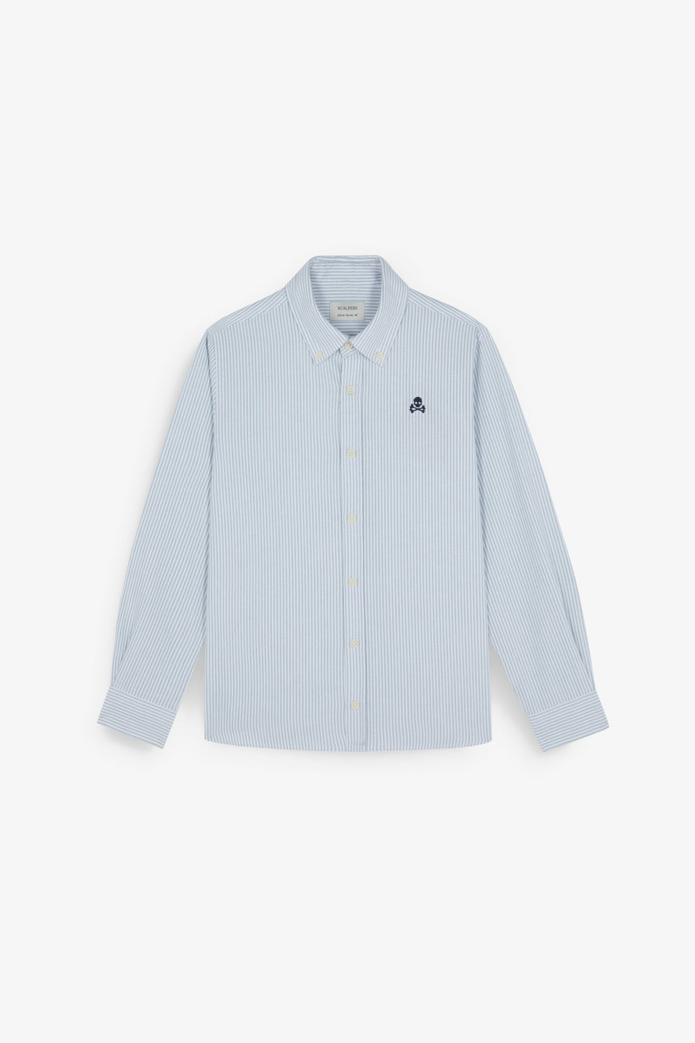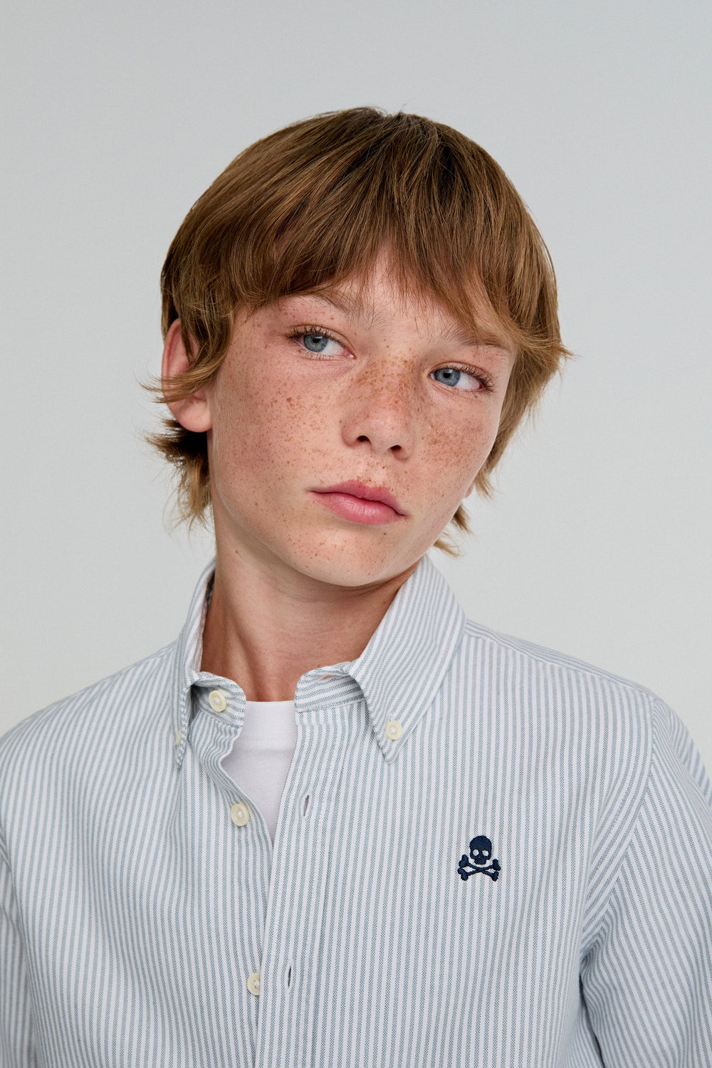 Oxford shirt with stripe print. Made of 100% cotton. Regular fit. Buttoned collar. Long sleeves with cuffs. Contrast embroidered skull.
