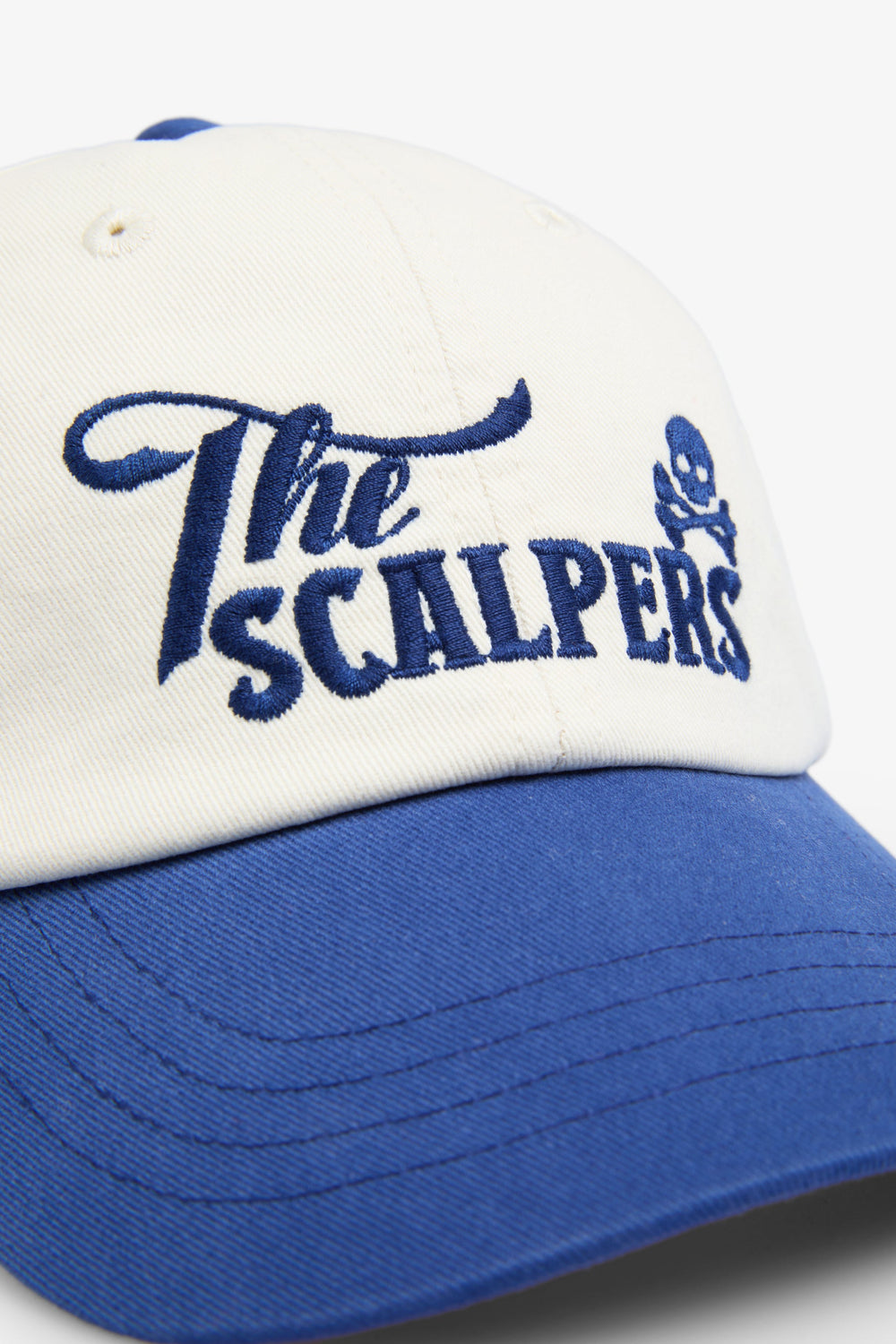 Two-tone cap made of a cotton blend. Adjustable back fastening and front embroidery.