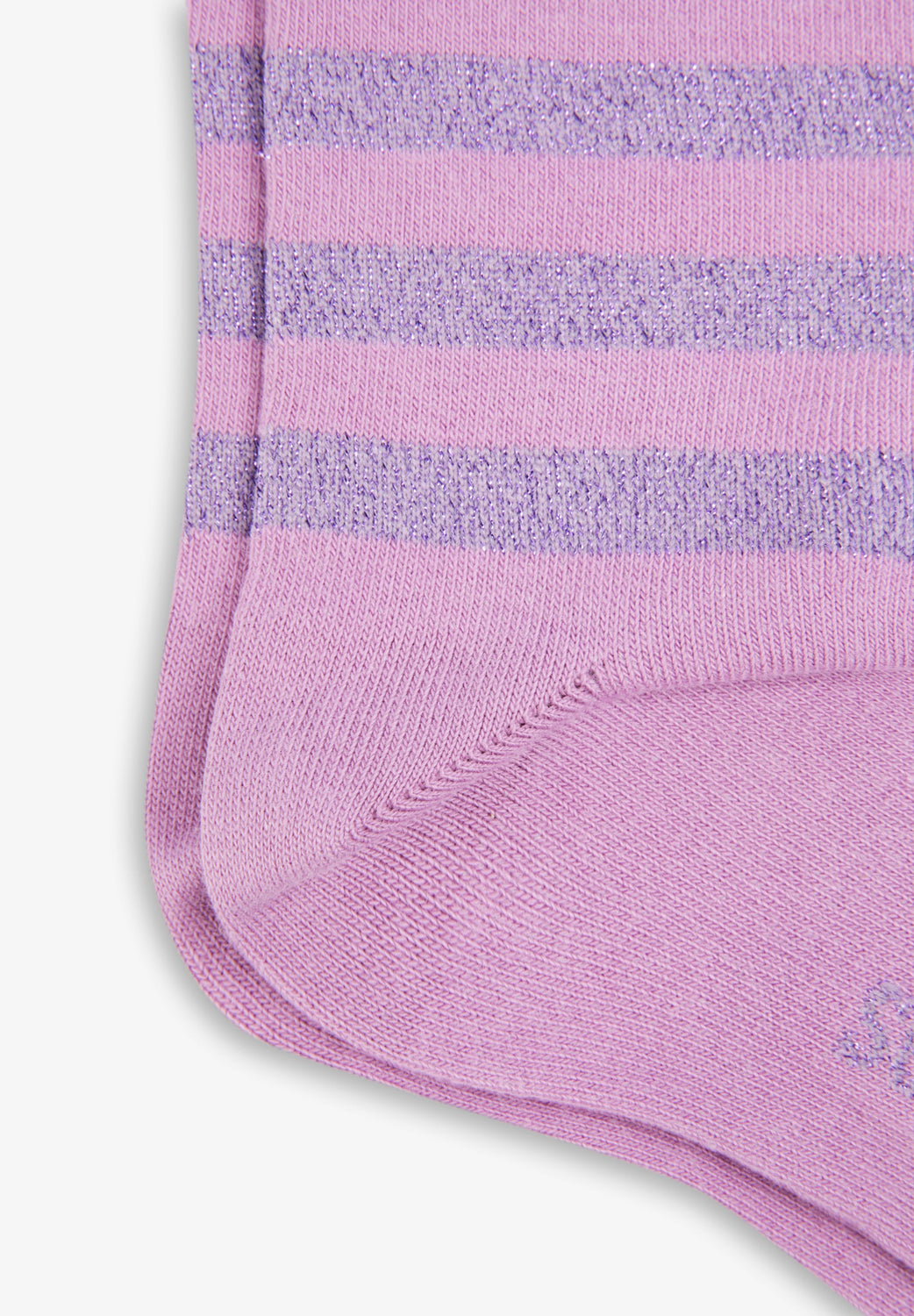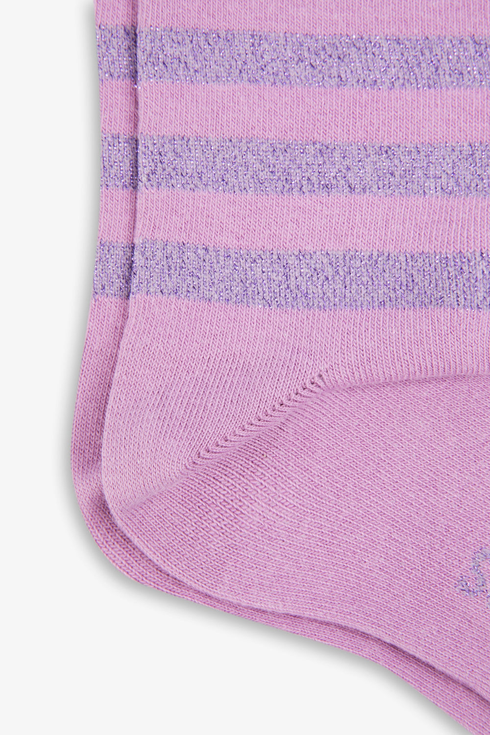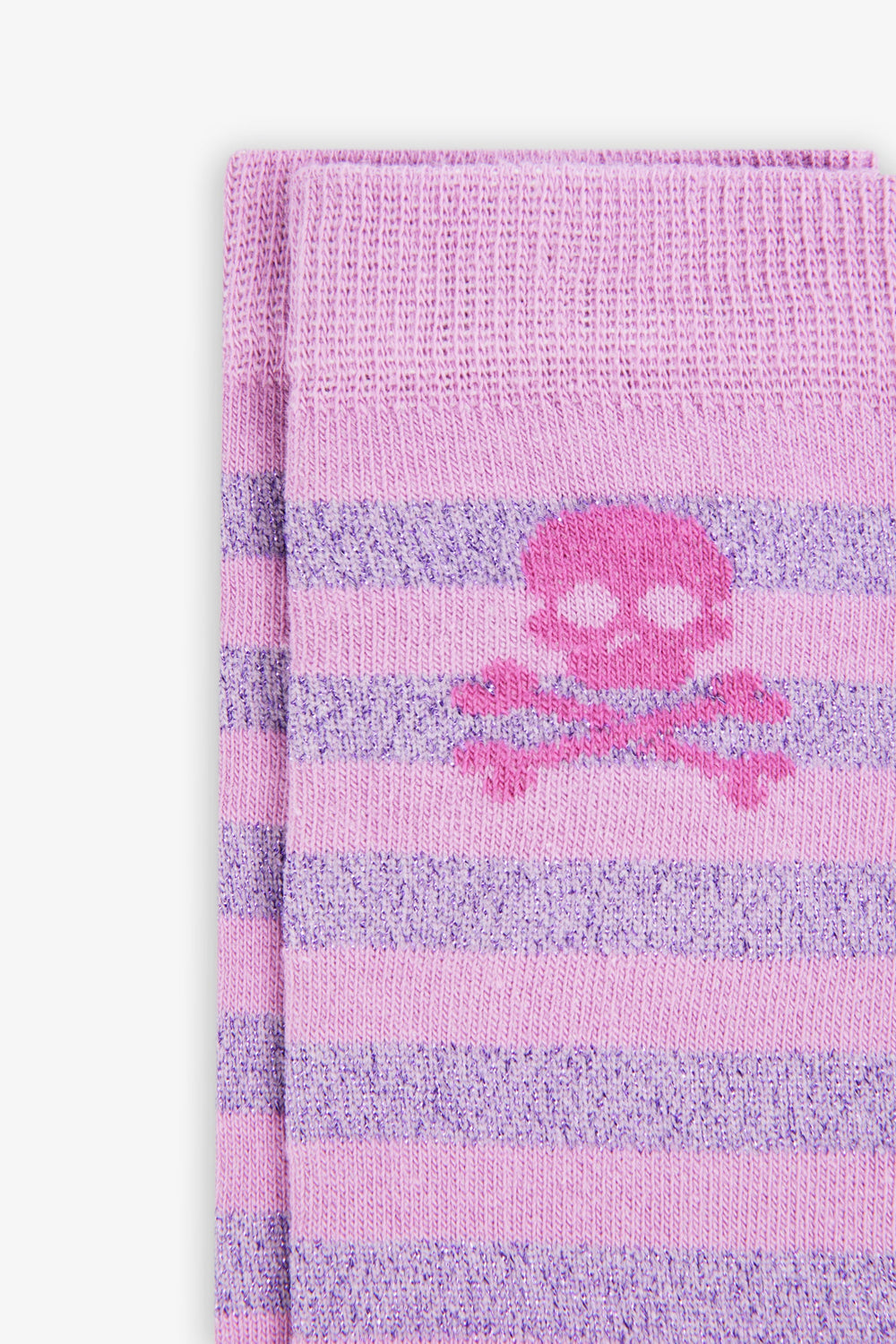 Striped socks made of slightly stretch fabric with lurex. Mid-calf with a skull.