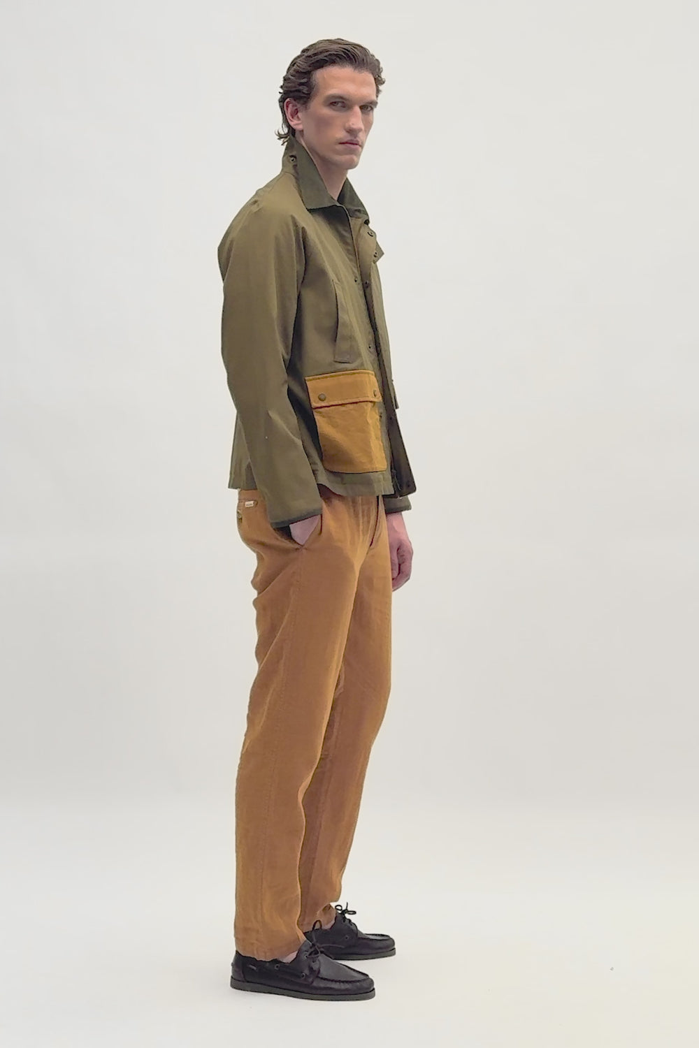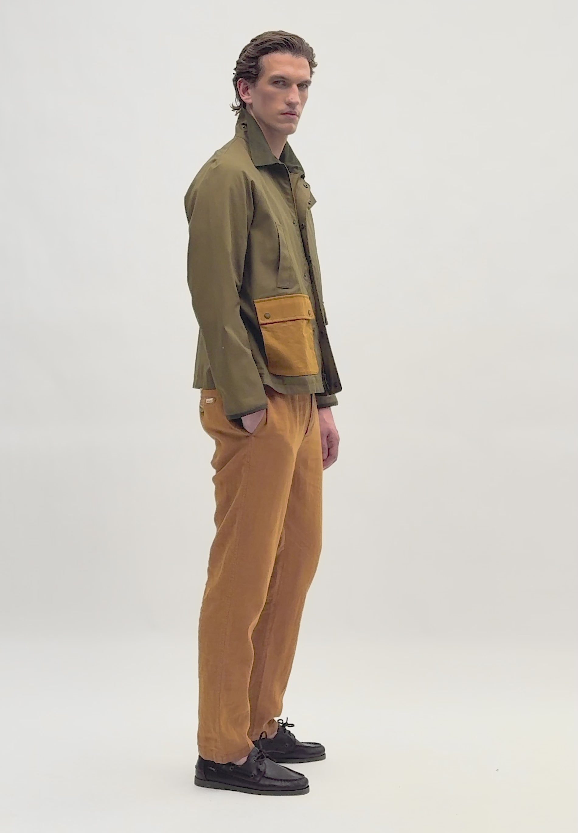 Parka légère. 100 % coton BCI. Col chemise en velours côtelé, fermeture éclair à double curseur et patte à boutons-pression. Poches dissimulées et poches à rabat bicolores avec boutons-pression sur le devant. Poignets à finition côtelée.