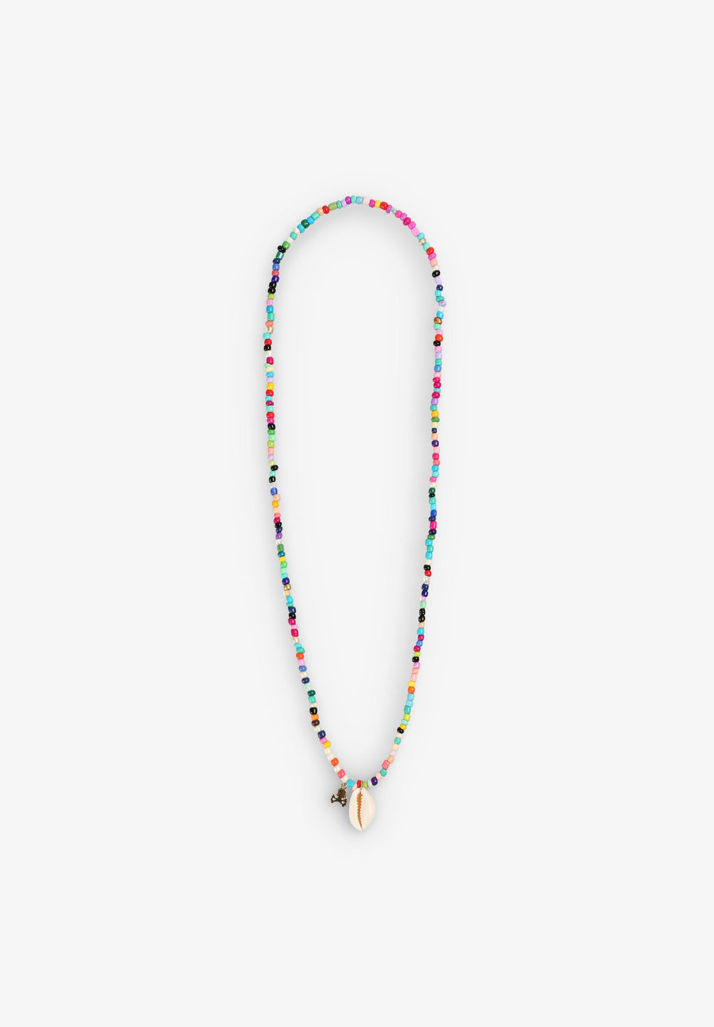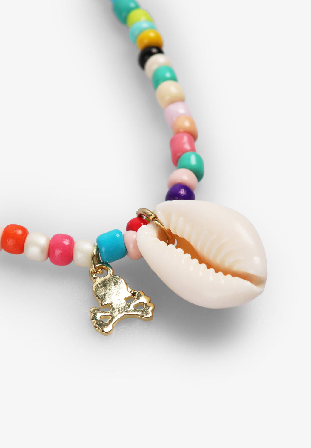 Collier de perles fantaisie avec breloques coquillage et skull.