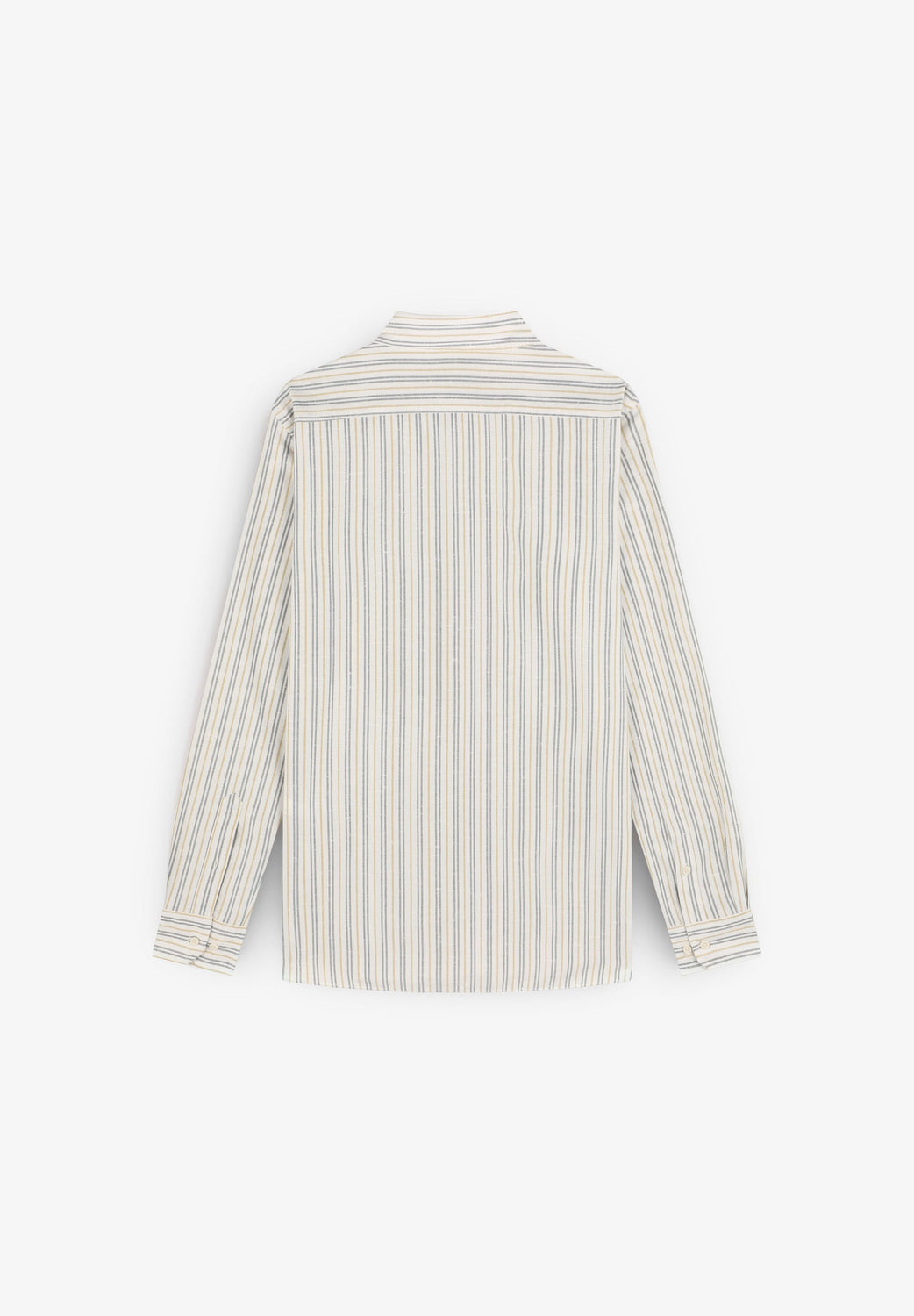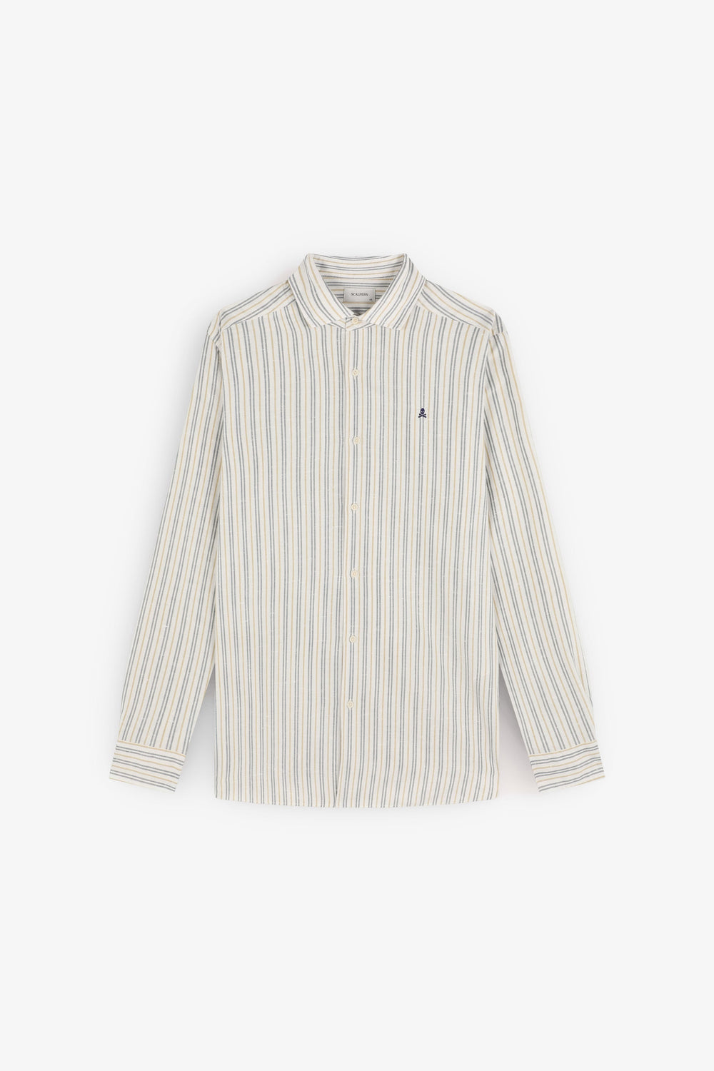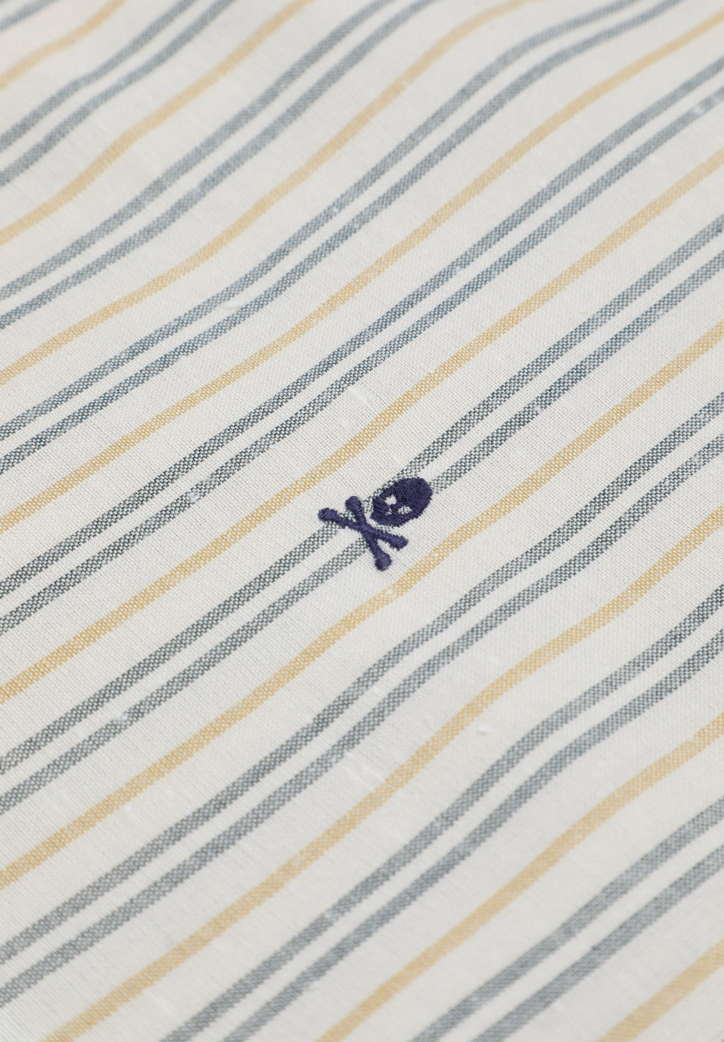 Chemise à rayures 100 % coton. Coupe droite, col italien et fermeture boutonnée. Manches longues et poignets boutonnés. Skull contrastant brodé sur la poitrine