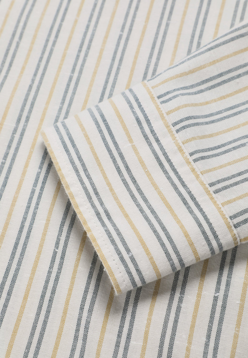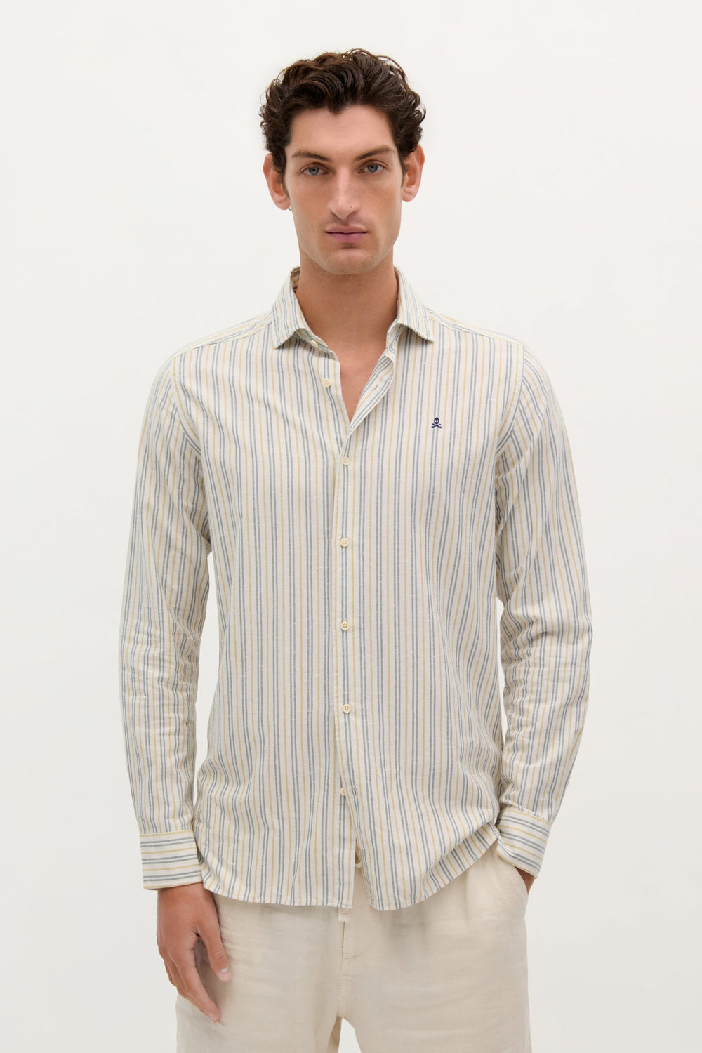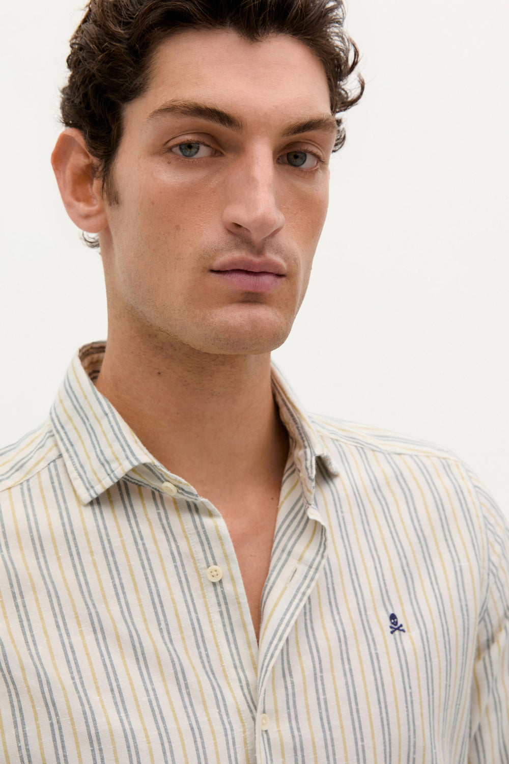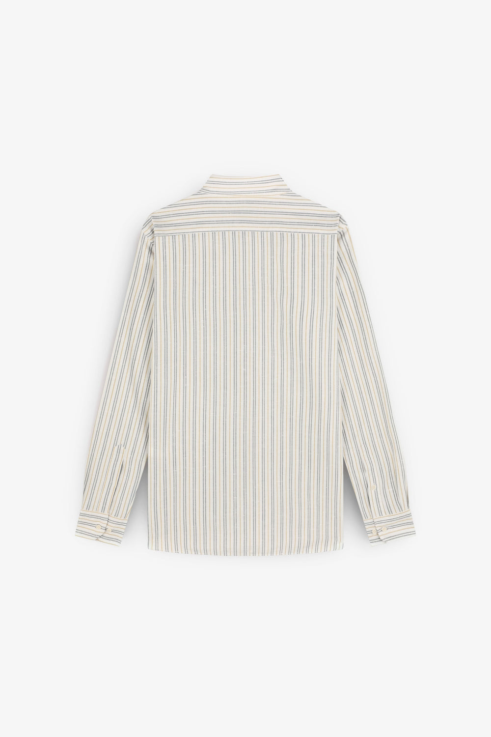 Chemise à rayures 100 % coton. Coupe droite, col italien et fermeture boutonnée. Manches longues et poignets boutonnés. Skull contrastant brodé sur la poitrine