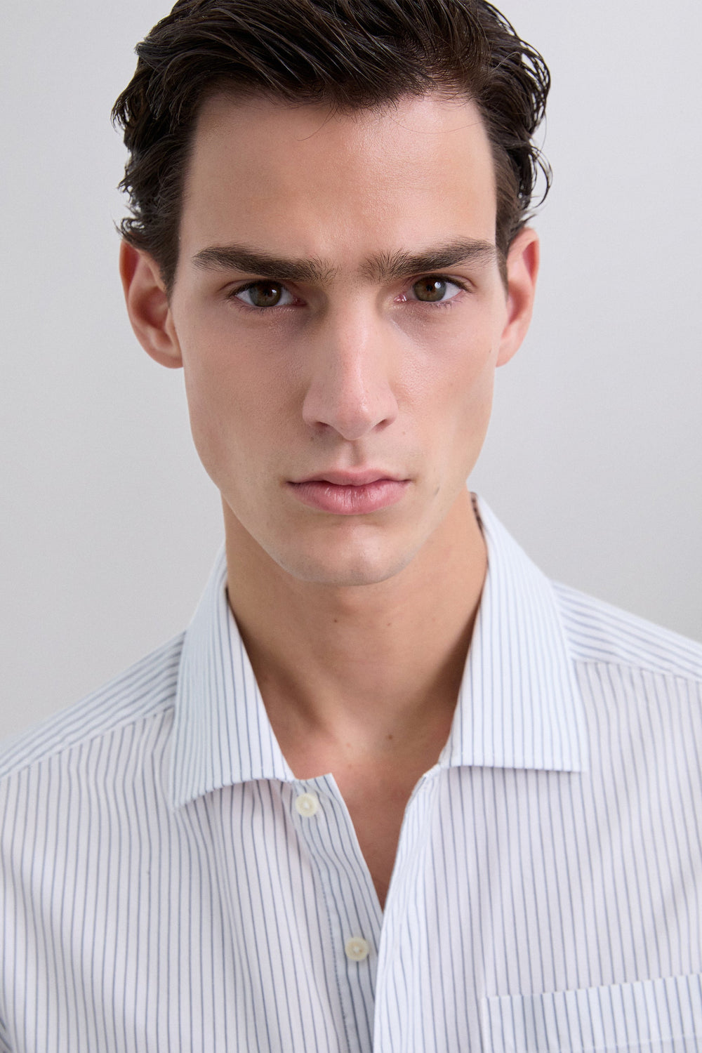 Chemise 100 % coton bio. Coupe droite. Col en pointe. Boutons. Poche au niveau de la poitrine. Poignets boutonnées et logo.