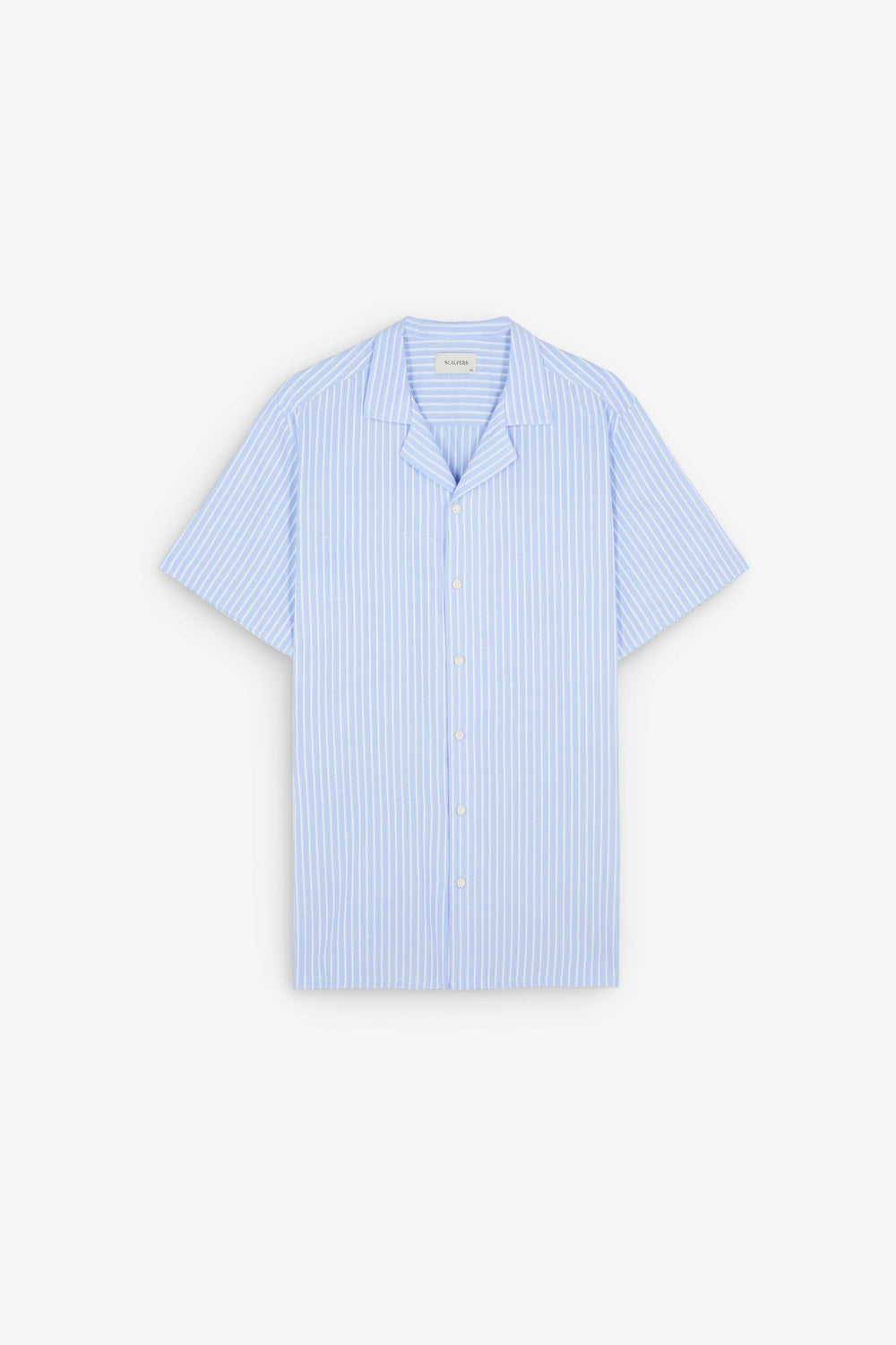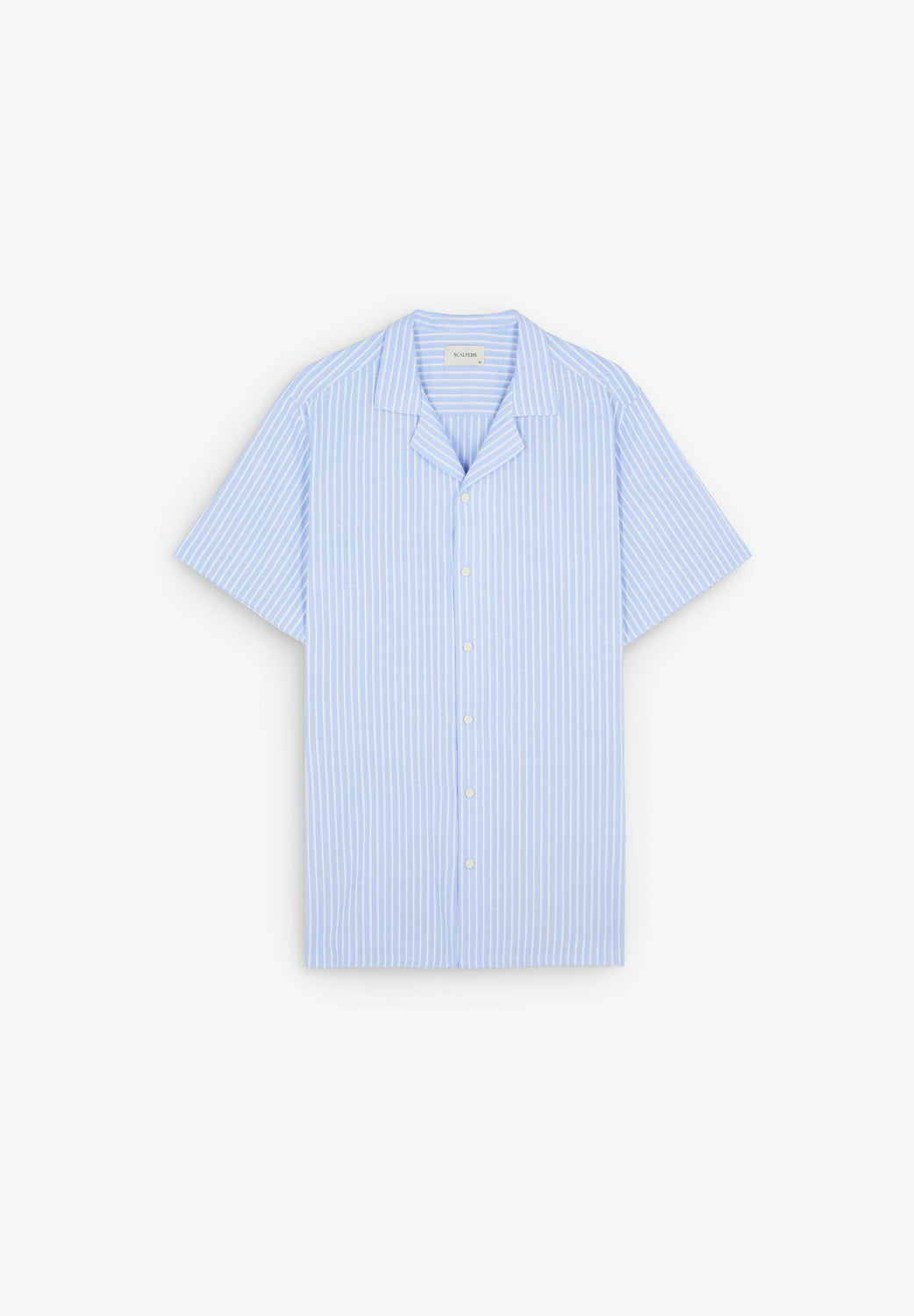 Chemise à rayures. 100 % coton. Coupe droite. Col boutonné. Fermeture boutonnée. Manches courtes.