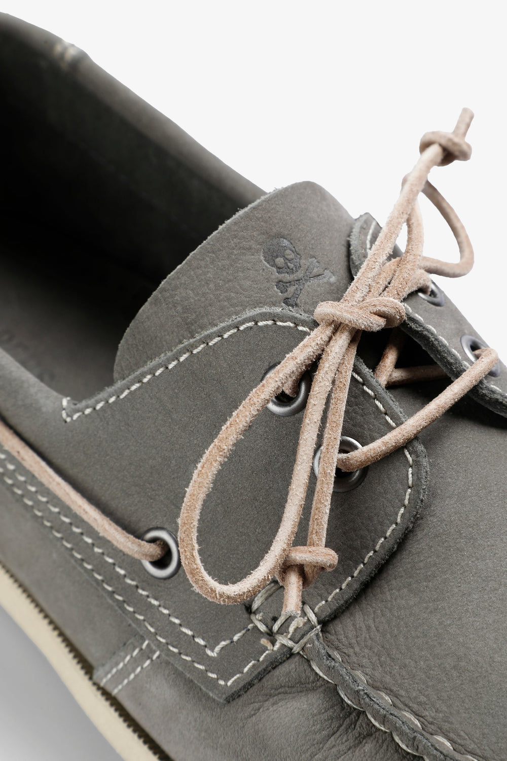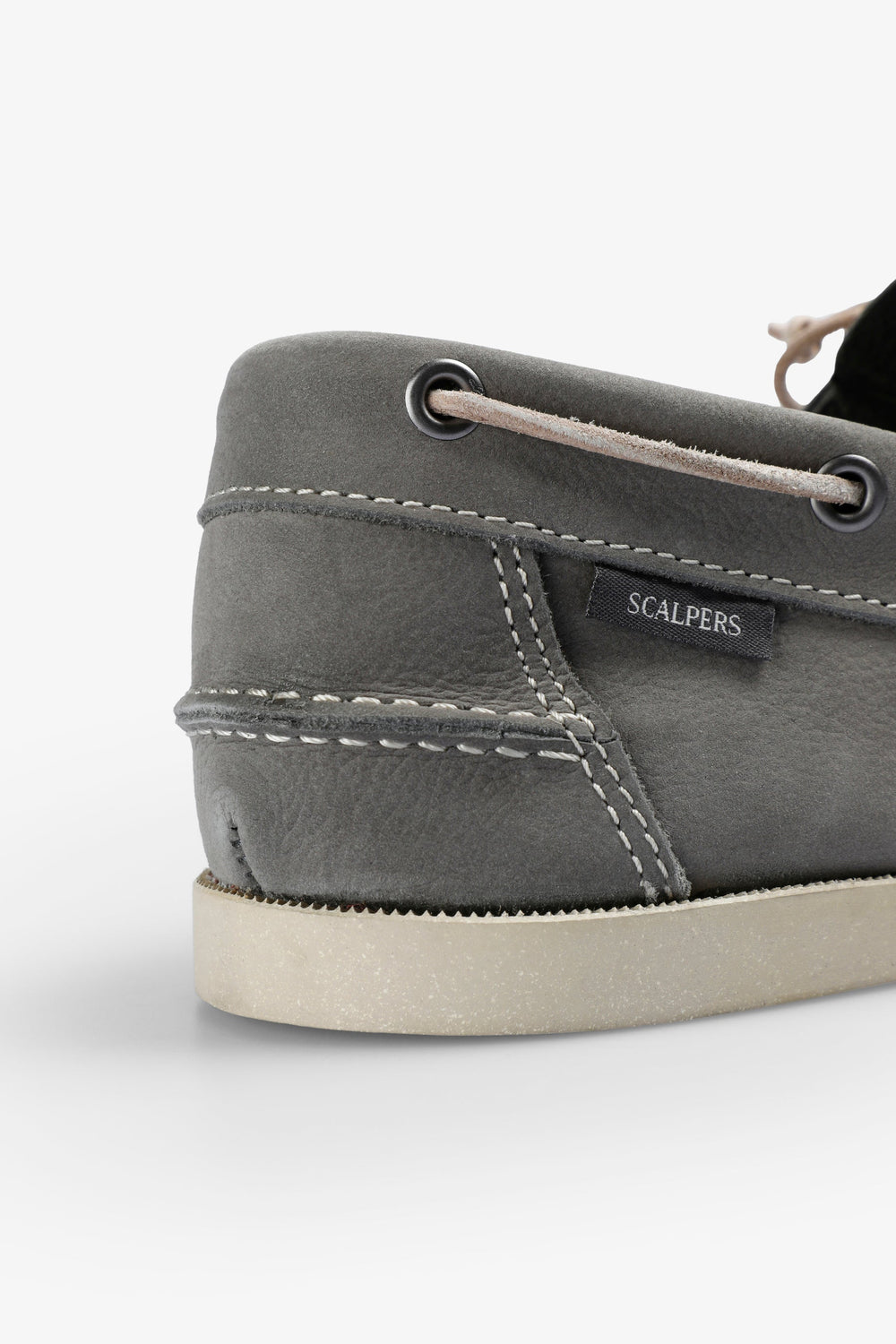 Chaussures bateau. Confectionnées en cuir recyclé. Lacets. Semelles en caoutchouc.