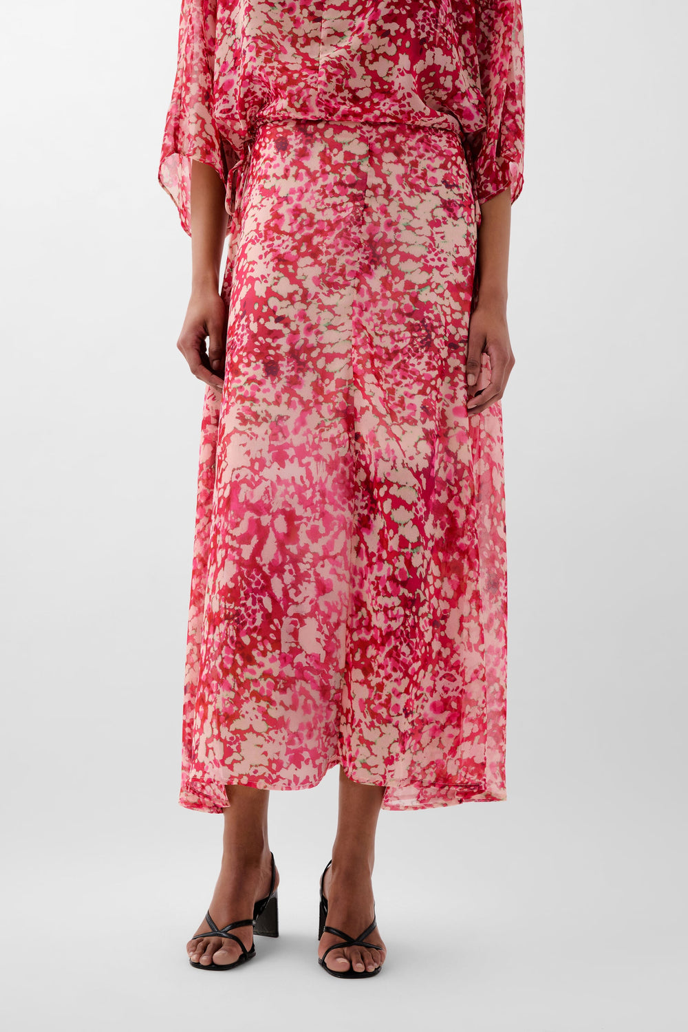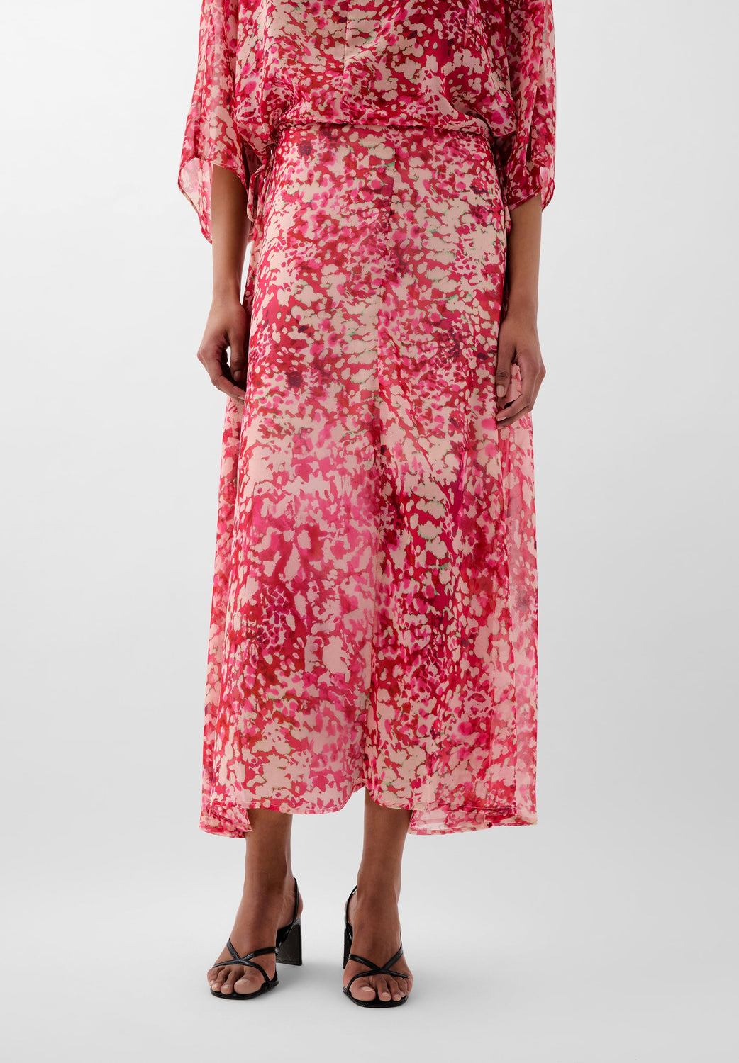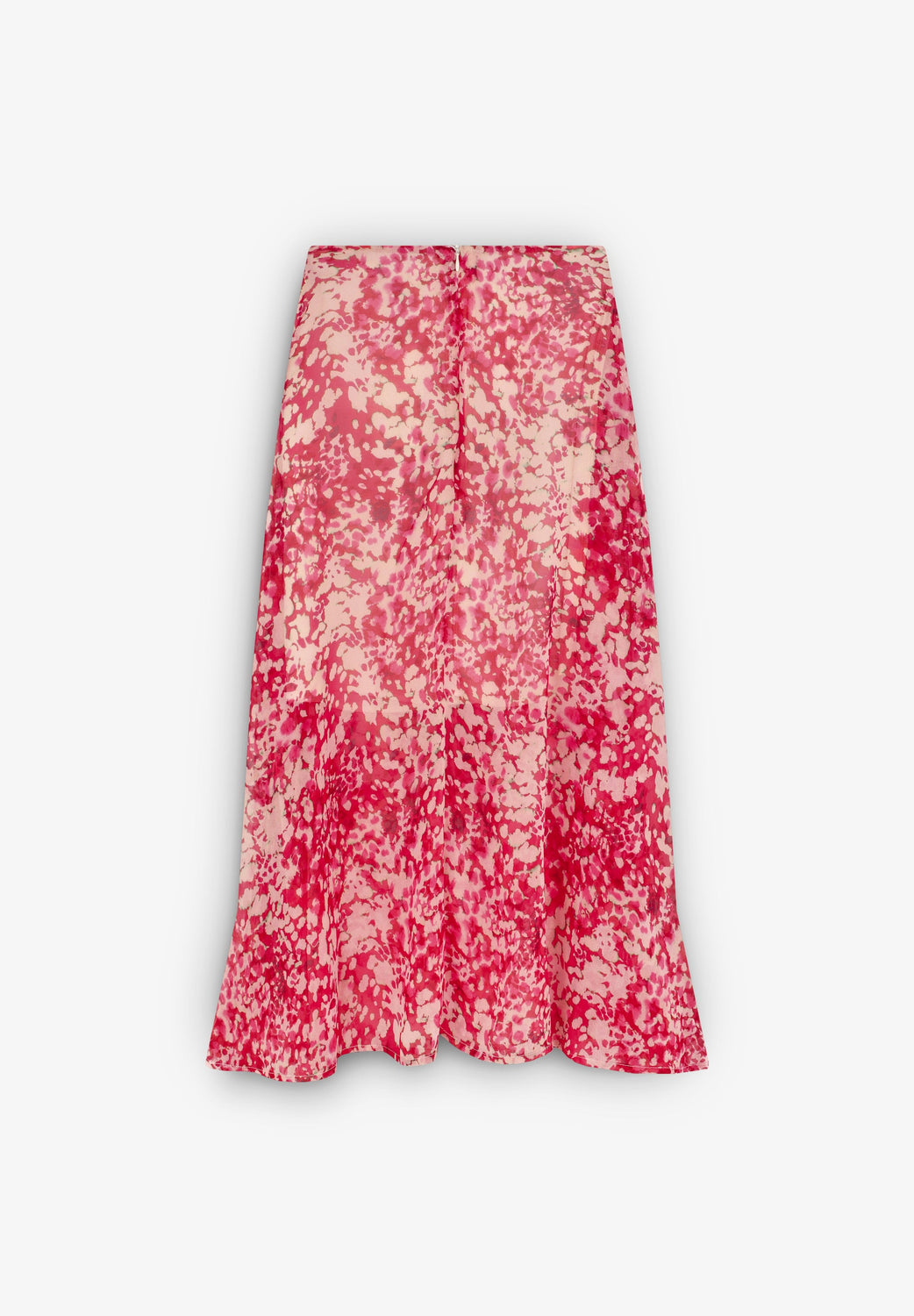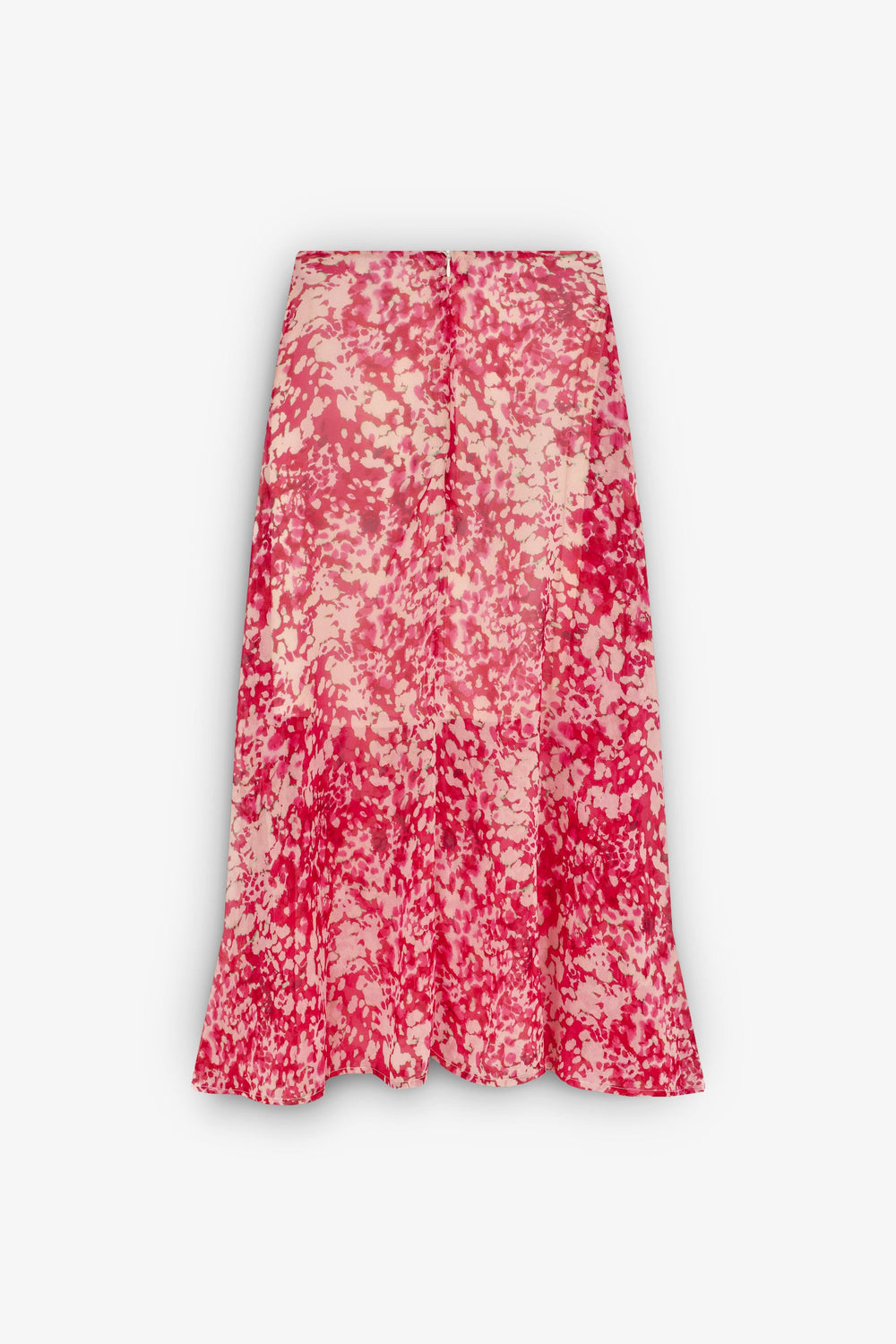 Jupe midi. Imprimée. Volants dans le bas. Fermeture Éclair camouflée au dos. Article fabriqué en Espagne.