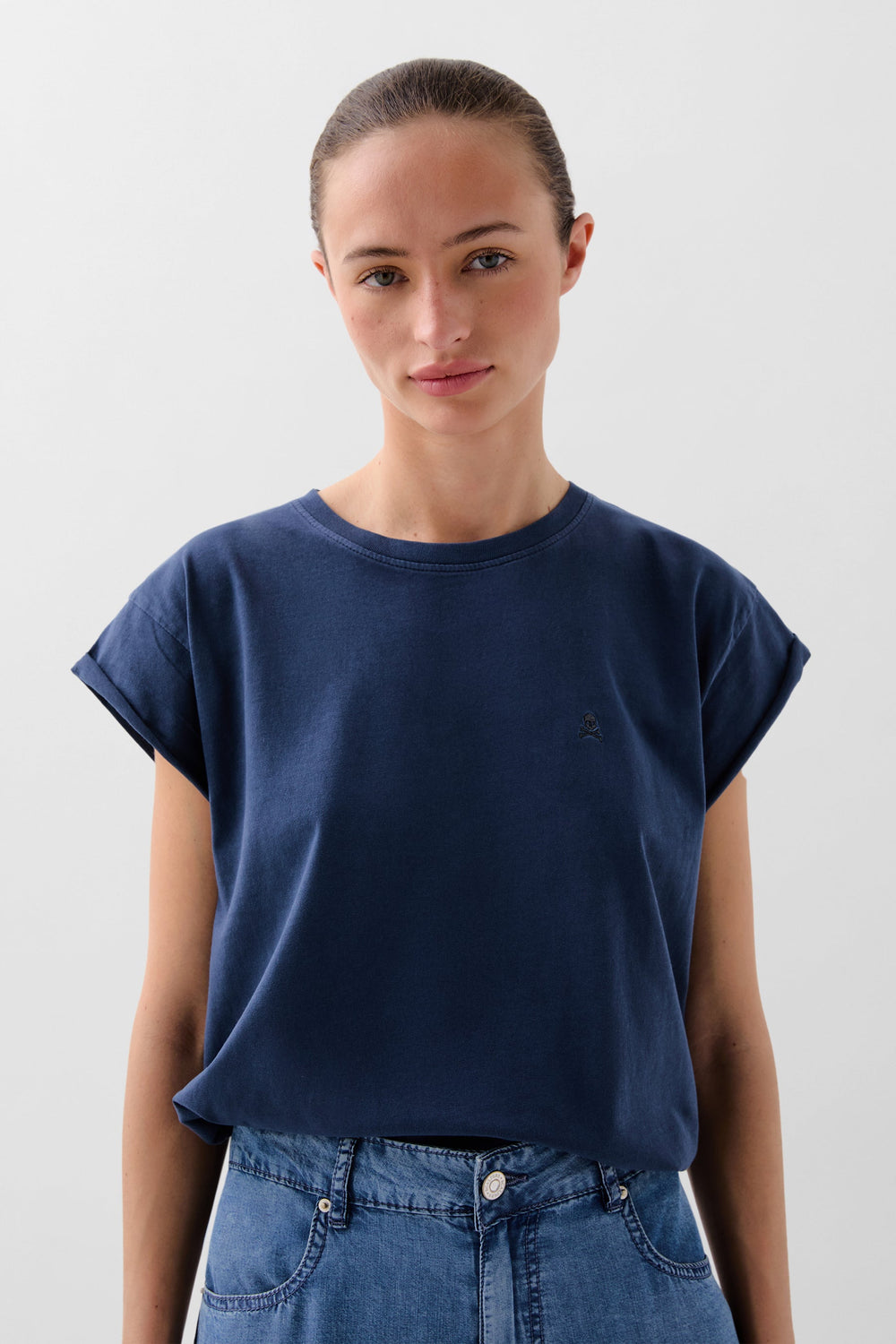 T-shirt confectionné en 100 % coton BCI. Coupe droite, col rond et manches courtes. Skull brodé ton sur ton.