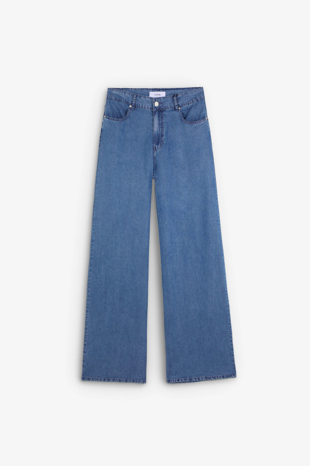 Pantalon confectionné en tissu fluide. Coupe full lenght, taille haute, fermeture éclair et bouton, passants de ceinture à la taille. Poches sur le devant et à l’arrière.