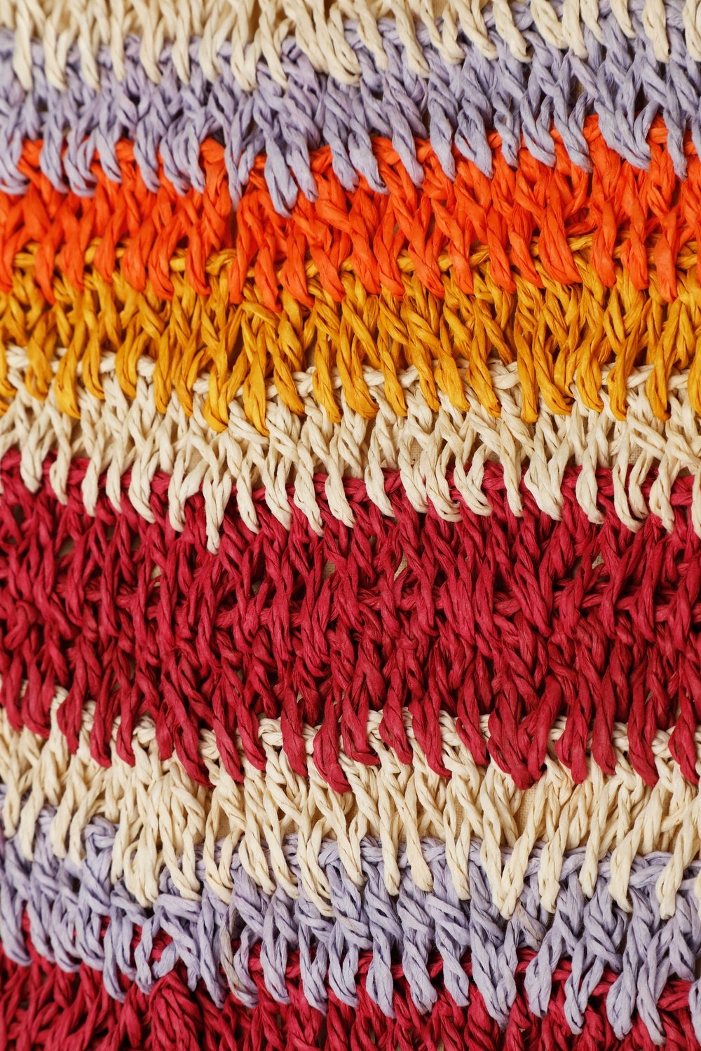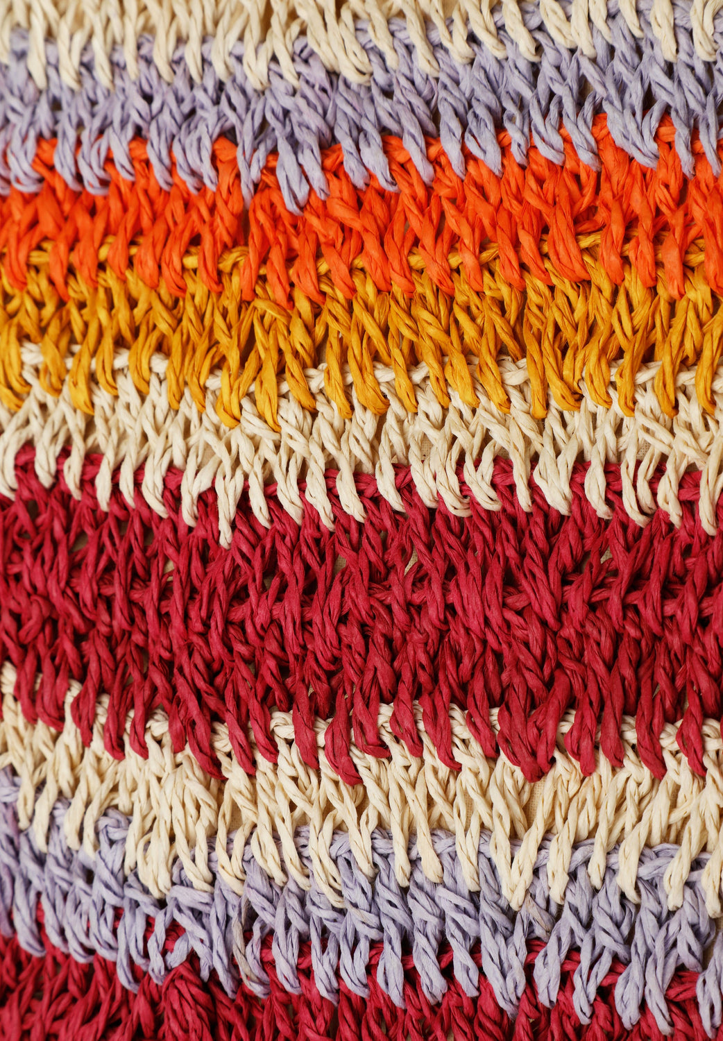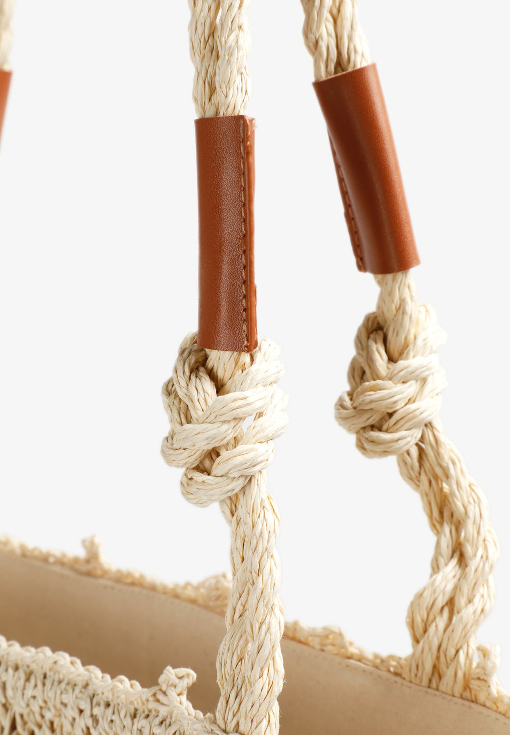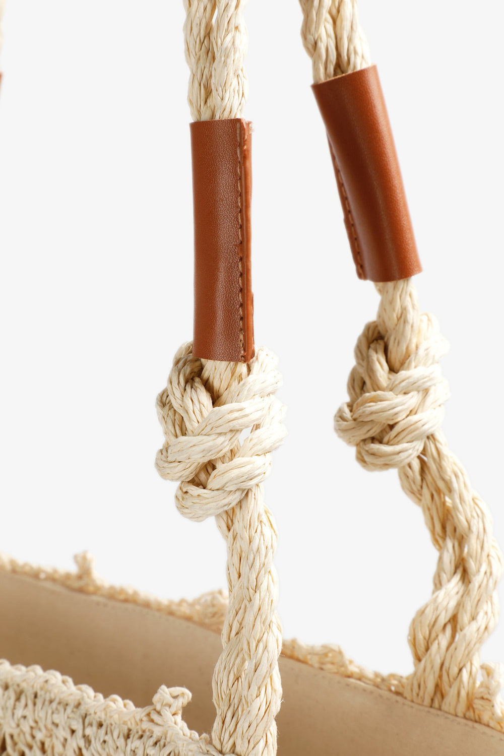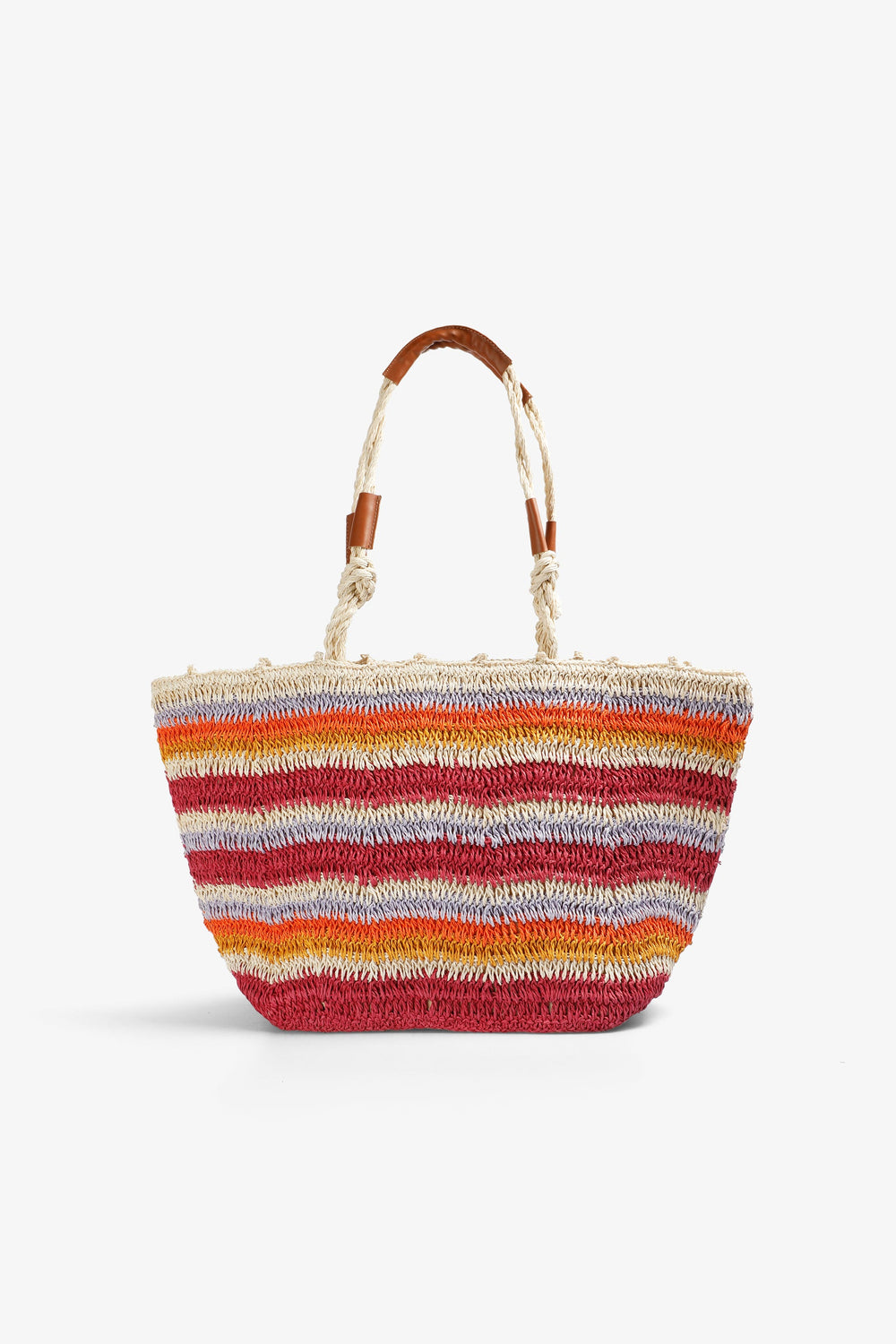Sac shopper en raphia avec doublure intérieure 100 % coton. Doté d’une poche intérieure et d’une fermeture avec bouton aimanté. Anse courte.