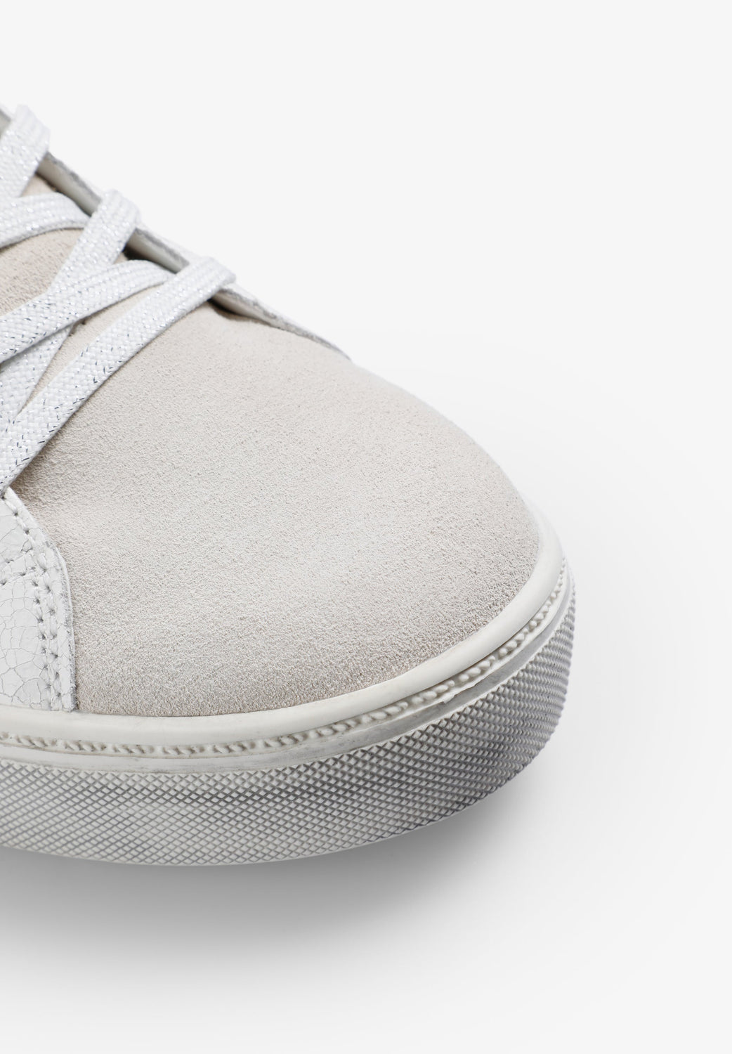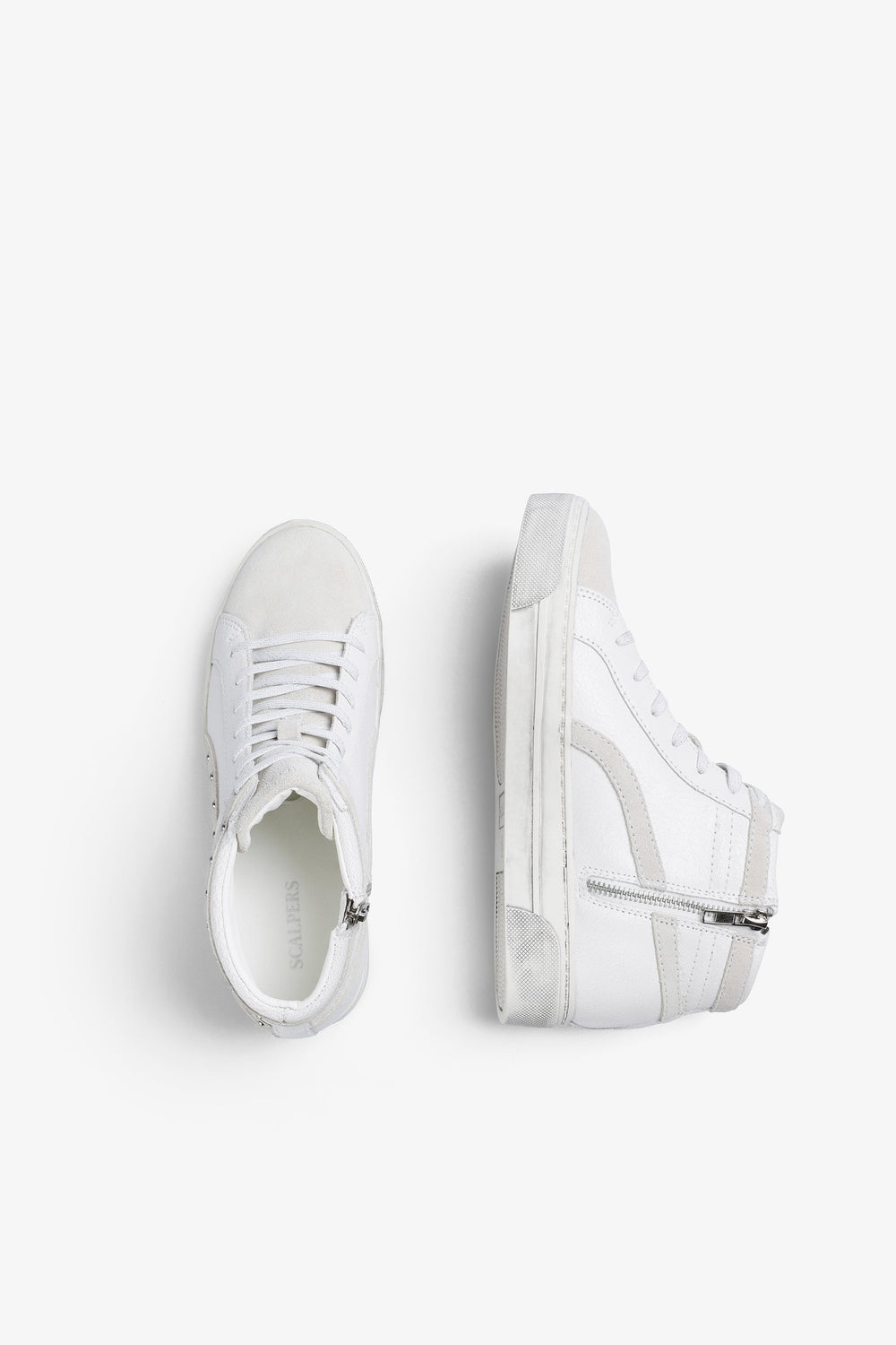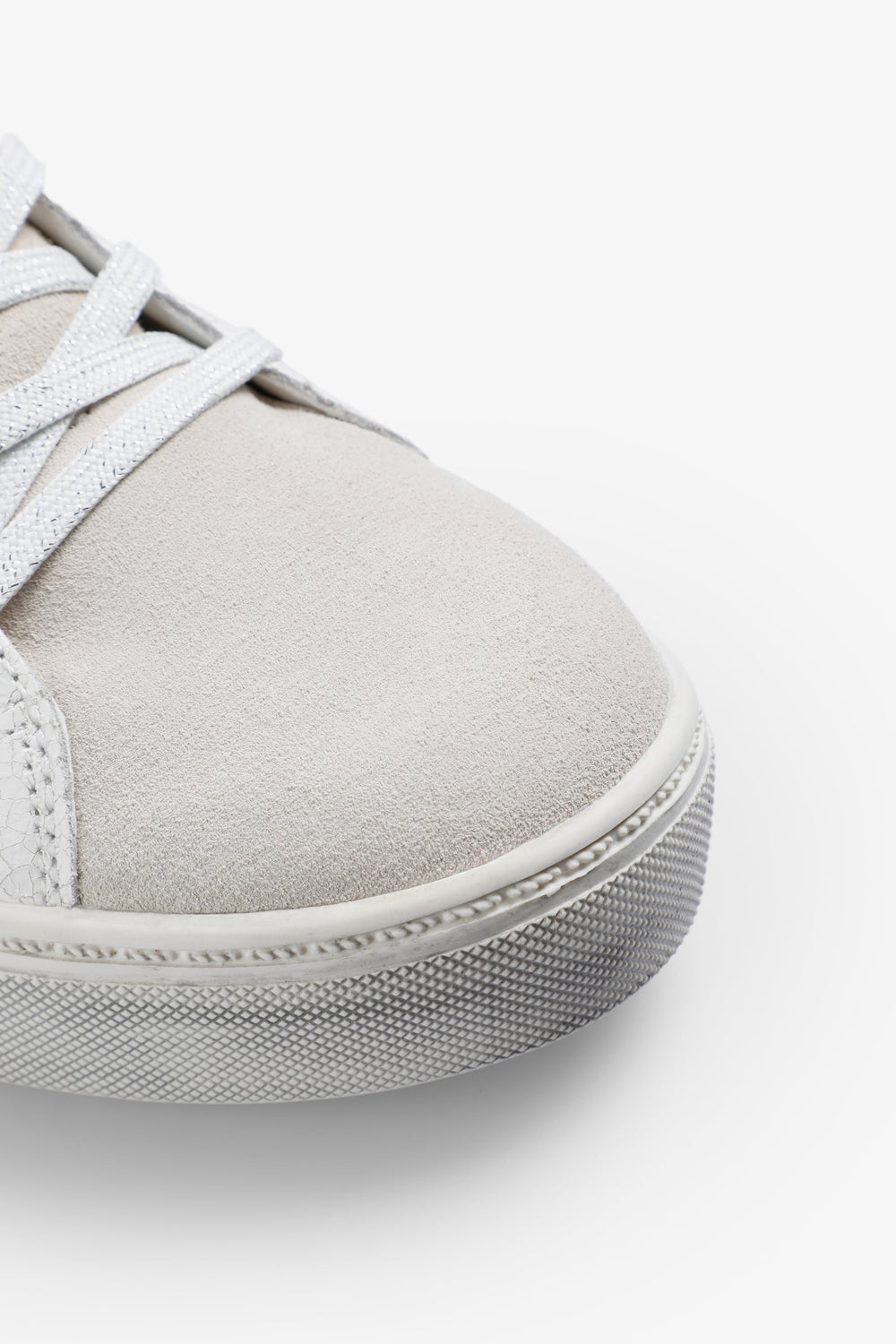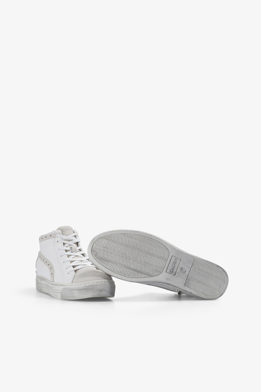 Baskets 100 % daim. Logo brodé contrastant. Détail clous. Effet usé. Lacets et fermeture éclair sur le côté.