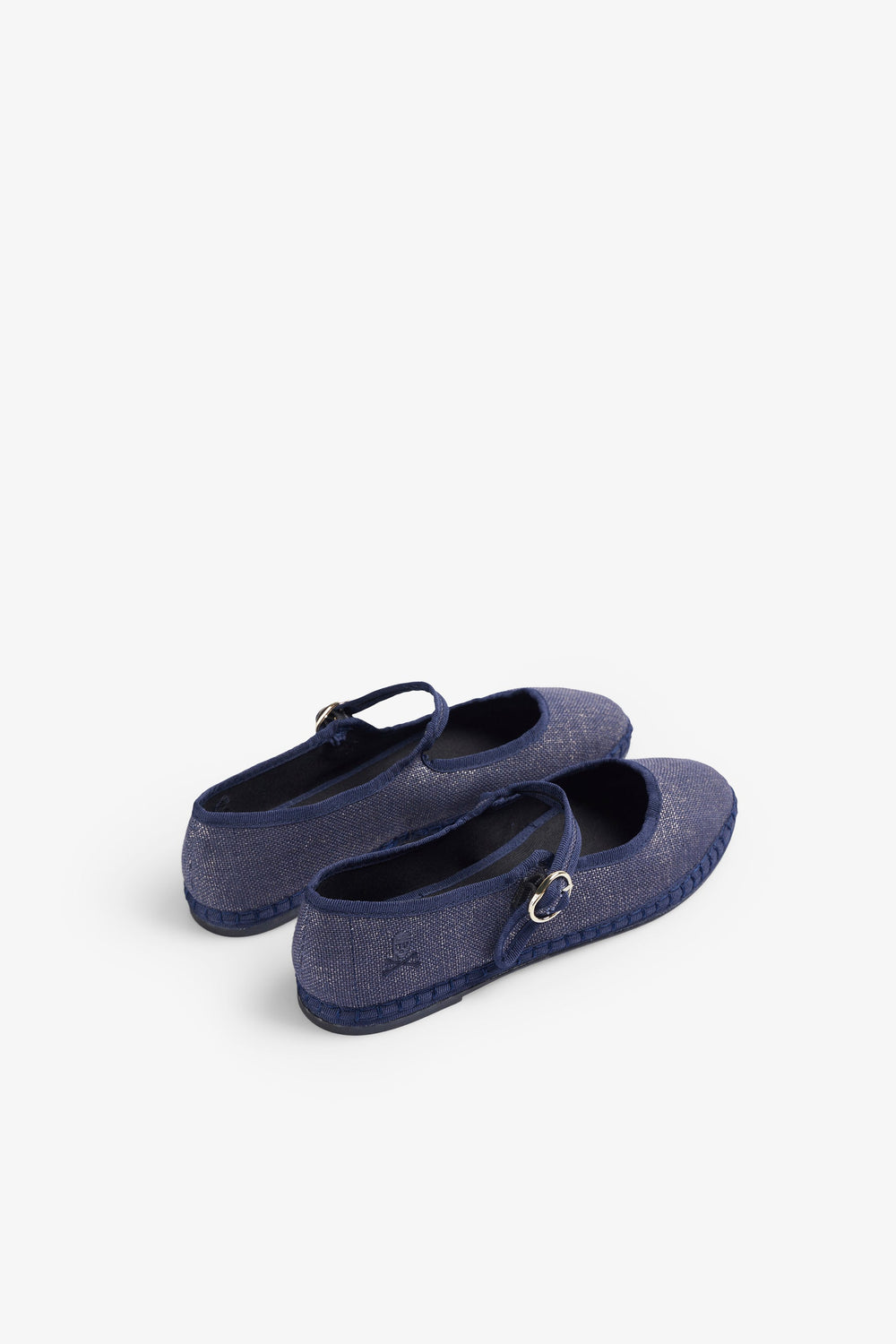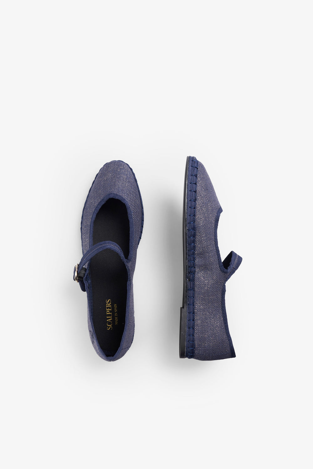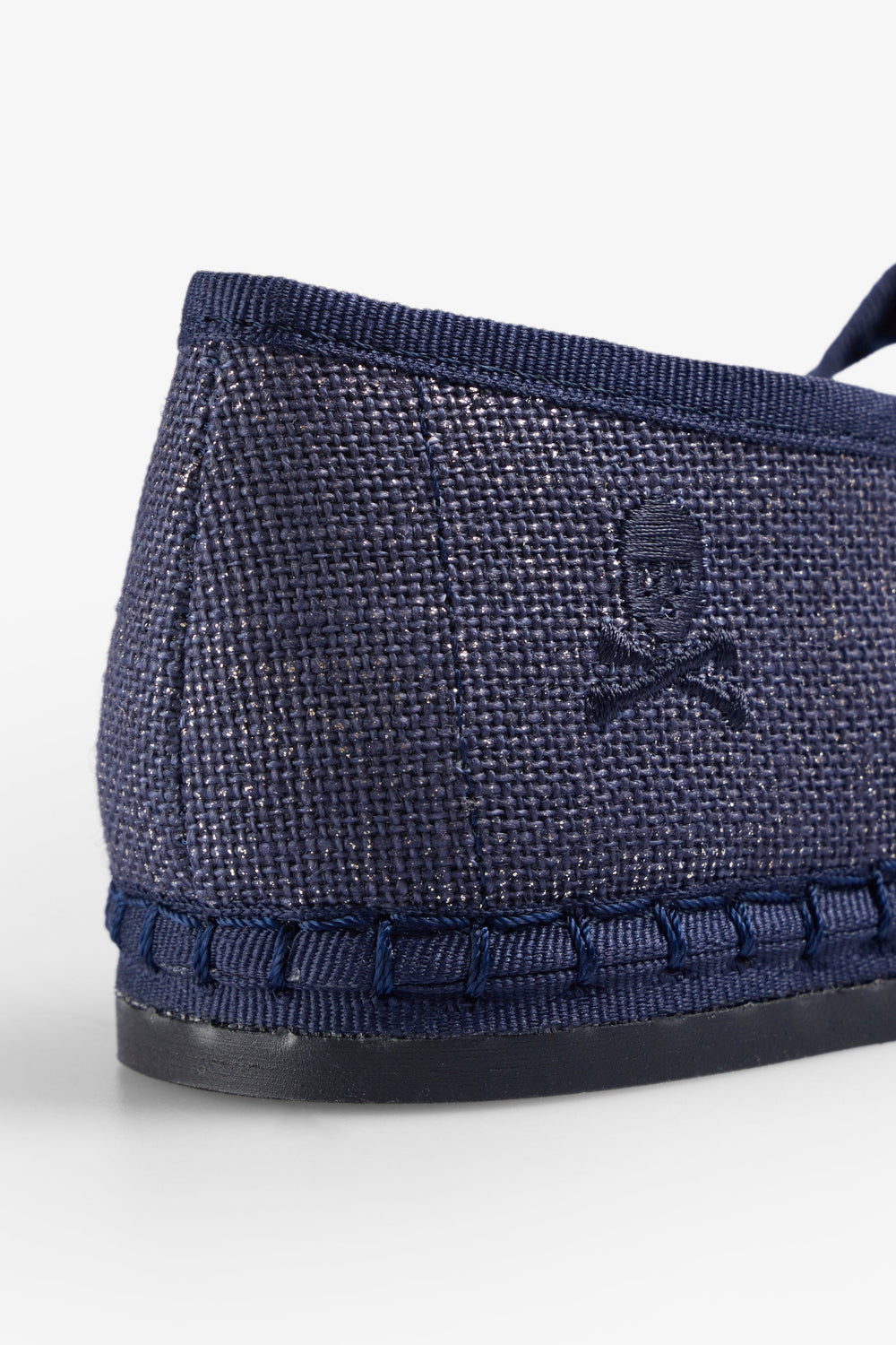 Slippers en tissu rustique à boucle métallique, avec semelle et liseré contrastants.