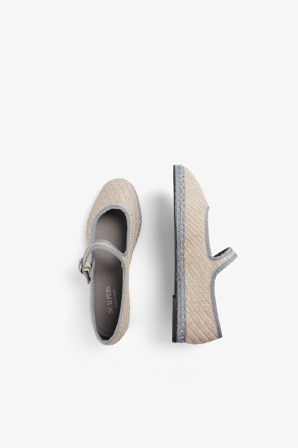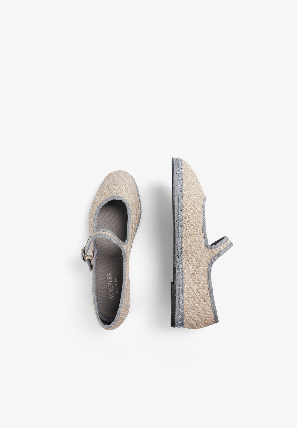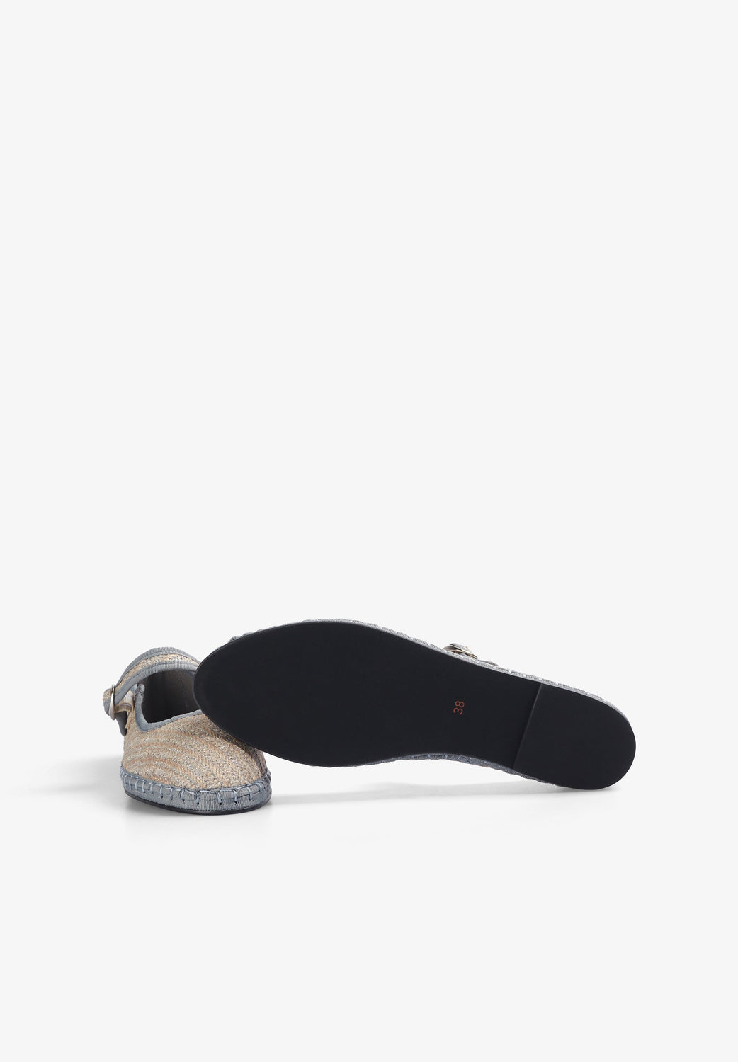 Slippers en tissu rustique à boucle métallique, avec semelle et liseré contrastants.