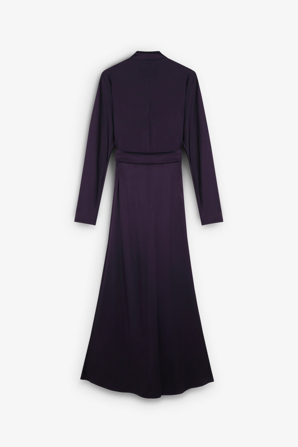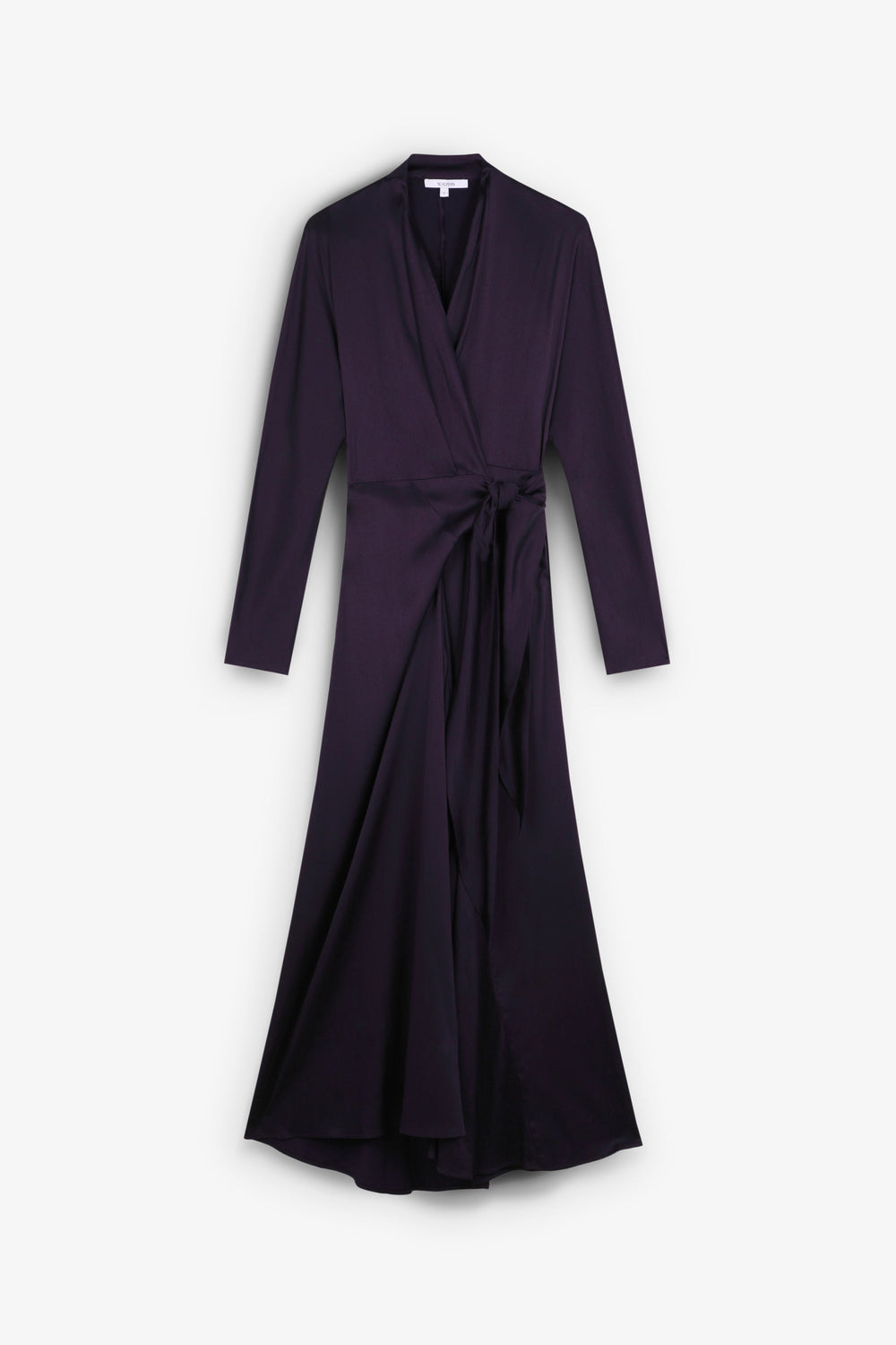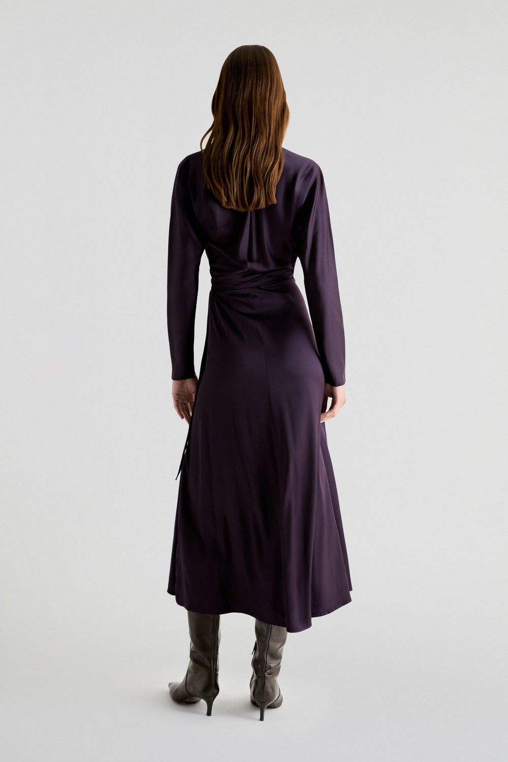 Satin dress made of flowing fabric. Regular fit, V-neckline and sarong-style tie fastening. Long sleeves.