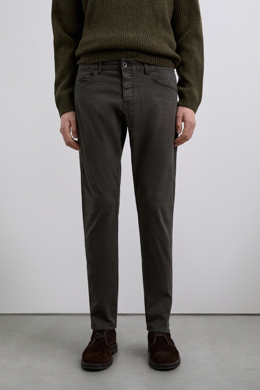Pantalon confectionné en mélange de coton. Légèrement extensible. Fermeture boutonnée. Coupe regular. Poches derrière et sur les côtés. Avec passants de ceinture.