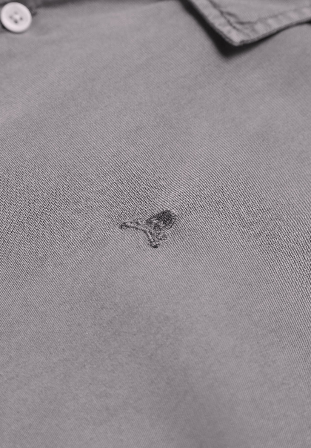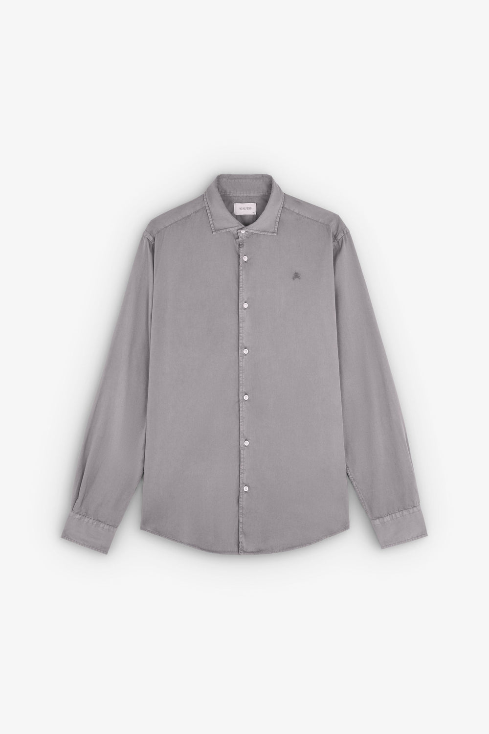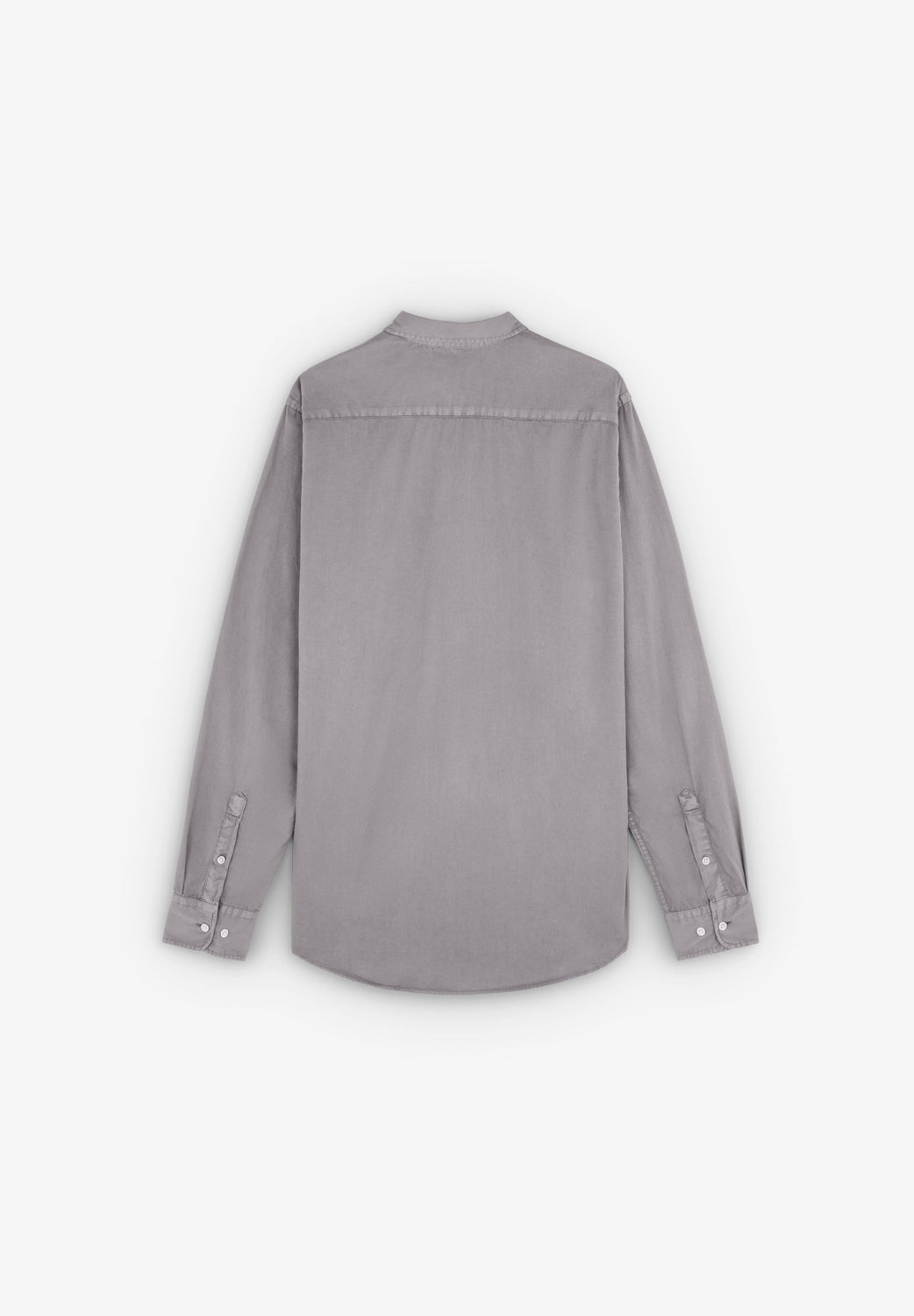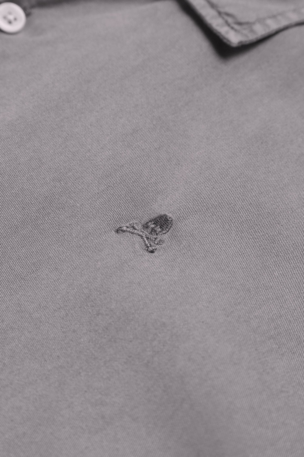 Chemise 100 % coton. Coupe droite, col italien et fermeture boutonnée. Manches longues avec poignets boutonnés et skull brodé ton sur ton.