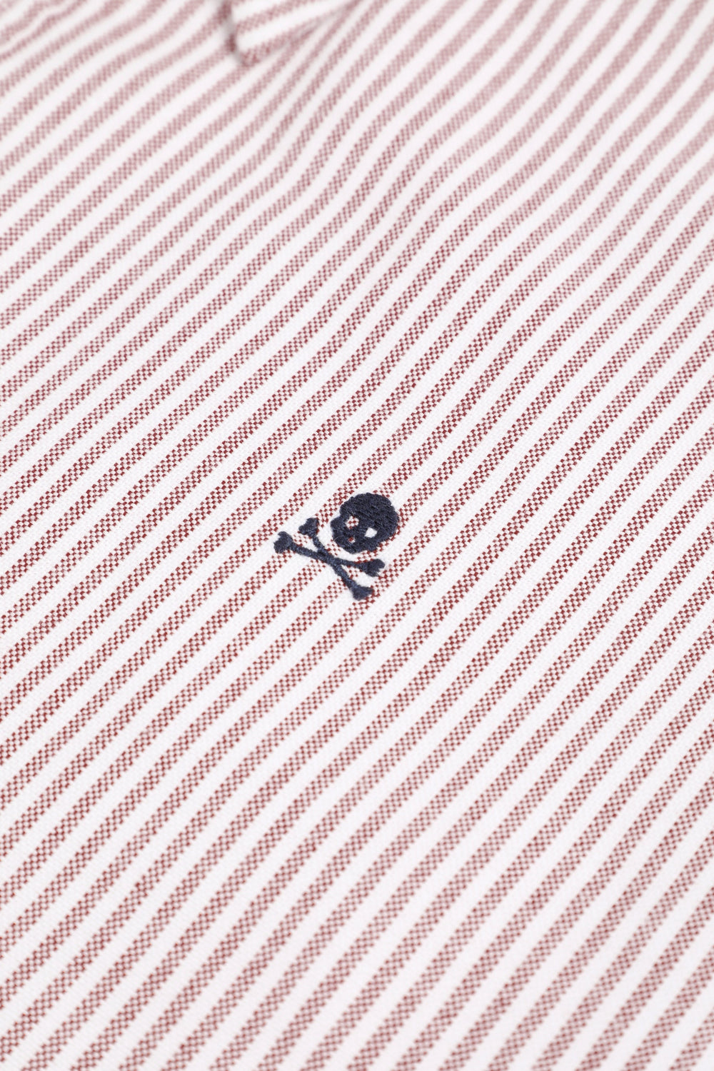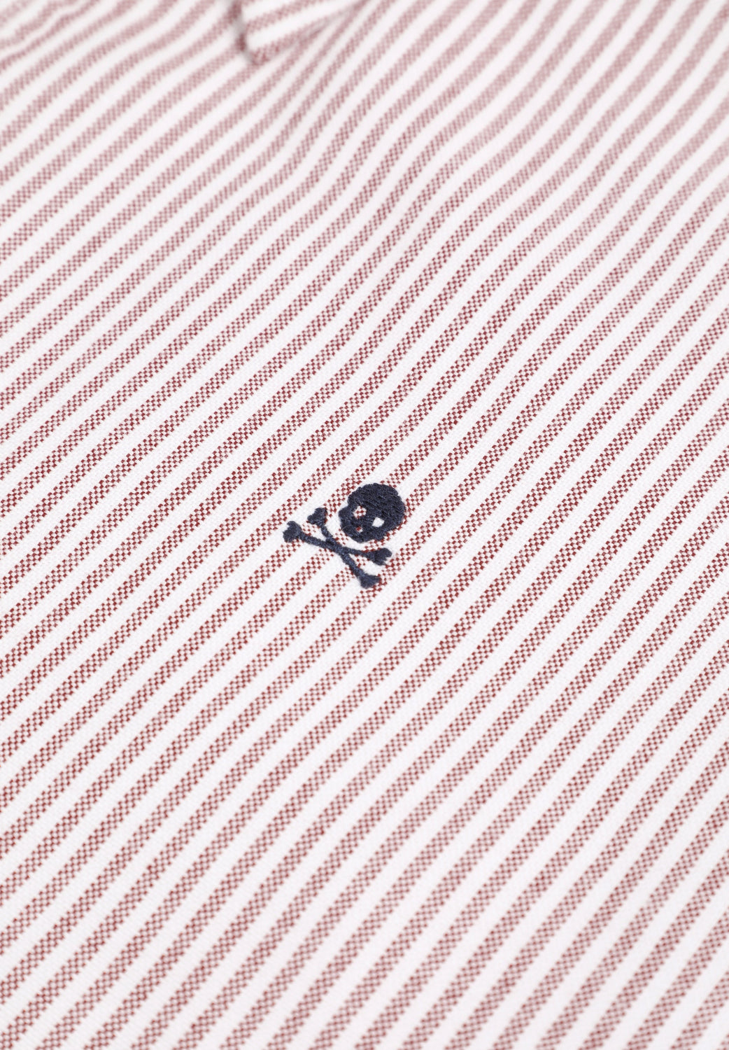 Chemise Oxford 100 % coton BCI. Fermeture boutonnée, imprimé rayé. Manches longues à poignets boutonnés. Skull contrastant brodé sur la poitrine.