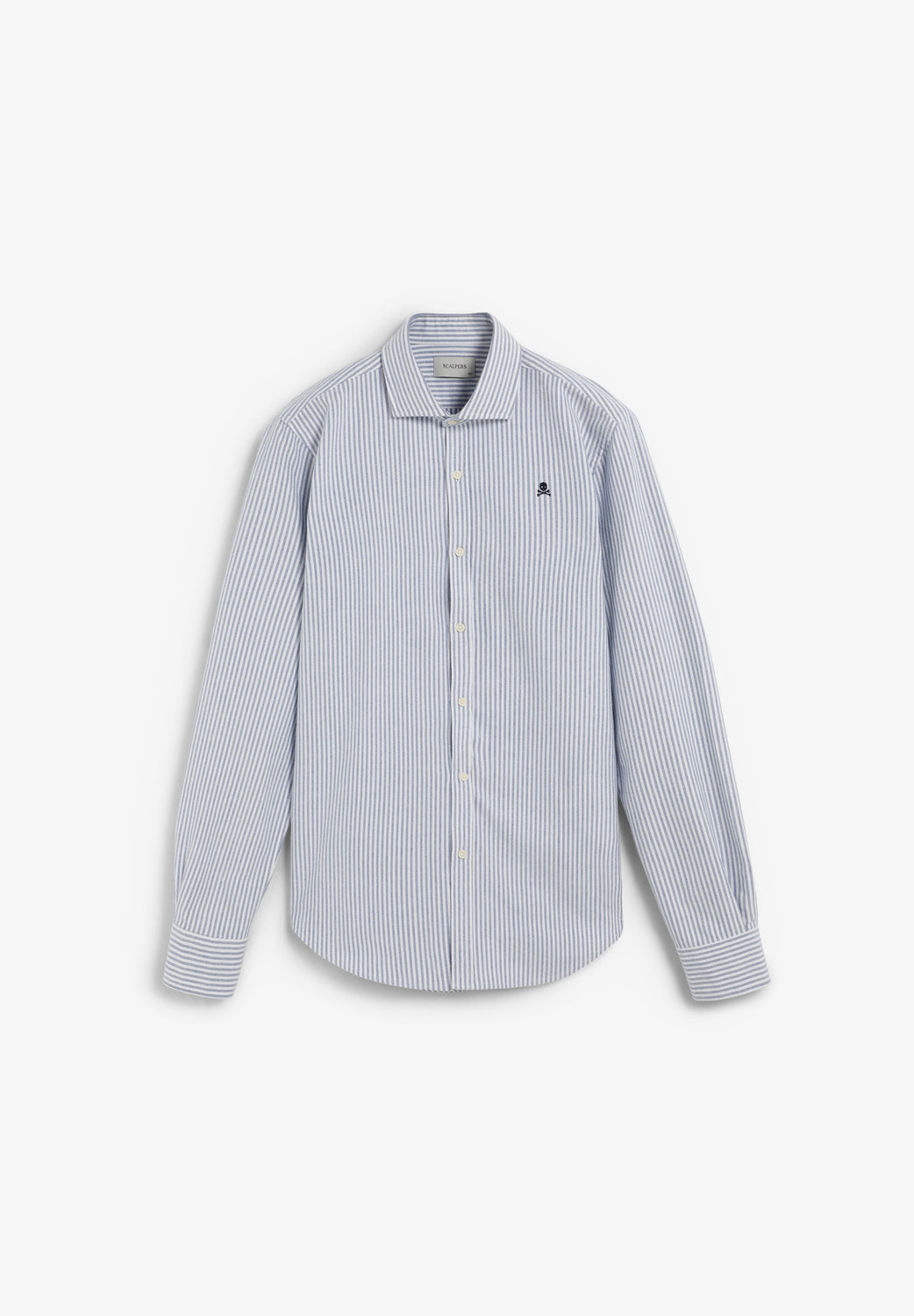Chemise Oxford 100 % coton BCI. Coupe droite. Imprimé rayé. Manches longues. Boutons devant et aux poignets. Skull contrastant brodé sur la poitrine.