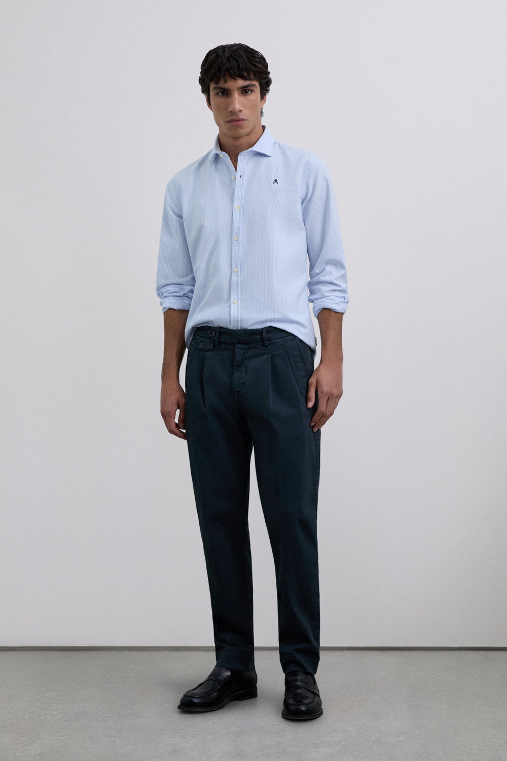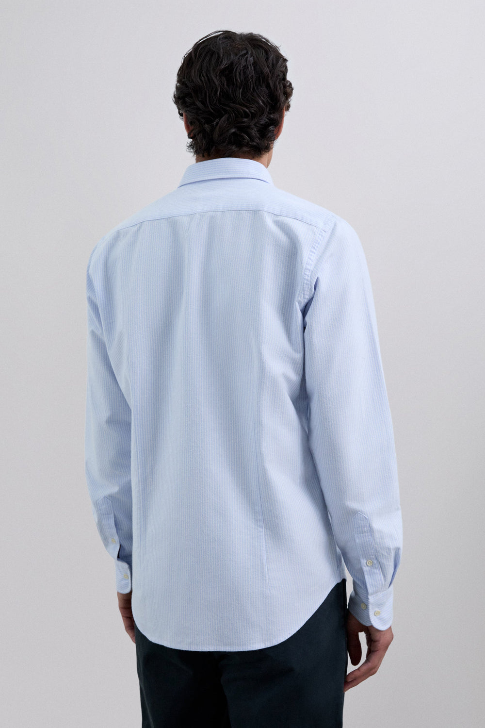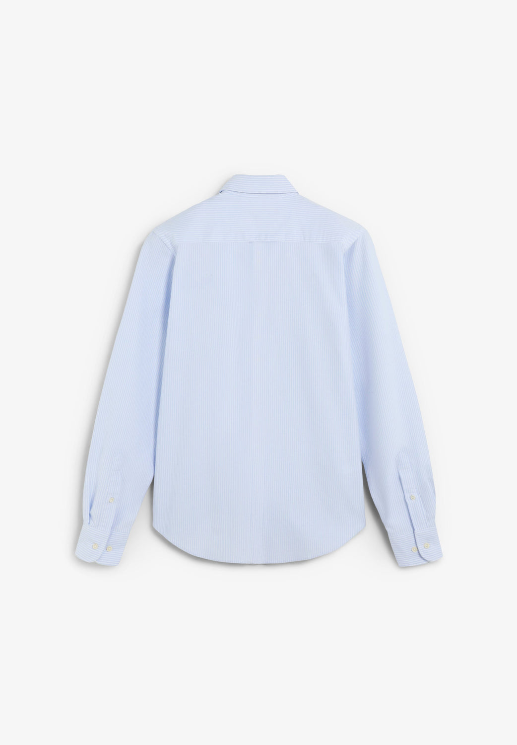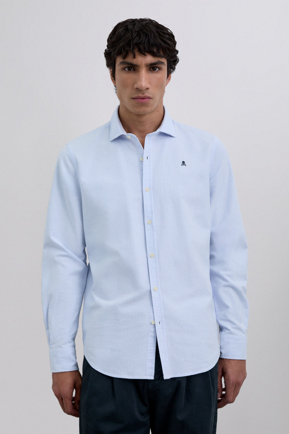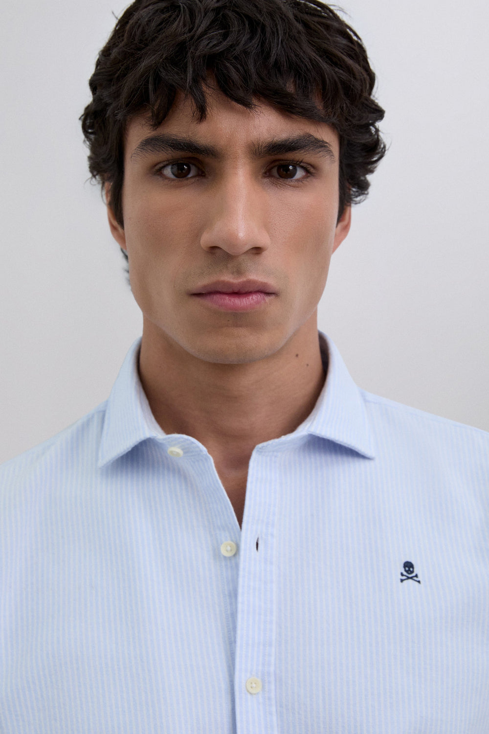 Chemise Oxford 100 % coton BCI. Coupe droite. Imprimé rayé. Manches longues. Boutons devant et aux poignets. Skull contrastant brodé sur la poitrine.