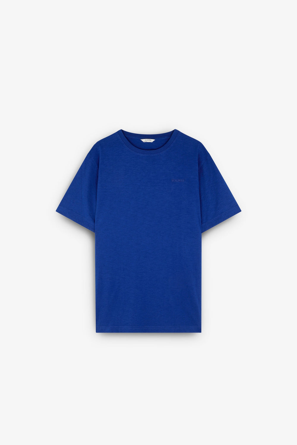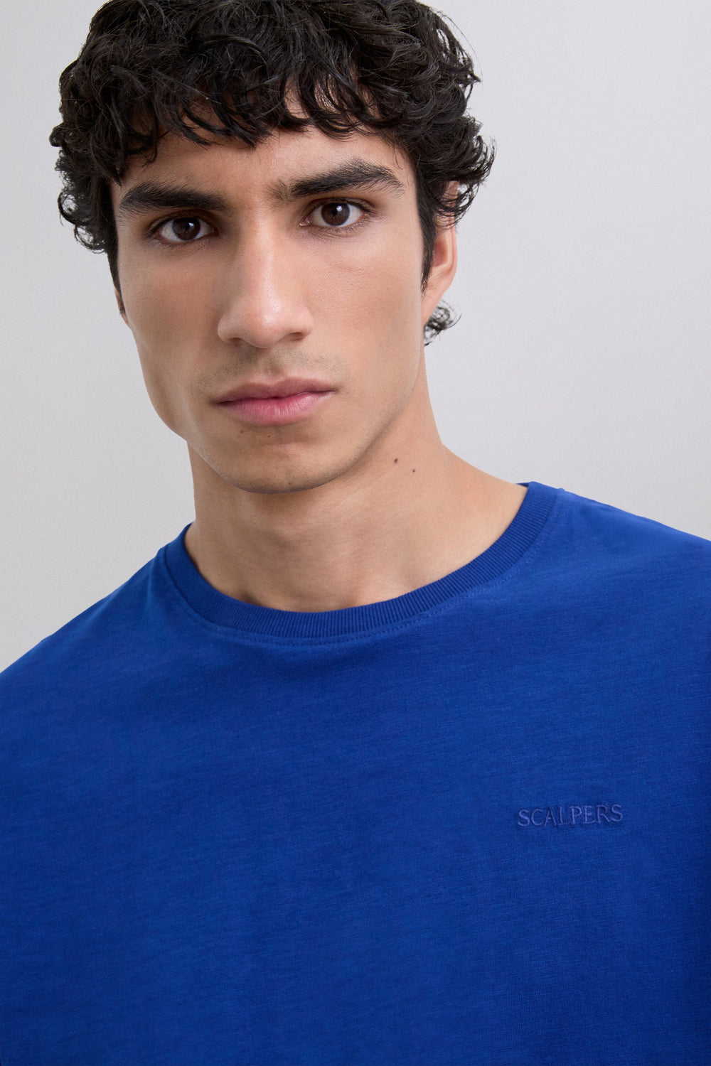 T-shirt 100 % coton bio. Coupe droite. Manches courtes. Col rond. Effet délavé. Skull brodé ton sur ton sur la poitrine. Col côtelé.