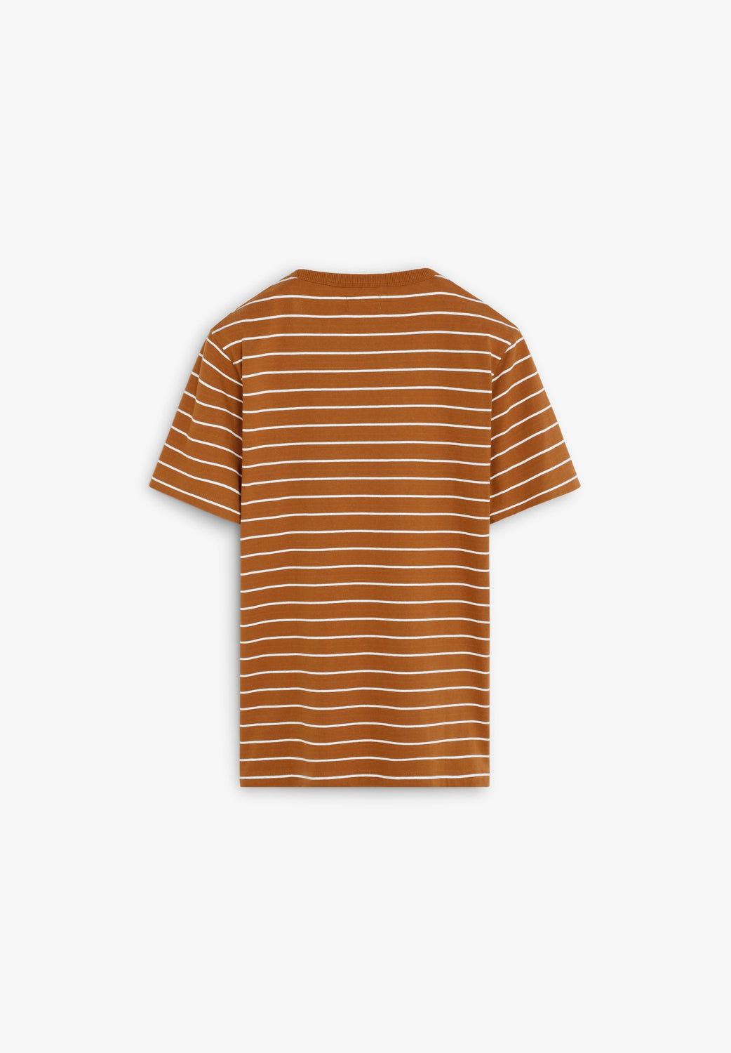 T-shirt confectionné en 100 % coton BCI. Manches courtes. Col rond. Imprimé rayé. Logo contrastant sur la poitrine.