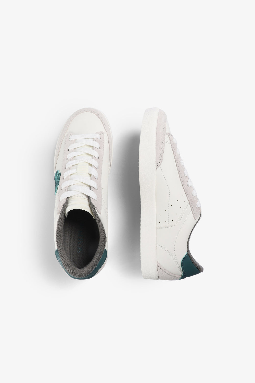 Tennis basses avec skull contrastant sur le côté. Lacets. Semelle en caoutchouc effet usé. Détail contrastant sur le talon.
