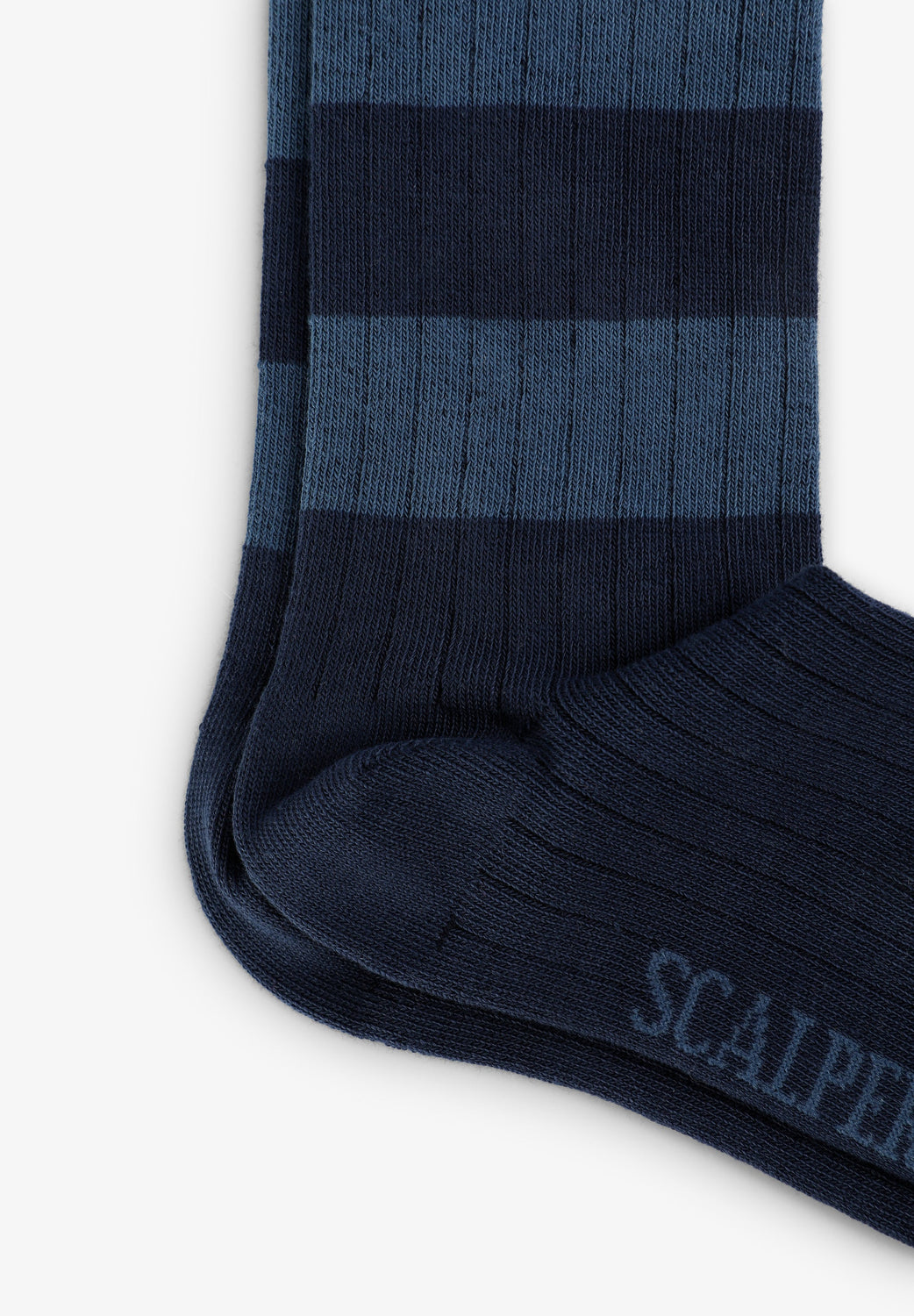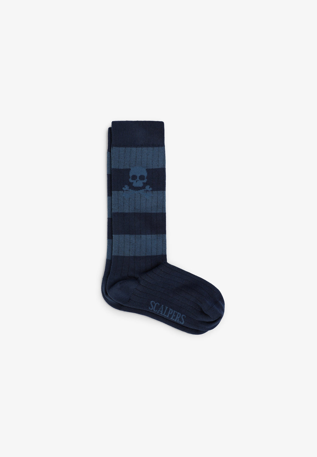 Chaussettes confectionnées en mélange de coton bio. Imprimé rayé. Skull brodé contrastant. Logo contrastant dans le bas.