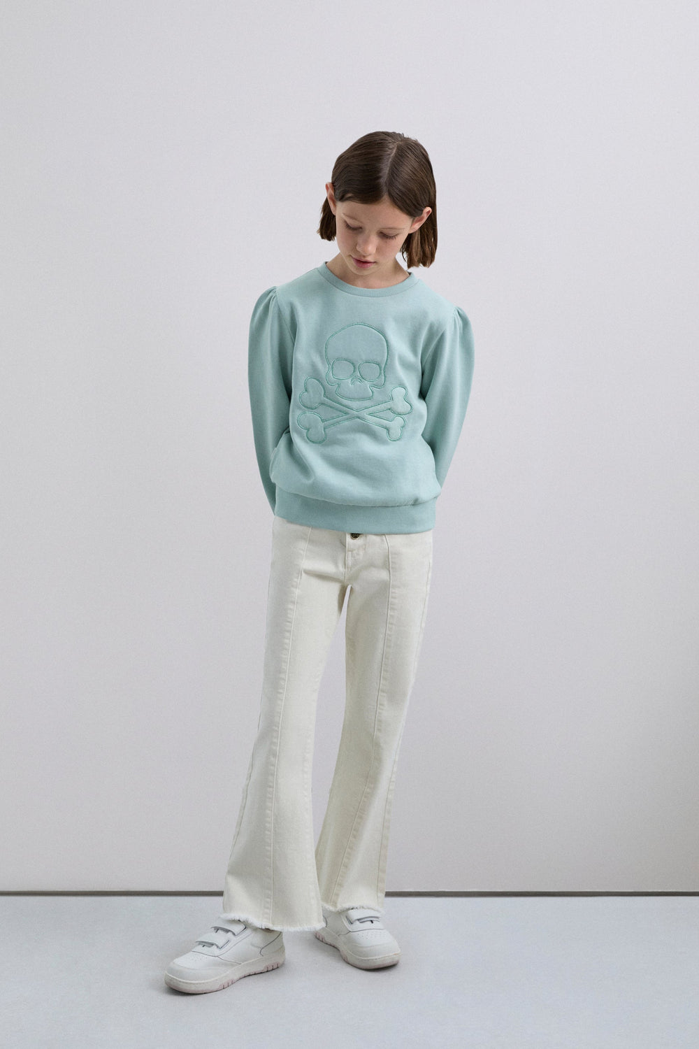 Sweat 100 % coton BCI. Col rond. Skull brodé sur le devant. Manches longues. Poignets élastiques froncés.