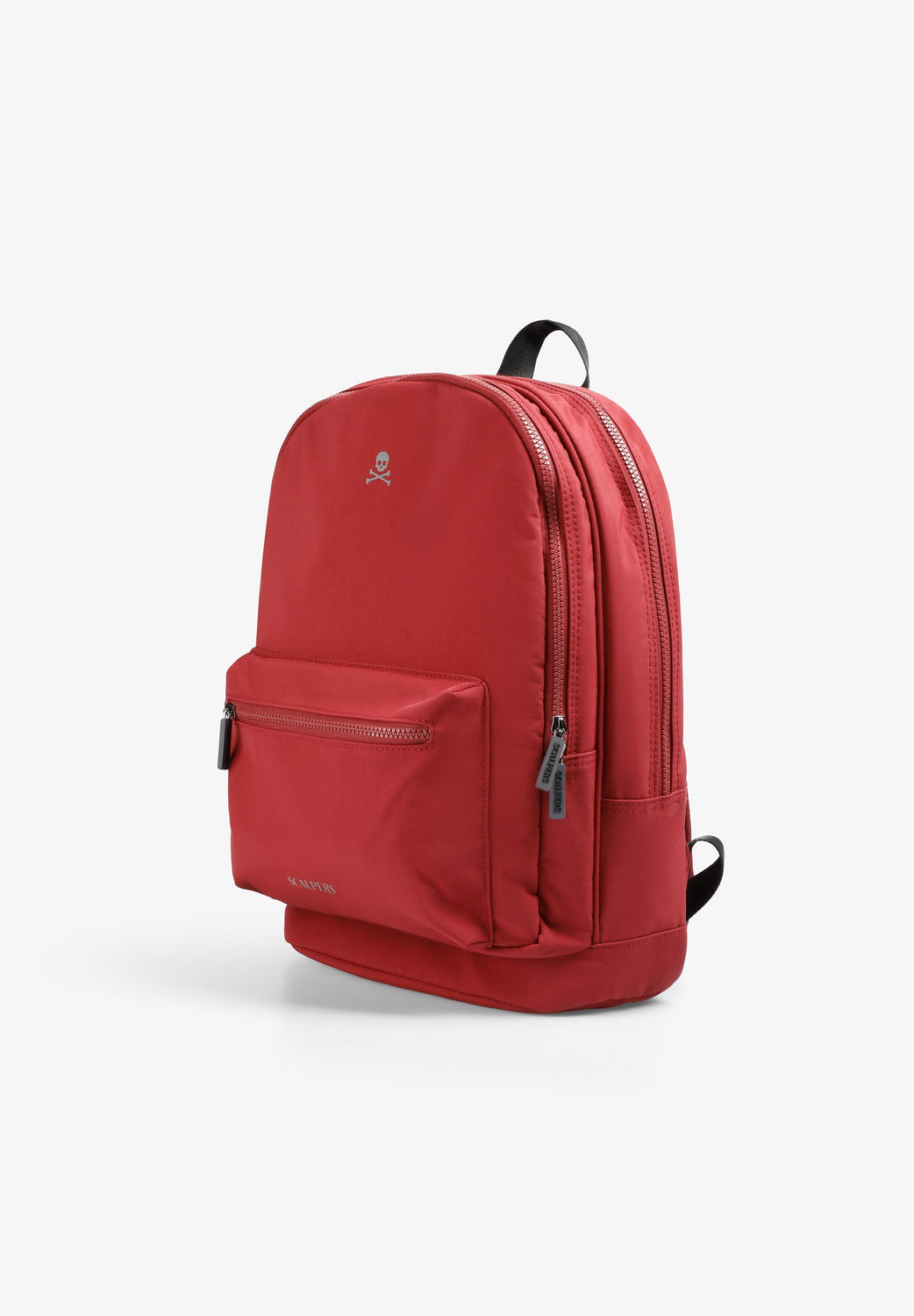 Sac à dos en tissu technique. Poche extérieure sur le devant. Fermeture à boucles réglable. Skull et logo imprimés sur le devant Poignée supérieure. Éléments de fixation réglables sur les côtés et dans le dos. Renfort rembourré au dos.