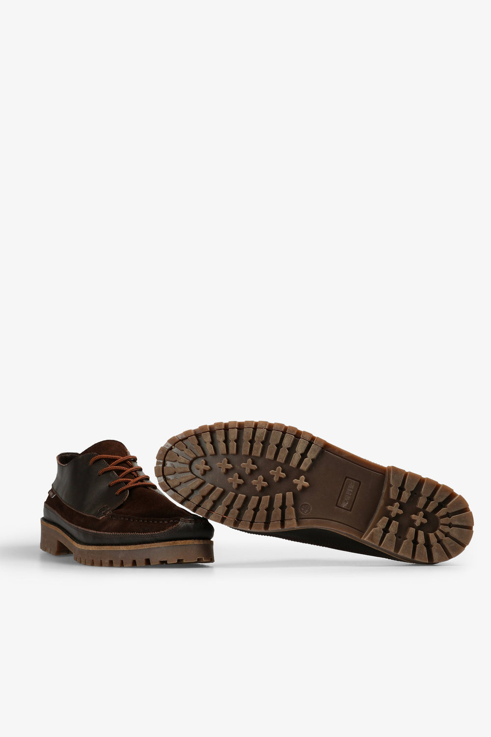 Chaussure 100 % cuir de vachette. Lacets contrastants. Étiquette le talon. Semelle crantée.