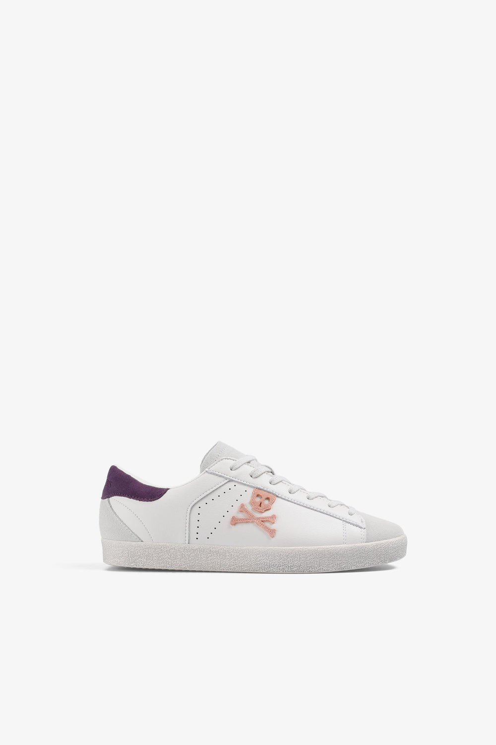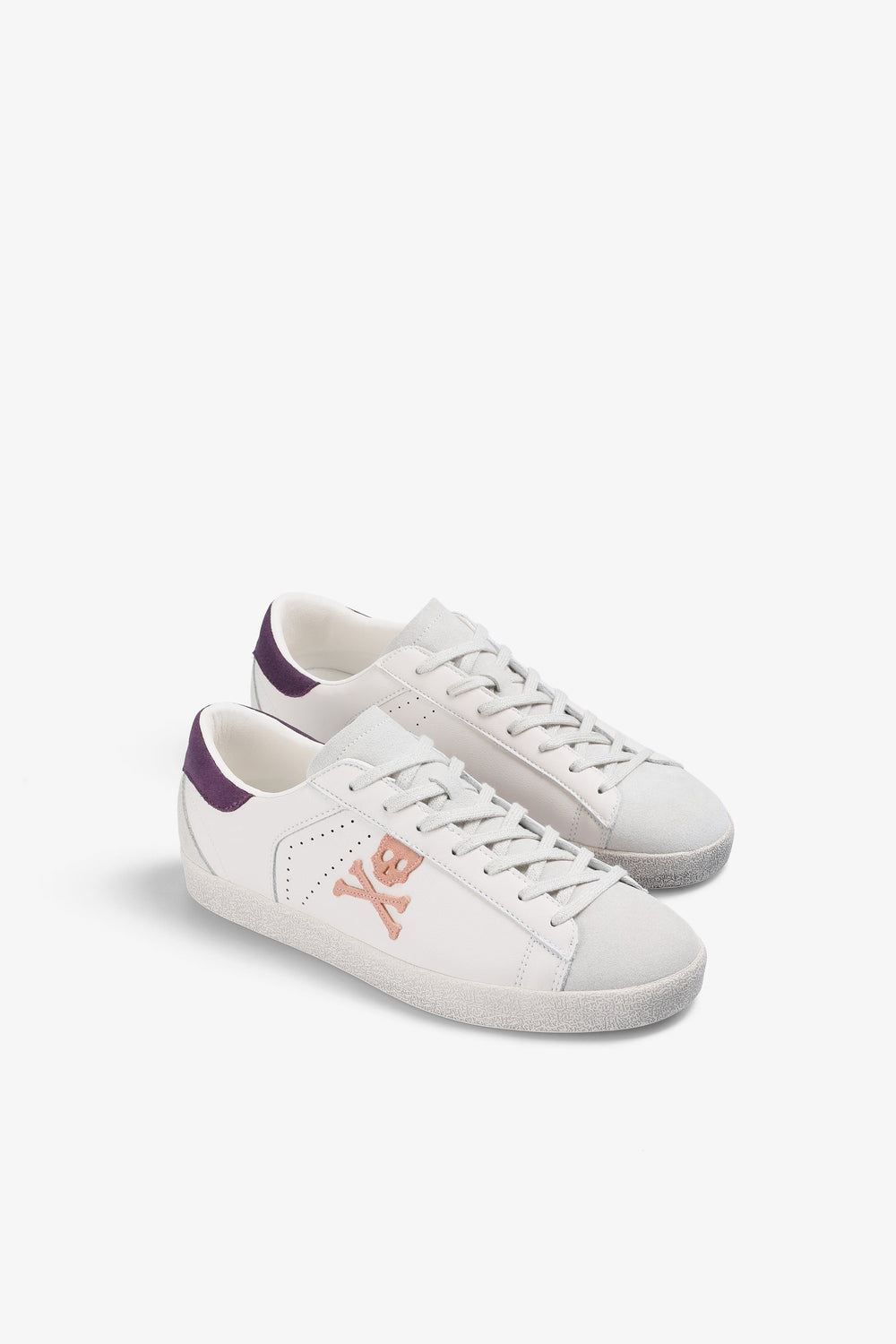 Tennis 100 % cuir. Skull brodé contrastant sur le côté. Semelle en caoutchouc. Détail contrastant. Lacets. Logo brodé ton sur ton sur le talon.