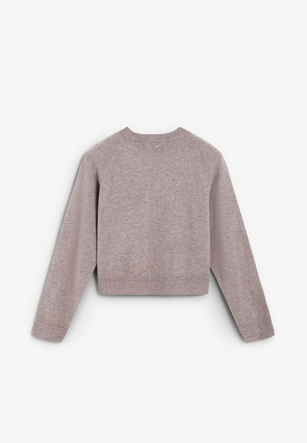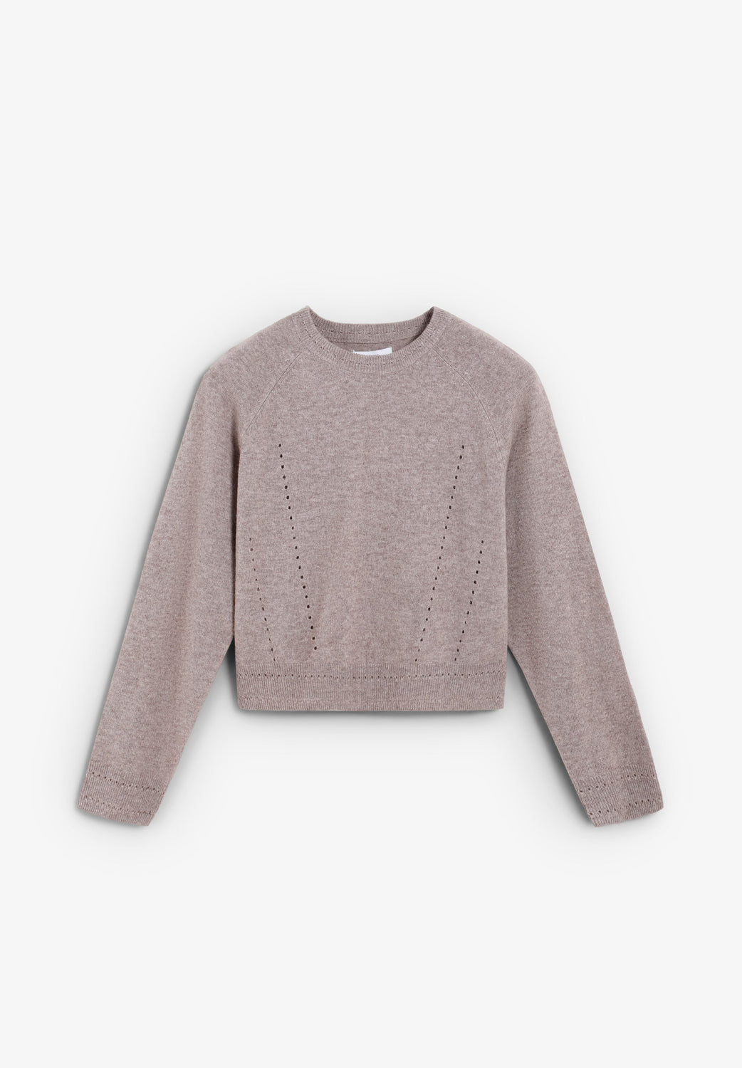Pull confectionné dans un mélange de laine et de cachemire. Coupe droite. Col rond et manches longues à finition bord-côte. Légèrement ajouré devant.