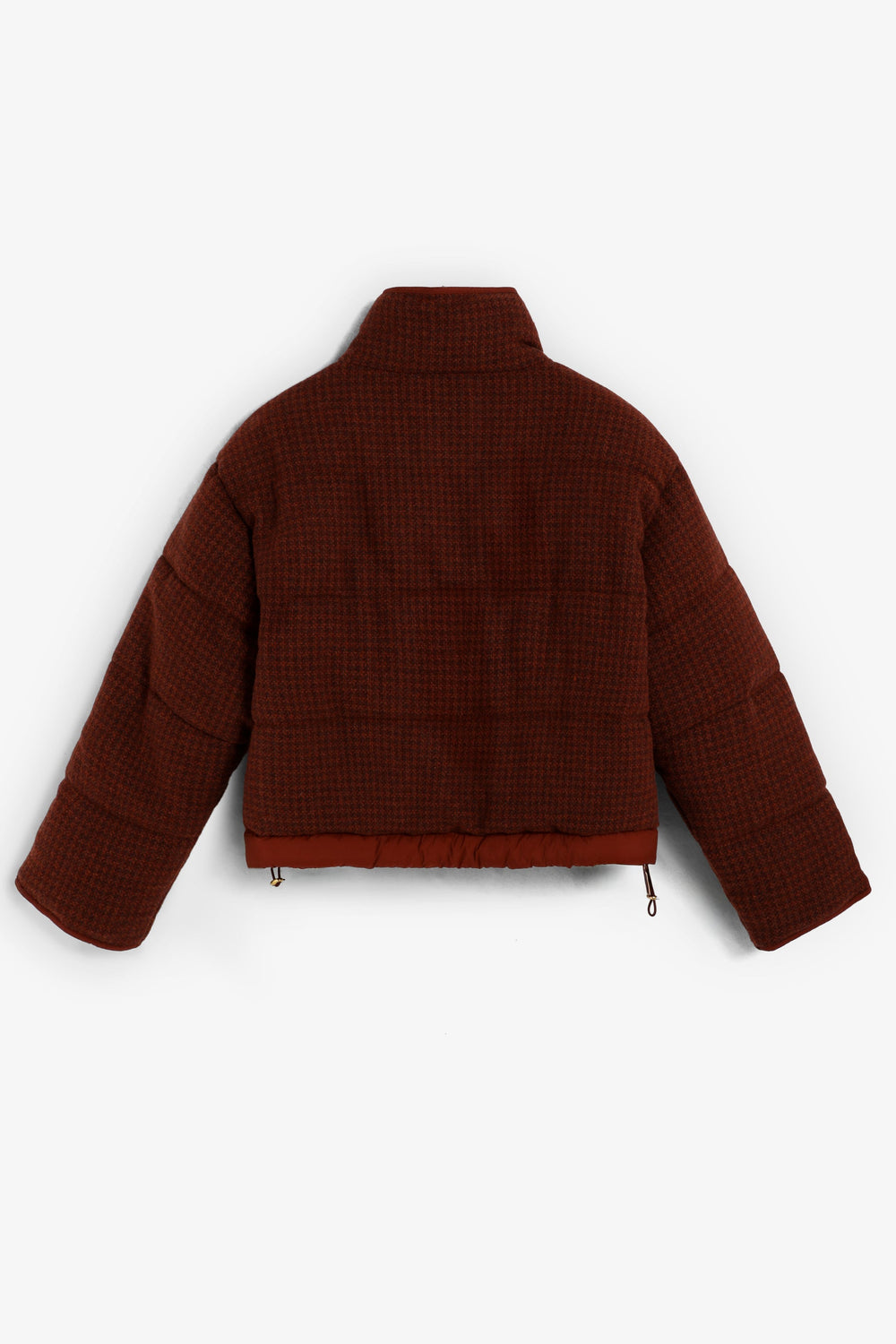 Manteau matelassé à carreaux confectionné dans un mélange de laine. Coupe droite. Légèrement cropped. Col montant. Manches longues. Liserés contrastants. Fermeture éclair au milieu et patte de boutonnage avec boutons-pression en métal. Ajustable dans le bas.